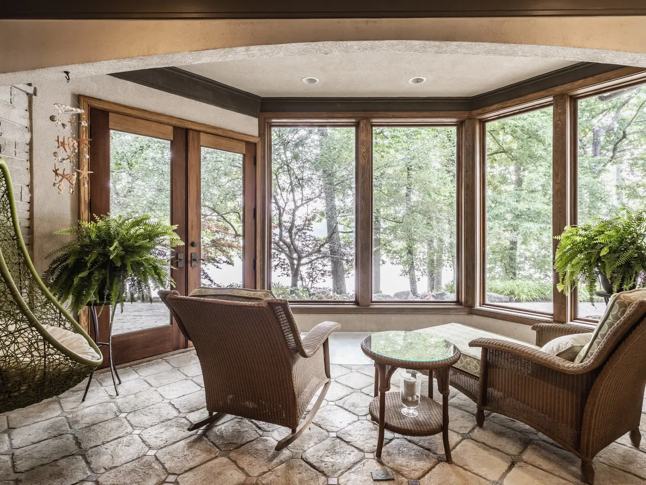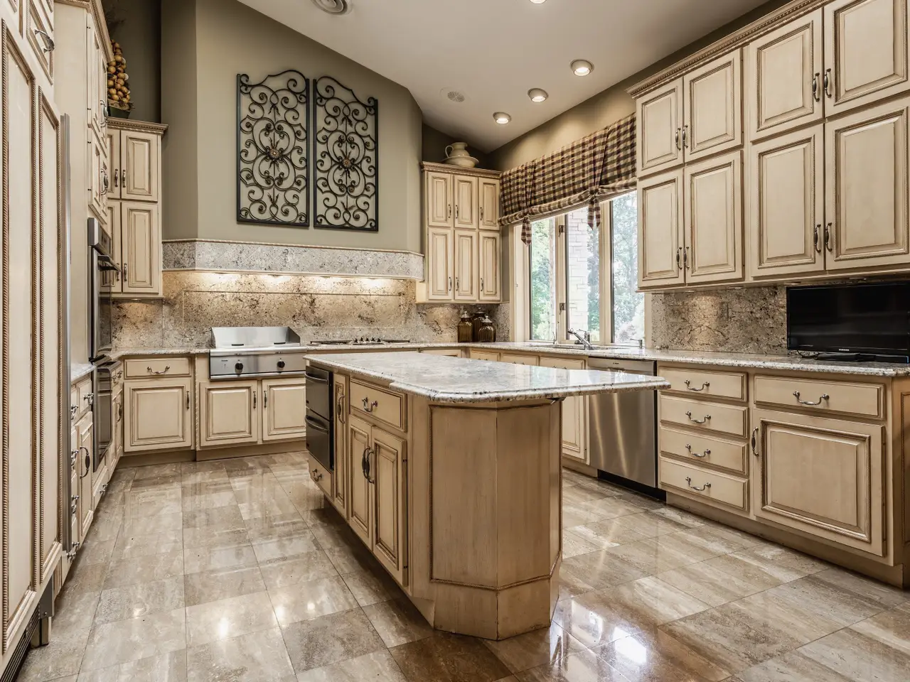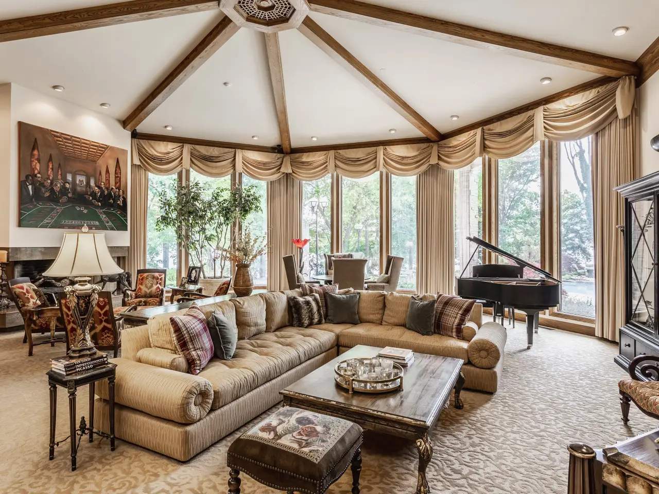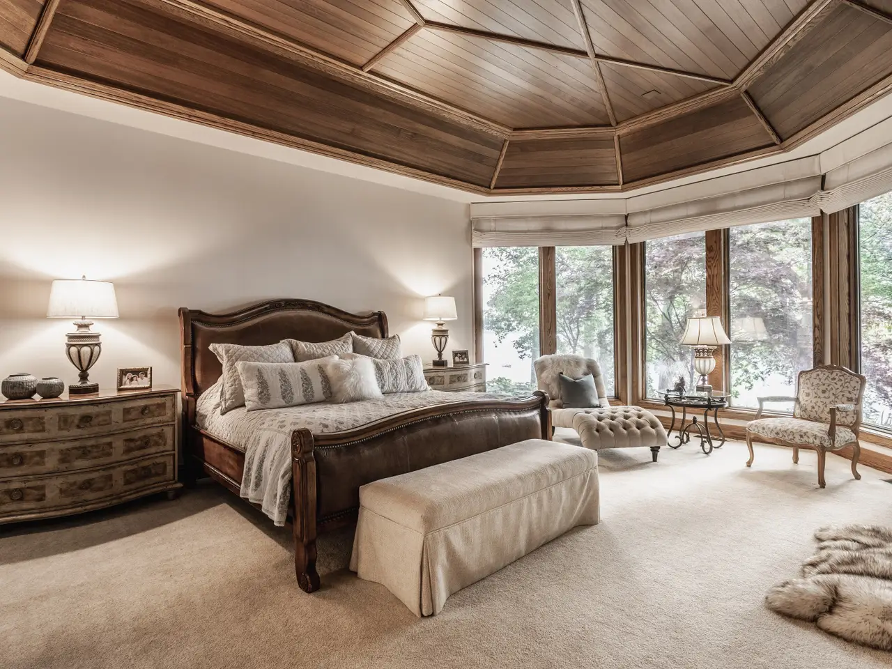 Exclusivity at its finest, this gated estate expands over 5.5 acres and is perfectly situated to capture breathtaking, panoramic views with 1,250 feet of water frontage on Eagle Creek Reservoir. The lush oasis creates the feeling of a serene, private sanctuary featuring a koi pond that spans the back of the home, Gunite swimming pool & spa w/cabana & tennis court w/cabana. A spacious great room welcomes guests w/expansive bay windows that brighten the room, which also features a vaulted ceiling w/exposed wooden beams, built-in aquarium, fireplace & adjoining bar area with access to the backyard retreat. Cozy den embellished with wood-paneled walls, built-ins & marble fireplace. Gourmet kitchen boats upscale appliances and a sun-washed breakfast area.