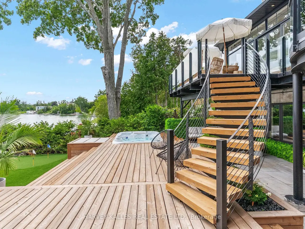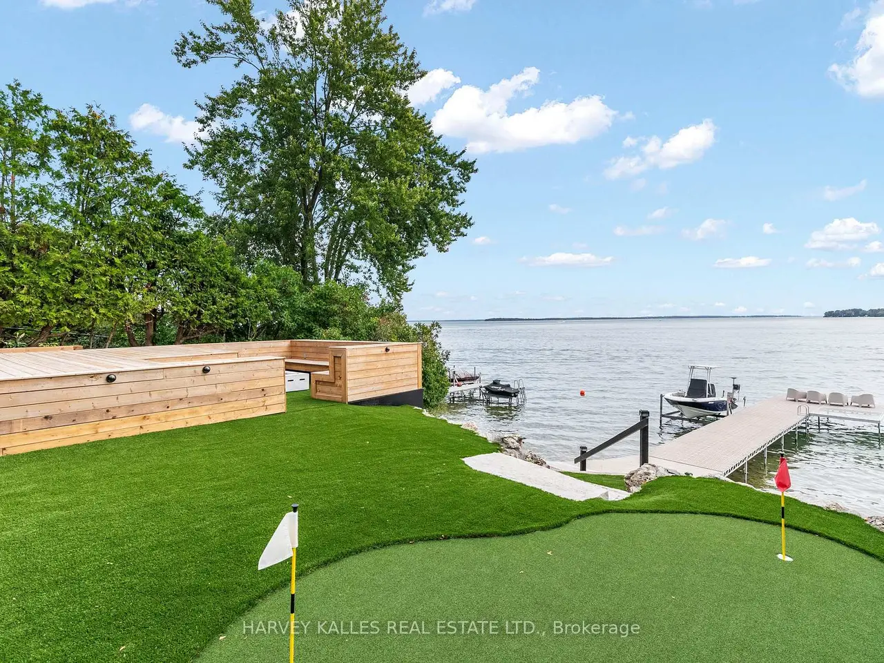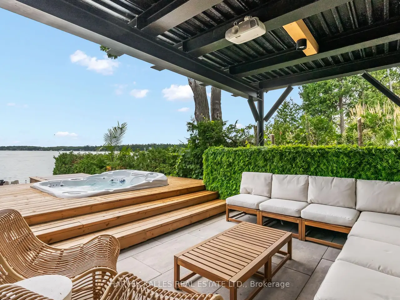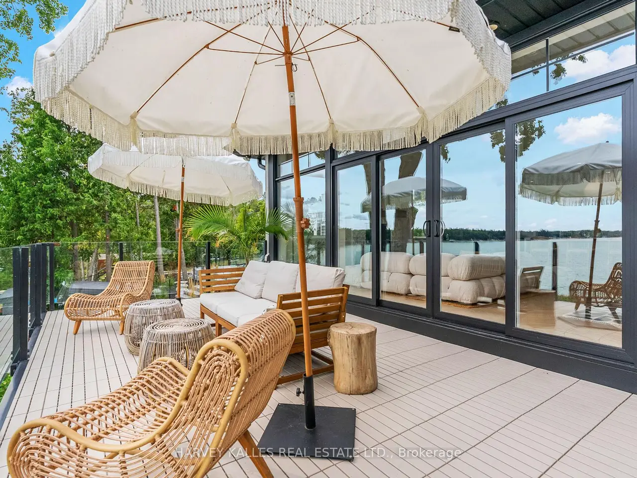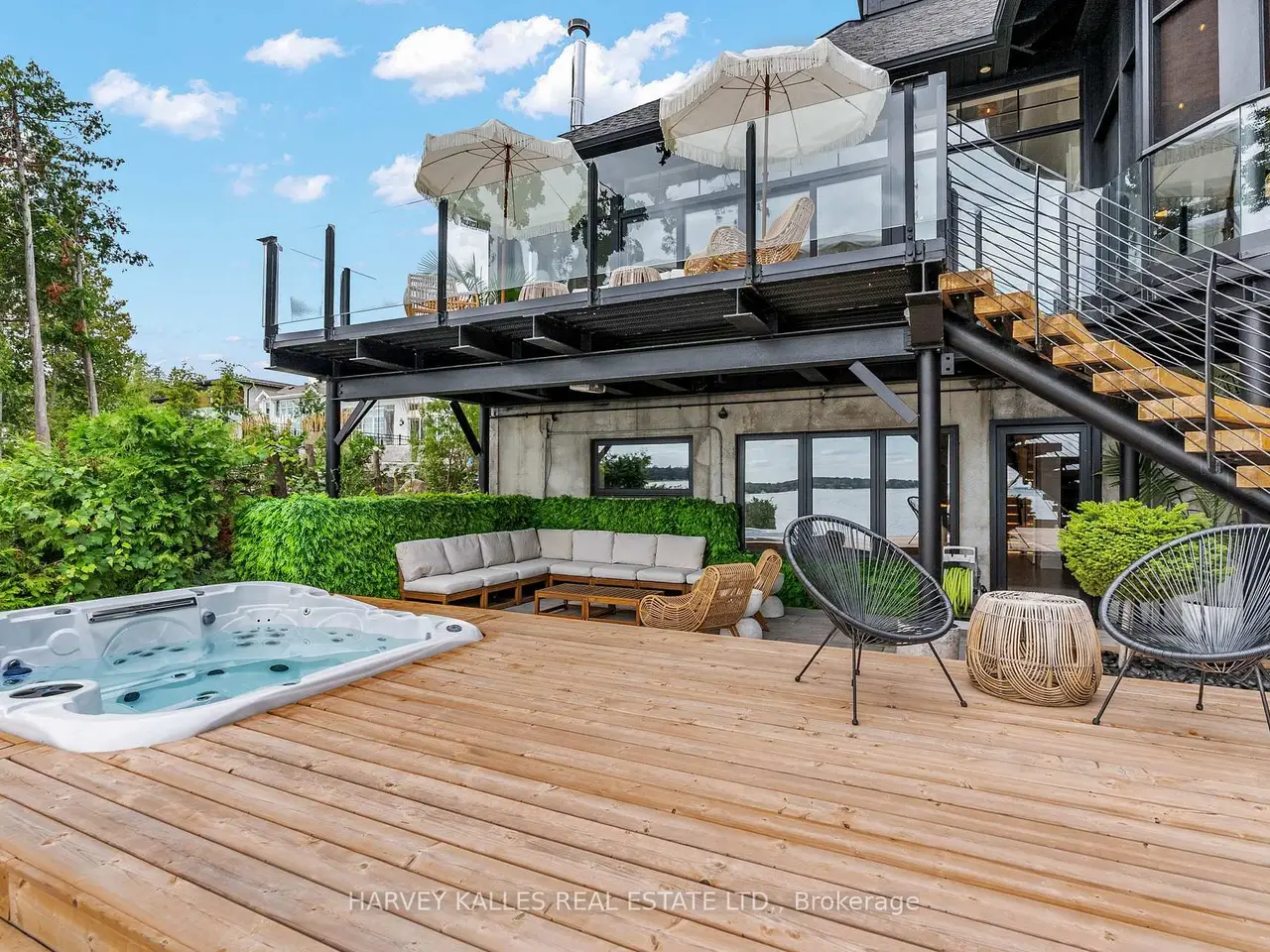 A rare architectural luxury waterfront residence blends concrete, glass, steel, and warm wood to create a one-of-a-kind Boho-modern retreat. Privately set off one of the finest sought after lakefront streets in Innisfil on Lake Simcoe, the home opens with a grand custom wood entry door into a dramatic space with polished concrete floors and soaring 20-foot ceilings layered in custom hung chandeliers. Walls of floor-to-ceiling glass and accordion-style doors blur the line between indoors and out, flooding the home with natural light and showcasing unobstructed lake views.A floating wood staircase /glass railings and custom finishes throughout reinforce the homes refined modern aesthetic. The gourmet kitchen is a showpiece with bespoke cabinetry, a large waterfall centre island, full service butlers pantry, and designer lighting. The expansive great room, with vaulted ceilings and statement fireplace, serves as the heart of the home framed by wall to wall south-facing windows capturing a panoramic lake view. Resort-style outdoor living is second to none. A two-story screened-in porch with glass, walk out to terrace lead to tiered entertainment spaces: a sun deck, custom wrought-iron stairway, built-in wood fire pit, hot tub, covered lounge areas, boathouse and putting green. Flagstone steps provide a gentle slope to the waters edge for seamless lake access.The lower level was designed for entertaining, featuring a recreation room with bespoke paneling, a backlit glass staircase, spa-inspired bath, and a concrete sit-up bar. With five bedrooms and multiple living and lounging areas, this property offers unparalleled space for family and guests.A truly rare offering modern design, resort amenities, and a world-class waterfront lifestyle converge in this extraordinary estate. ONE OF A KIND SHOWS A 10! (id:6370)