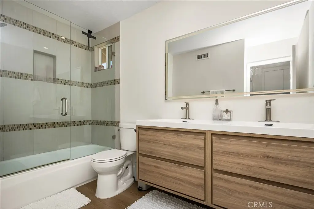 Welcome to this beautiful upgraded 4 bedrooms elegant home nestled in the desirable Sorrento neighborhood of Westpark, Irvine. Located on a cul-de-sac, offering indoor and outdoor of beauty and relaxation. Step through the elegant front door into a grand formal entry with soaring cathedral ceilings. The open concept space filled with natural light from premium hunter Douglas window treatments. The fully remodeled chef's kitchen features Thermador 5 burner built in gas cooktop, Bosh Oven, Thermador Fridge, dishwasher and vent! The fridge is custom built!! Enjoy cozy evenings by the fireplace, or in the back yard with its built in BBQ. Main floor bedroom sits adjacent to a renovated bathroom perfect for guests or multi generational living. Double doors lead to the upstairs expansive primary suite with a tranquil sitting area. The luxurious an-suite bathroom offers dual sinks, separate enclosed shower, two walk in closets. Two additional upstairs bedrooms share a stylish updated full bathroom.