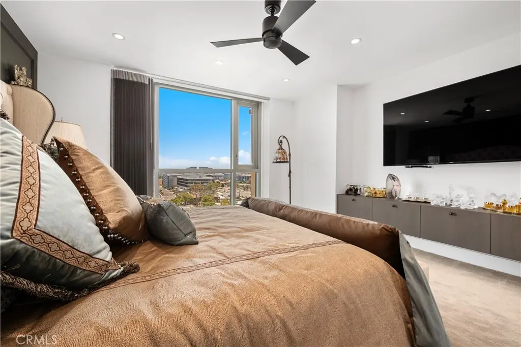 Welcome to Single-Level Luxury Living on the 14th Floor of the Prestigious 8000 Building at The Plaza in Irvine - Just Below the Penthouse. Experience elevated elegance in this stunning, premium residence boasting breathtaking sunset and city light views from every room. Perched high on the 14th floor, this sophisticated home has been meticulously upgraded with high-end finishes and a contemporary design palette that complements any decor with rich, modern flair. Bathed in natural light, the open concept living area seamlessly blends style and comfort. The gourmet kitchen is a chef's dream, featuring sleek Quartz countertops, built-in appliances, and custom cabinetry--ideal for both entertaining and daily living. Additional luxury upgrades include beautiful hardwood flooring and motorized window shades for added convenience. Step onto your private balcony and take in panoramic views of the Irvine skyline and beyond. Residents of The Plaza enjoy exclusive access to world-class, resort-style amenities including 24-hour concierge service, two sparkling pools with cabanas, a state-of-the-art fitness center with steam rooms, club and billiard rooms, a business center, and more. HOA dues cover gas, water, and trash. Whether you're looking for a refined primary residence or a fully furnished luxury rental, this home delivers the ultimate in convenience, style, and sophistication--right in the heart of one of Orange County's most prestigious communities. Truly a must-see to appreciate.
