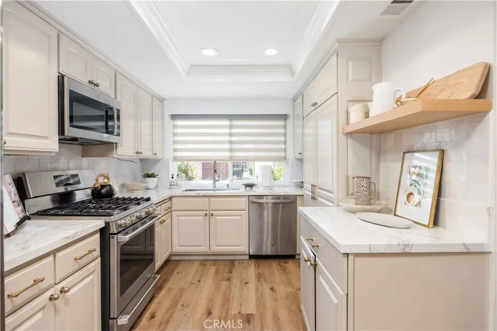 Single-Story Charm with the Space of Three Bedrooms - 2 Beds + Loft in University Park | 17292 Candleberry, Irvine | Fully Remodeled Home. This beautifully renovated home offers the perfect blend of modern upgrades and timeless charm, located in the highly sought-after Terrace community of University Park. Step inside through a private courtyard entry into a bright and airy open floor plan featuring vaulted ceilings, new luxury vinyl flooring, and fresh paint throughout. The living room boasts a charming brick fireplace and a sliding glass door that opens to a private back patio retreat--perfect for relaxing or entertaining. The heart of the home is the fully remodeled kitchen, thoughtfully designed with quartz countertops, elegant backsplash, and brand-new cabinetry. Both bathrooms have been completely updated with modern finishes including new countertops, bathtubs, flooring, and fixtures. This single-level layout offers two spacious bedrooms on the main floor, including a primary suite with an en-suite bath and an oversized walk-in closet. A permitted loft adds valuable bonus space, ideal as a home office, guest room, or third bedroom--perfect for today's work-from-home lifestyle. Located just steps from a lush greenbelt, this home offers tranquility and privacy in one of Irvine's most prestigious and serene neighborhoods. The Terrace community is surrounded by Tanaka Farms, world-class golf courses, scenic parks and hiking trails, and is served by top-rated Irvine schools. Just minutes from UCI and Newport Beach, residents enjoy a cooler coastal climate and an unbeatable location for beachgoers and commuters alike. Don't miss this rare opportunity to own a turnkey, single-story home in one of Irvine's most desirable areas.