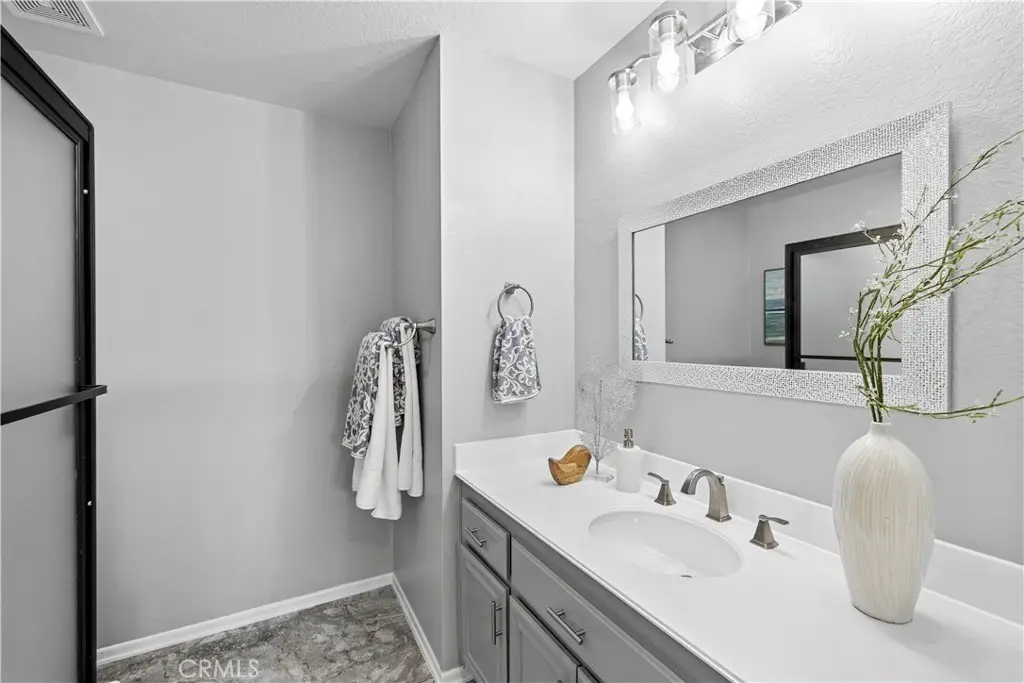 Welcome to 3 Summer Breeze in Turtle Rock! An upgraded home that offers style, comfort, and convenience in one of Irvine's most highly desired communities. The residence boasts dual pane, Pella windows and doors, fresh interior paint, new flooring, modern kitchen with quartz waterfall island, updated countertops/backsplash, and newer appliances. Bathrooms feature updated mirrors, cabinets, and fixtures, while lighting and USB-enabled outlets add a modern touch. Outdoor living is effortless with expanded patio pavers and newer systems, including AC condenser (2021) and new water heater (2024). The garage includes ceiling storage racks, video keypad entry, and touchless MyQ garage access. Just steps to the community pool and spa, with easy access to Shady Canyon and Bommer Canyon trails, Turtle Rock Community Park, and highly rated Irvine schools.