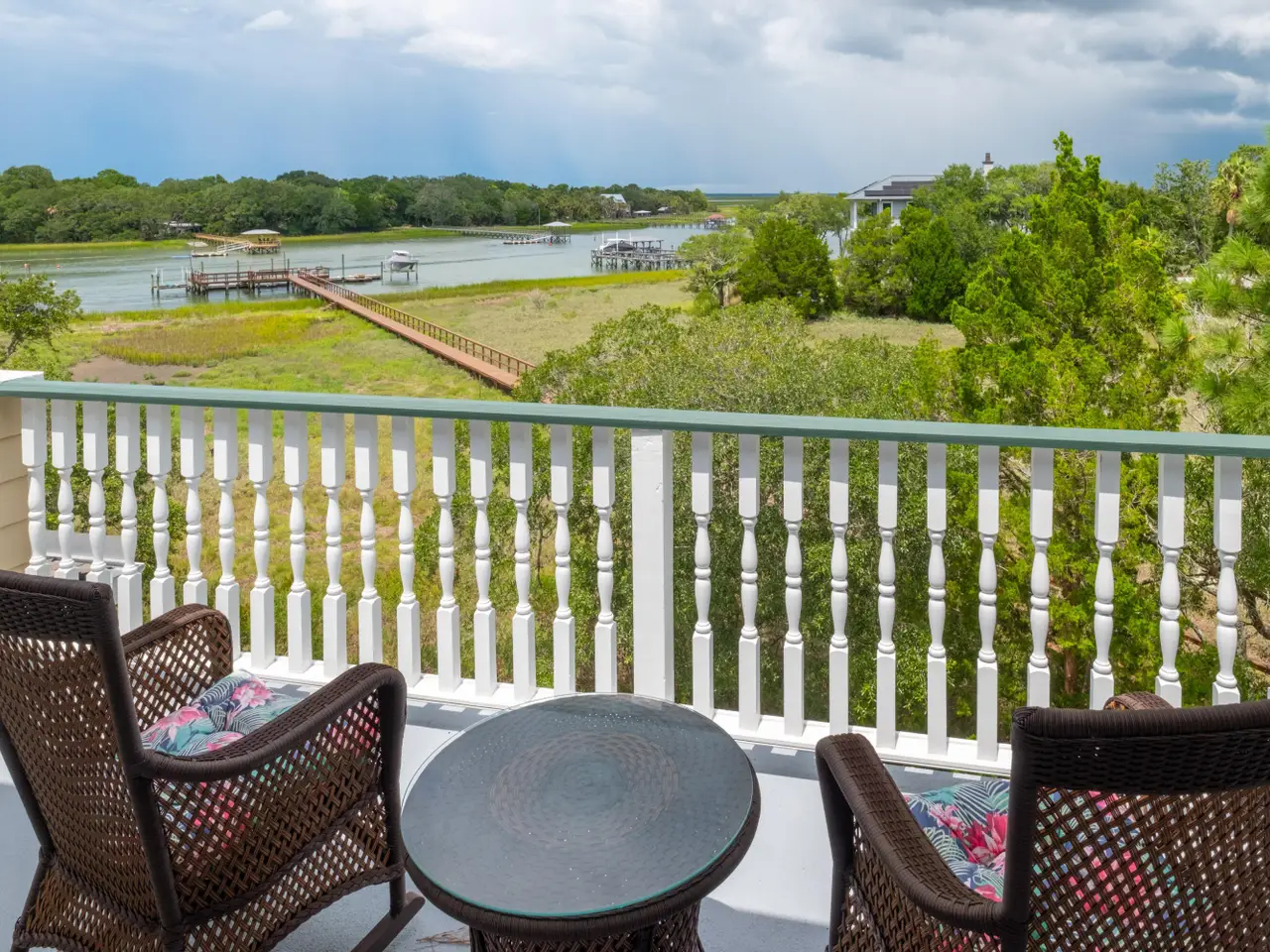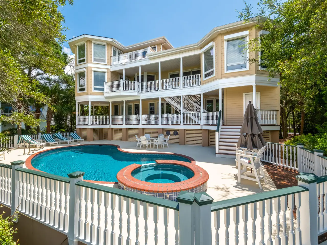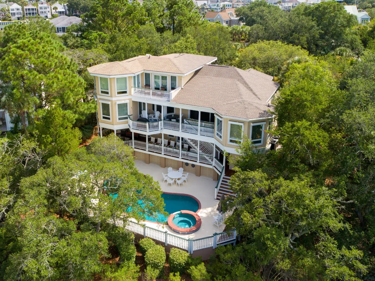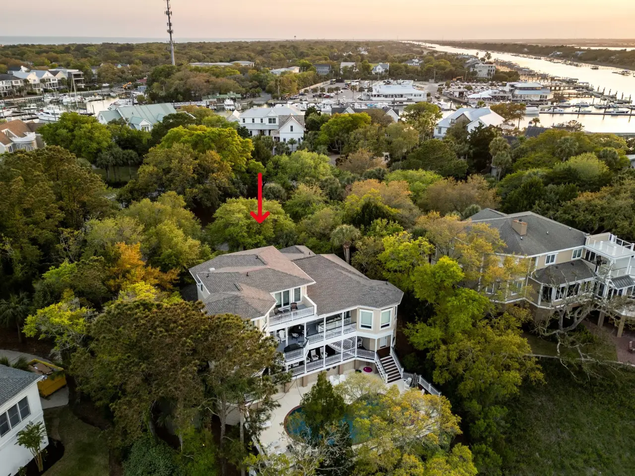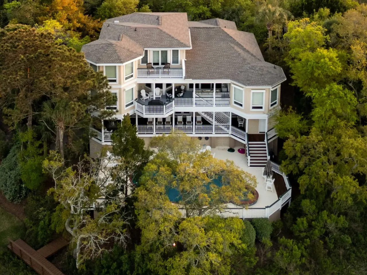 Discover luxury waterfront living at its finest in this 5-bedroom, 6.5-bath, 6,180+ square foot estate, ideally situated in the prestigious Waterway Island community of Wild Dunes. Boasting breathtaking panoramic views of the Intracoastal Waterway, this deepwater retreat is situated on 0.64 acres and is just four docks from the Isle of Palms Marina, offering effortless boating access and a shared deepwater dock. Spanning three levels, this home is designed for grand-scale entertaining and serene relaxation. A striking curved floating staircase welcomes you into the open foyer, leading up to the main living level, where an expansive, open-concept family room with soaring ceilings takes full advantage of the stunning water views. A reverse floorplan ensures the main living areas capture natural light and breathtaking vistas, while expansive porches on every level seamlessly blend indoor and outdoor living. A four-stop elevator provides effortless access to all floors. The gourmet kitchen is a chef's dream, featuring top-tier appliances, custom cabinetry, a built-in Sub-Zero refrigerator and freezer, and a spacious walk-in pantry with an additional overflow refrigerator/freezer. The oversized island makes it perfect for entertaining. For those who work from home, his and her private offices anchor both ends of the main living level in twin turrets, each offering direct porch access and inspiring, unobstructed water views. On the first floor, you'll find four generously sized bedrooms, each with its own luxurious ensuite bath. A secondary family room offers direct porch and pool access, creating the perfect space for guests or family to unwind. This floor also features a spacious laundry room, thoughtfully designed with a convenient laundry chute from the third floor. The top-floor primary suite is a true private sanctuary, offering unmatched luxury and tranquility. Wake up to breathtaking sunrises, rejuvenate in your private sauna, or unwind in the dedicated yoga room, a personal retreat designed for ultimate relaxation. Step outside to your private resort-style oasis, where a large pool invites you to bask in the coastal ambiance. The deepwater dock is just steps away, providing the perfect launching point for boating, fishing, or simply enjoying life on the water. The elevated foundation includes parking for six cars, a climate-controlled workshop and storage area, and a private cedar closet for seasonal clothing storage. Located just minutes from Isle of Palms, this estate offers an unparalleled opportunity to own a true deepwater paradise in one of the most sought-after waterfront communities. Experience the pinnacle of coastal luxury - schedule your private tour today!
