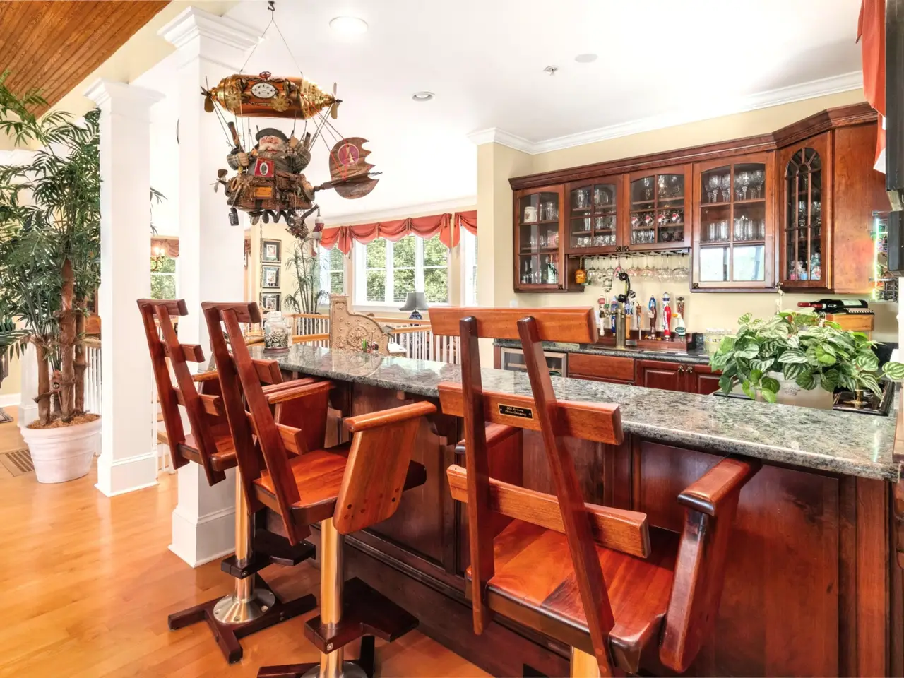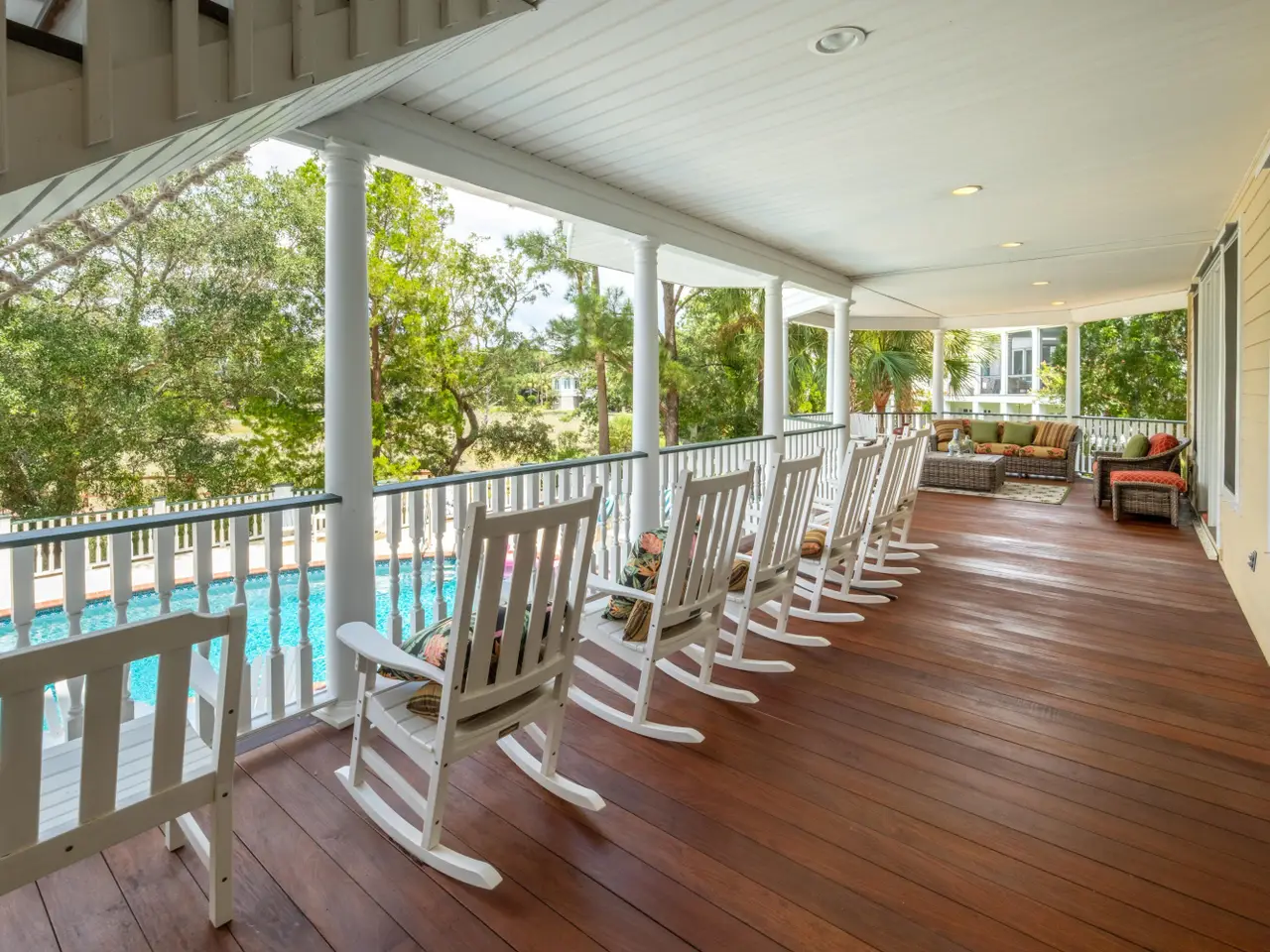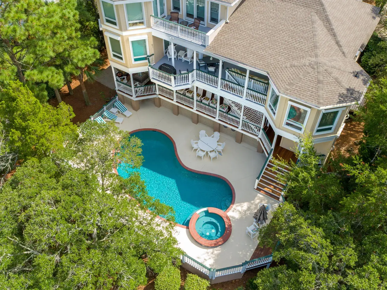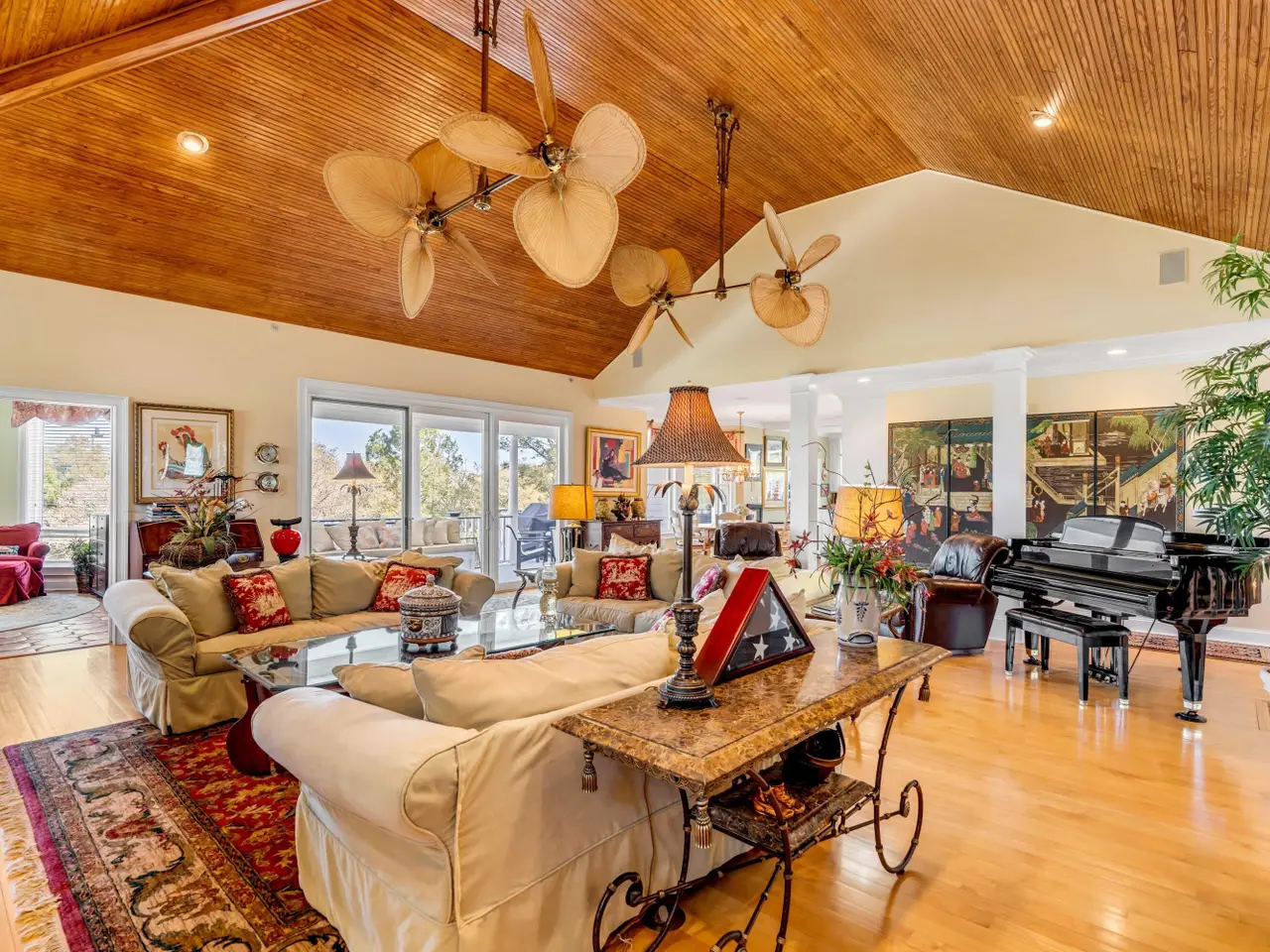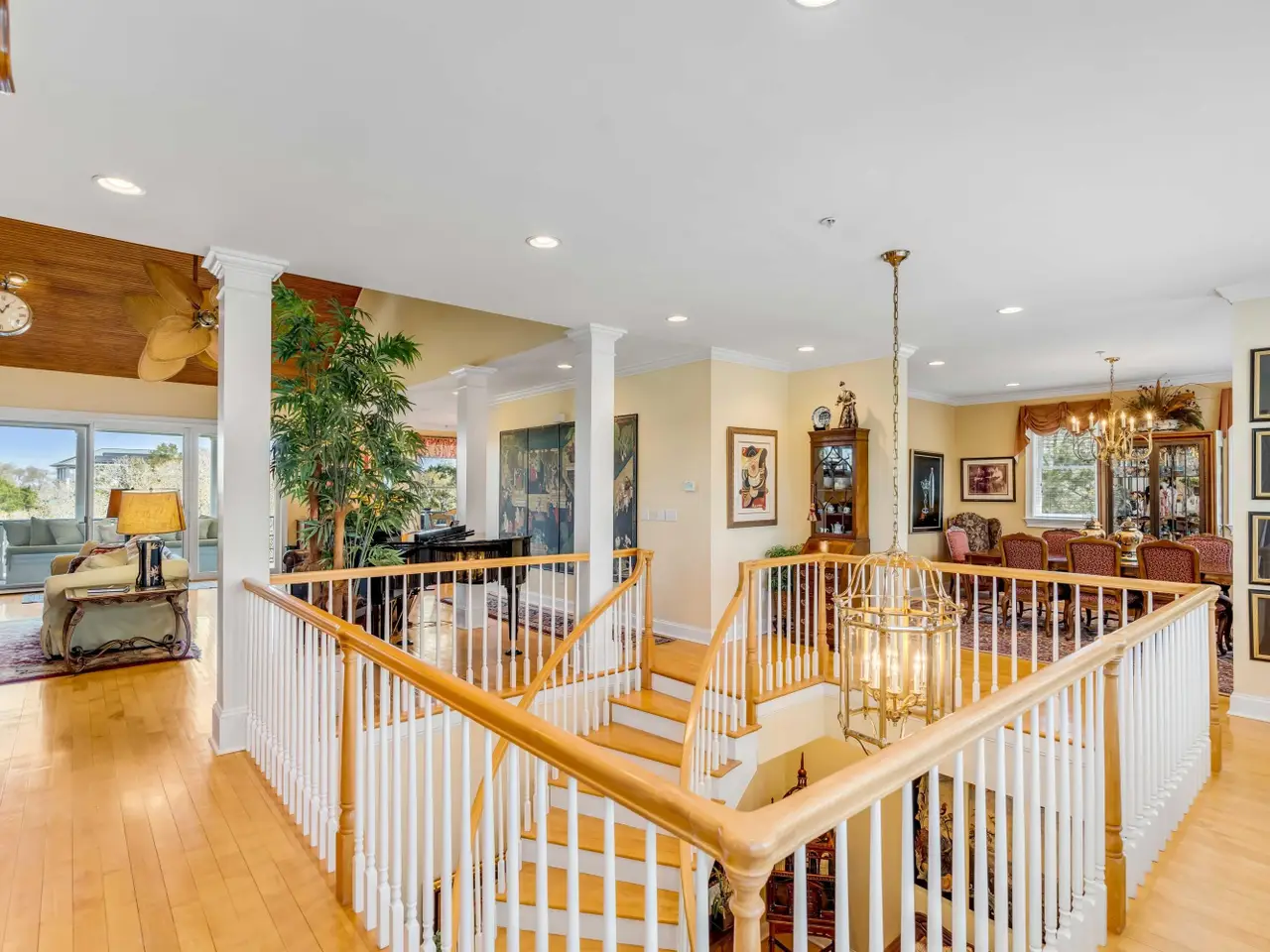 Discover luxury waterfront living at its finest in this 5-bedroom, 6.5-bath, 6,180+ square foot estate, ideally situated in the prestigious Waterway Island community of Wild Dunes. Boasting breathtaking panoramic views of the Intracoastal Waterway, this deepwater retreat is situated on 0.64 acres and is just four docks from the Isle of Palms Marina, offering effortless boating access and a shared deepwater dock. Spanning three levels, this home is designed for grand-scale entertaining and serene relaxation. A striking curved floating staircase welcomes you into the open foyer, leading up to the main living level, where an expansive, open-concept family room with soaring ceilings takes full advantage of the stunning water views. A reverse floorplan ensures the main living areas capture natural light and breathtaking vistas, while expansive porches on every level seamlessly blend indoor and outdoor living. A four-stop elevator provides effortless access to all floors. The gourmet kitchen is a chef's dream, featuring top-tier appliances, custom cabinetry, a built-in Sub-Zero refrigerator and freezer, and a spacious walk-in pantry with an additional overflow refrigerator/freezer. The oversized island makes it perfect for entertaining. For those who work from home, his and her private offices anchor both ends of the main living level in twin turrets, each offering direct porch access and inspiring, unobstructed water views. On the first floor, you'll find four generously sized bedrooms, each with its own luxurious ensuite bath. A secondary family room offers direct porch and pool access, creating the perfect space for guests or family to unwind. This floor also features a spacious laundry room, thoughtfully designed with a convenient laundry chute from the third floor. The top-floor primary suite is a true private sanctuary, offering unmatched luxury and tranquility. Wake up to breathtaking sunrises, rejuvenate in your private sauna, or unwind in the dedicated yoga room, a personal retreat designed for ultimate relaxation. Step outside to your private resort-style oasis, where a large pool invites you to bask in the coastal ambiance. The deepwater dock is just steps away, providing the perfect launching point for boating, fishing, or simply enjoying life on the water. The elevated foundation includes parking for six cars, a climate-controlled workshop and storage area, and a private cedar closet for seasonal clothing storage. Located just minutes from Isle of Palms, this estate offers an unparalleled opportunity to own a true deepwater paradise in one of the most sought-after waterfront communities. Experience the pinnacle of coastal luxury - schedule your private tour today!