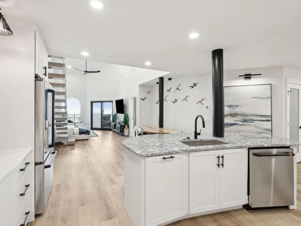 Exquisite Oceanfront Penthouse! Fully renovated and designer furnished 3 bedroom condo in the newly restored Seascape Villas of Wild Dunes with private beach access. This 2 story condo overlooks the ocean from the 5th floor with a gourmet kitchen, 3 luxury bathrooms, and loads of custom features like floating stairs, built-ins, and a hand crafted dining table. Seascape offers direct beach access, private pool, and walking paths to two world renowned golf courses, tennis and pickleball courts, and dining! This fully furnished top floor unit has an exceptional rental history and ratings. In addition to the condo's brand new interior, Seascape just completed a two year exterior restoration with no detail overlooked: new stucco, metal roofing, elevator modernization, new pavers, etc.