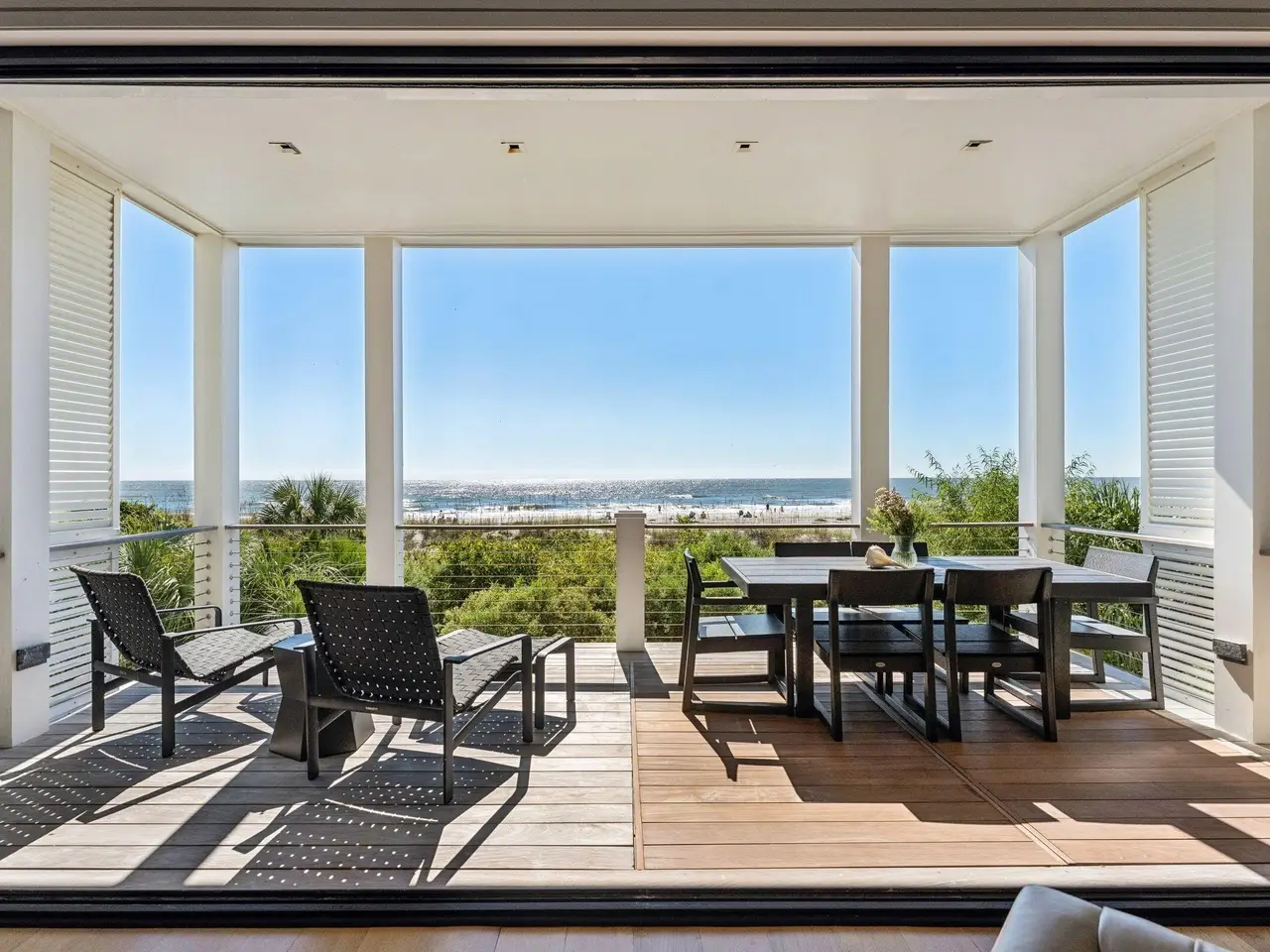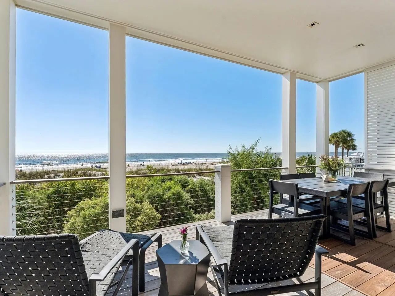 Perfectly positioned oceanfront within the exclusive Grand Pavilion of Wild Dunes Resort, this fully furnished, 6-bedroom, 6.5-bath coastal retreat has been completely reimagined and renovated in 2023. Designed across three levels and nearly 3,900 sq. ft., the home combines modern sophistication with relaxed Low country charm -- offering turn-key, resort-style living at its finest in one of Charleston's most coveted beachfront communities. Step inside to discover a bright, open-concept main level anchored by a chef's kitchen featuring custom walnut cabinetry, a statement marble island with bar seating, and professional-grade appliances.The adjoining living and dining areas open seamlessly to the oceanfront balcony through accordion-style glass doors, creating a true indoor-outdoor flow ideal for entertaining. A fully integrated wet bar and gas fireplace complete the space. A floating glass staircase and private elevator connect all three floors. Upstairs, the oceanfront primary suite offers a private balcony, spa-inspired bath with dual vanities and a freestanding soaking tub, and a custom walk-in closet. Two additional ensuite bedrooms provide privacy and comfort on this level. The third floor hosts an additional guest suite, laundry room, and a spacious lounge with a wet bar, sliding glass doors, and access to an expansive sun deckperfect for sunrise coffee or sunset cocktails. Outside, enjoy a private pool, IPE decking with stainless steel railings, electric hurricane shutters, and direct beach access just steps from your door. The home also includes a two-car garage with ample storage for golf carts and beach gear. Every inch of the home reflects the highest attention to detail, from 8' solid-core doors and rich white oak flooring to custom lighting and cabinetry. Additional conveniences include laundry on both the second and third floors and durable, low-maintenance construction with excellent insurability. Highlights Fully furnished Oceanfront setting with private beach access Pool and multiple outdoor living spaces Elevator to all three levels from garage Gas fireplace Electric hurricane shutters Two-car garage with storage Durable, low-maintenance construction with excellent insurability Resort Lifestyle: Homeowners enjoy access to all the premier amenities of Wild Dunes Resort, including: Two Tom Fazio-designed golf courses Award-winning Spa at Sweetgrass World-ranked tennis & pickleball facilities Multiple resort pools and 2.5 miles of pristine coastline 24/7 gated security and year-round community events Dining options within the resort include Coastal Provisions, Oystercatcher, Hudson's Market & Café, Coastal Crust, Laughing Gull, Beachside Burgers & Bar, The Nest Rooftop Bar, Huey's, and moreoffering everything from casual coastal fare to refined dining steps from your door.