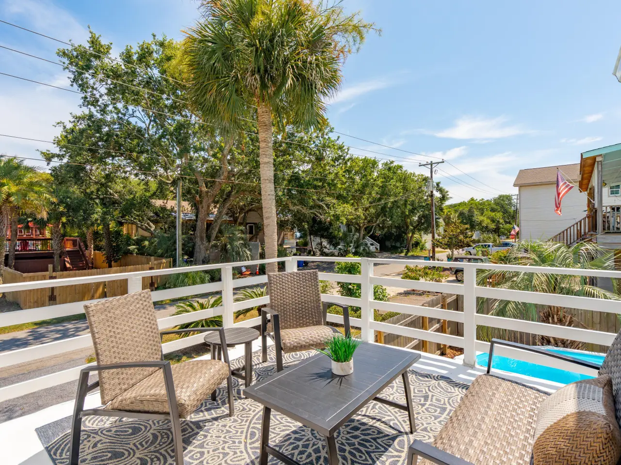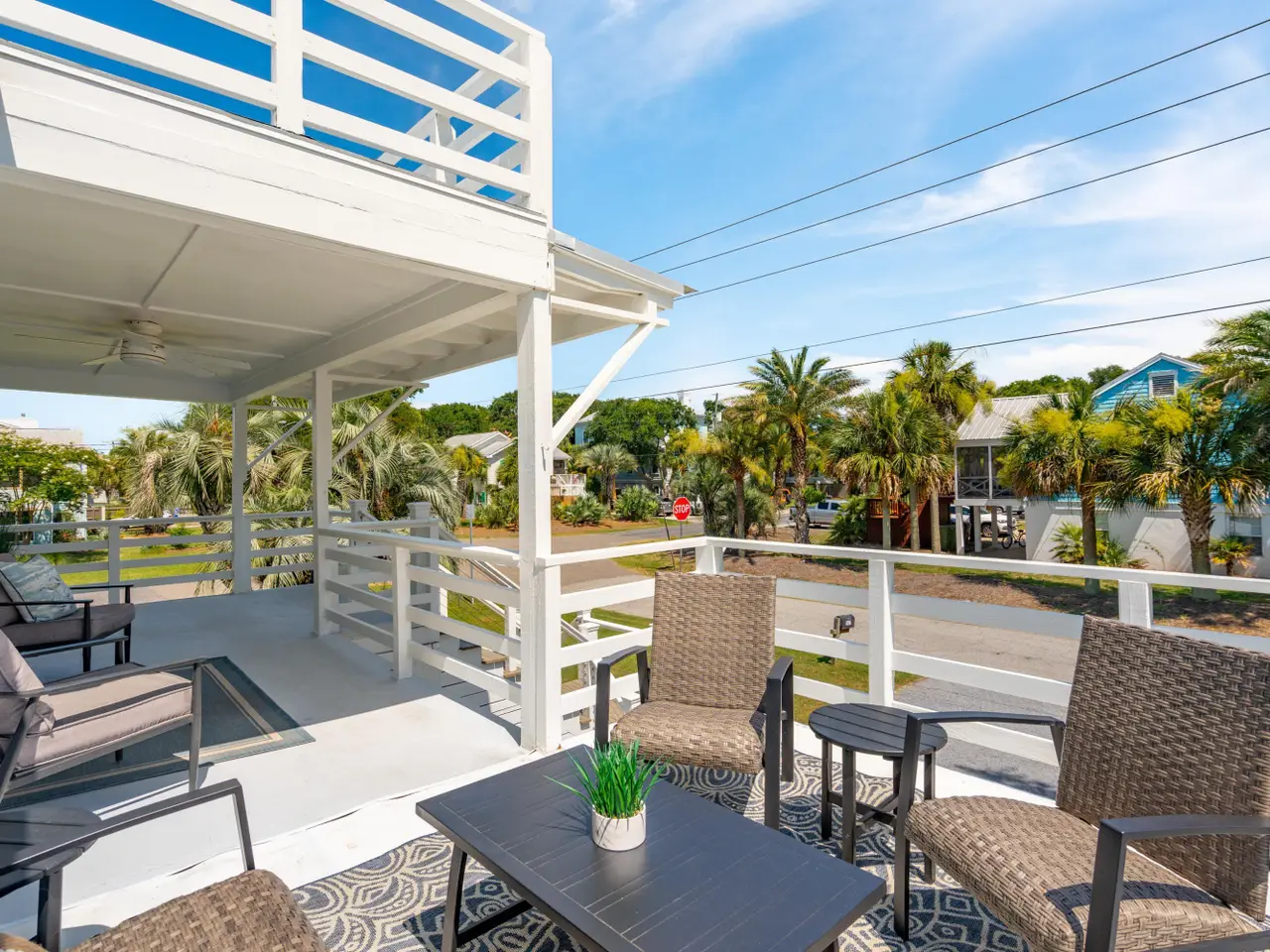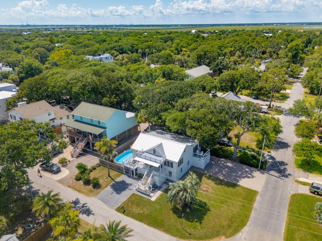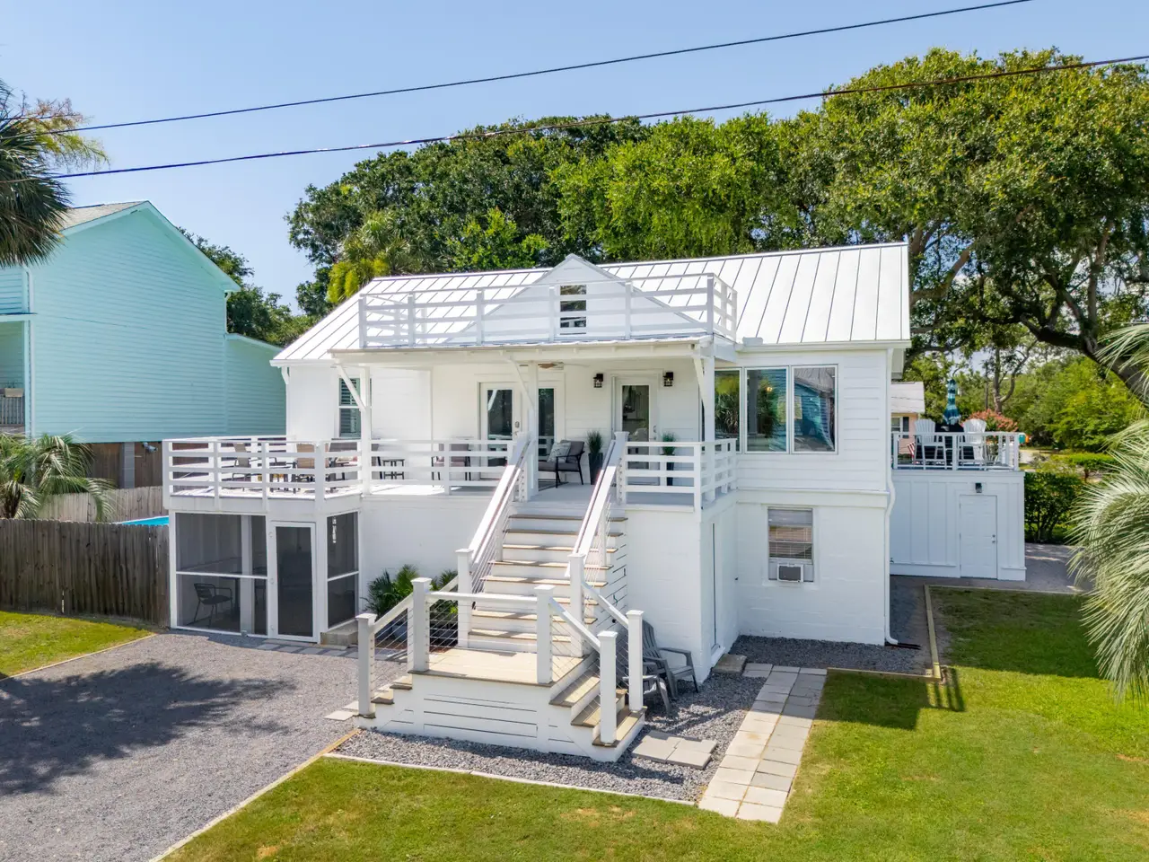 Rare DUPLEX on Isle of Palms - Steps to the Beach! Welcome to your slice of paradise! This stunning coastal duplex sits on a large corner lot just one block from the 25th Avenue beach access. A rare find, this original duplex has been fully renovated with modern finishes while retaining its island charm. With new roofing, flooring, kitchens, bathrooms, electrical, plumbing, garage, and custom porches, this home is move-in ready with endless potential. Live in one unit and rent the other, create a dedicated guest or in-law suite, or convert to a spacious single-family home - the choice is yours! **Note: Listing agent is the home owner / seller.**Enter the upstairs unit through the covered front porch with conversational seating as well as an open deck area with views of palm trees in every direction. The upstairs has beautiful new hardwood flooring throughout. The open floor plan and large windows paint the room with natural light and great views of the surrounding trees. The gourmet kitchen is appointed with a professional gas range and vented hood, dishwasher, 42 inch built in refrigerator with filtered water and ice machine, built in microwave drawer with hidden control panel, a large island with sink and seating on three sides and a bar area with under counter beverage refrigerator. Enjoy dining and entertaining in the spacious, treehouse-style dining area surrounded by beautiful views and decorated with a gorgeous natural wood ceiling. Extra large storm resistant sliding glass doors provide access from the dining area to an uncovered deck for grilling and enjoying the sunshine. The upstairs primary bedroom is large enough to accommodate a king sized bed and large dresser. A walk in closet with custom organization provides drawers, shelves and racks for clothing storage as well as a full sized washer and dryer. The primary bathroom includes an oversized shower, dual sinks, and custom built closet & drawers. The second bedroom is large enough to accommodate a king sized bed with a reach-in closet for clothing and two windows offering plenty of light. Both bedrooms have custom wood shutters on the windows. Flexible third bedroom/office with French doors to porch and full sized stairs to extensive attic space, conditioned and insulated for storage, and an additional closet under the stairs. The second upstairs bathroom includes an extra deep soaking tub and mermaid tiles on the back wall. Enter the downstairs unit through a screened porch with outdoor seating and a wall fan to keep you cool on a warm summer day. The large, open living room, dining, and kitchen area are designed for entertaining with plenty of room for seating and a full sized kitchen. Luxury vinyl flooring provides a light and beautiful look that is also easy to care for. Down the hall, there are two large bedrooms that each accommodate king sized beds. One has a reach-in closet and the other has a walk in closet. A full bathroom in the hall is shared. A bonus room for overflow, office, or playroom area provides access to the downstairs laundry and utility storage area. Three exterior doors on the laundry area allow for easy access to bikes and could be divided to provide half to upstairs and half to downstairs units. A one car garage addition runs the length of the back of the house with additional space for a workout area and a place to store all of your tools and equipment, surfboards, and beach chairs. A vinyl carport in the back yard protects your golf cart or low speed vehicle from the elements and an extra large fence gate makes it easy to get in and out of the yard. Gravel driveways in the front and on the side of the house offer ample off-street parking, a premium on IOP. In the fenced-in side yard, an extra large above ground pool provides a great shaded place to swim after the beach or a quiet space to lounge and enjoy the midday sunshine. The hot tub with jets and lights is a perfect year round outdoor space to wind down and relax under the palm trees. A large outdoor shower provides privacy while offering a convenient way to rinse off after the beach or pool. Whether you're looking for a primary residence with income potential, a vacation rental investment, or a multi-generational retreat, this property offers flexibility and value in a highly sought-after location. Don't miss this rare opportunity to own a fully updated duplex on Isle of Palms where lifestyle meets luxury, just steps from the sand!