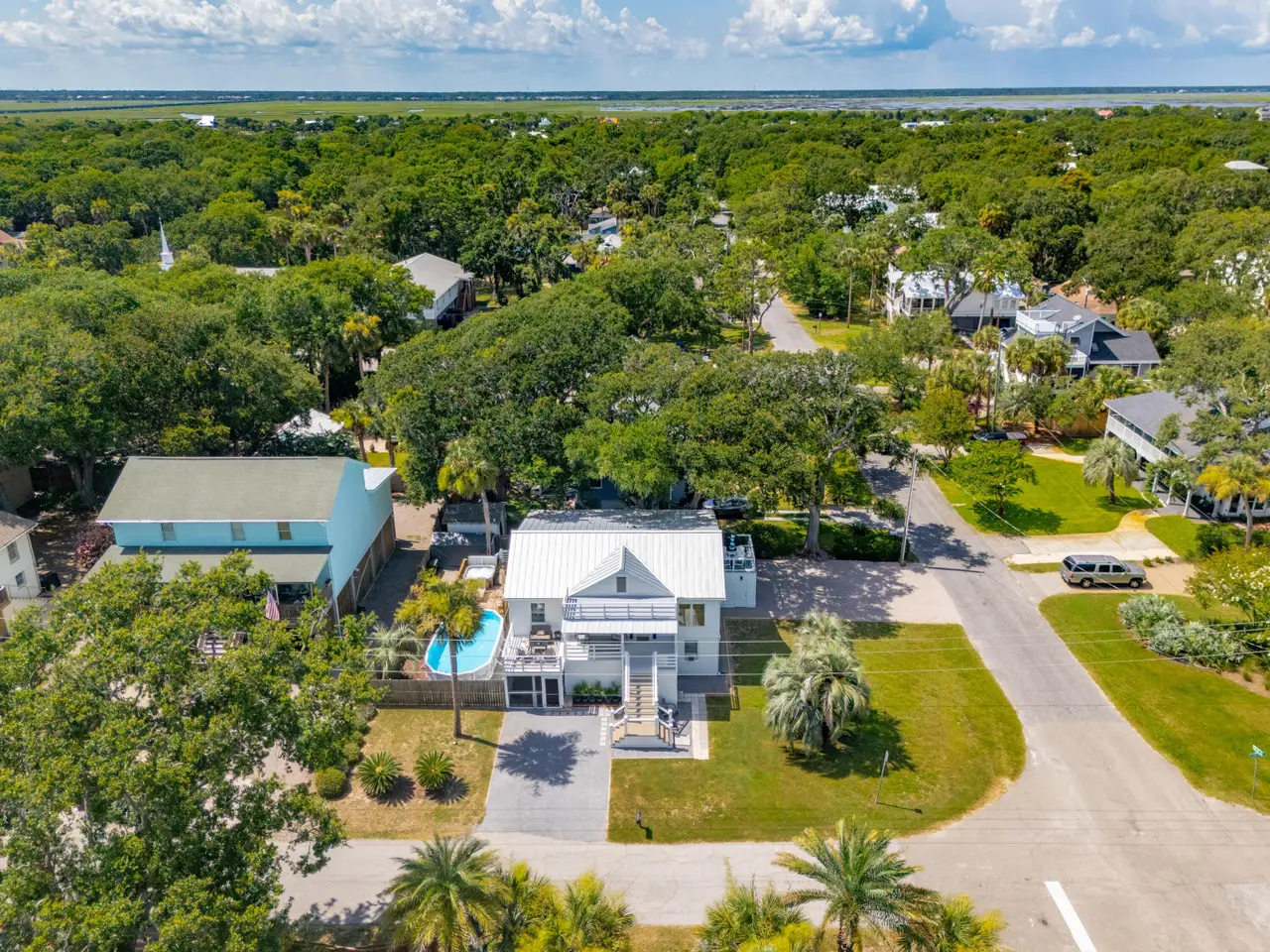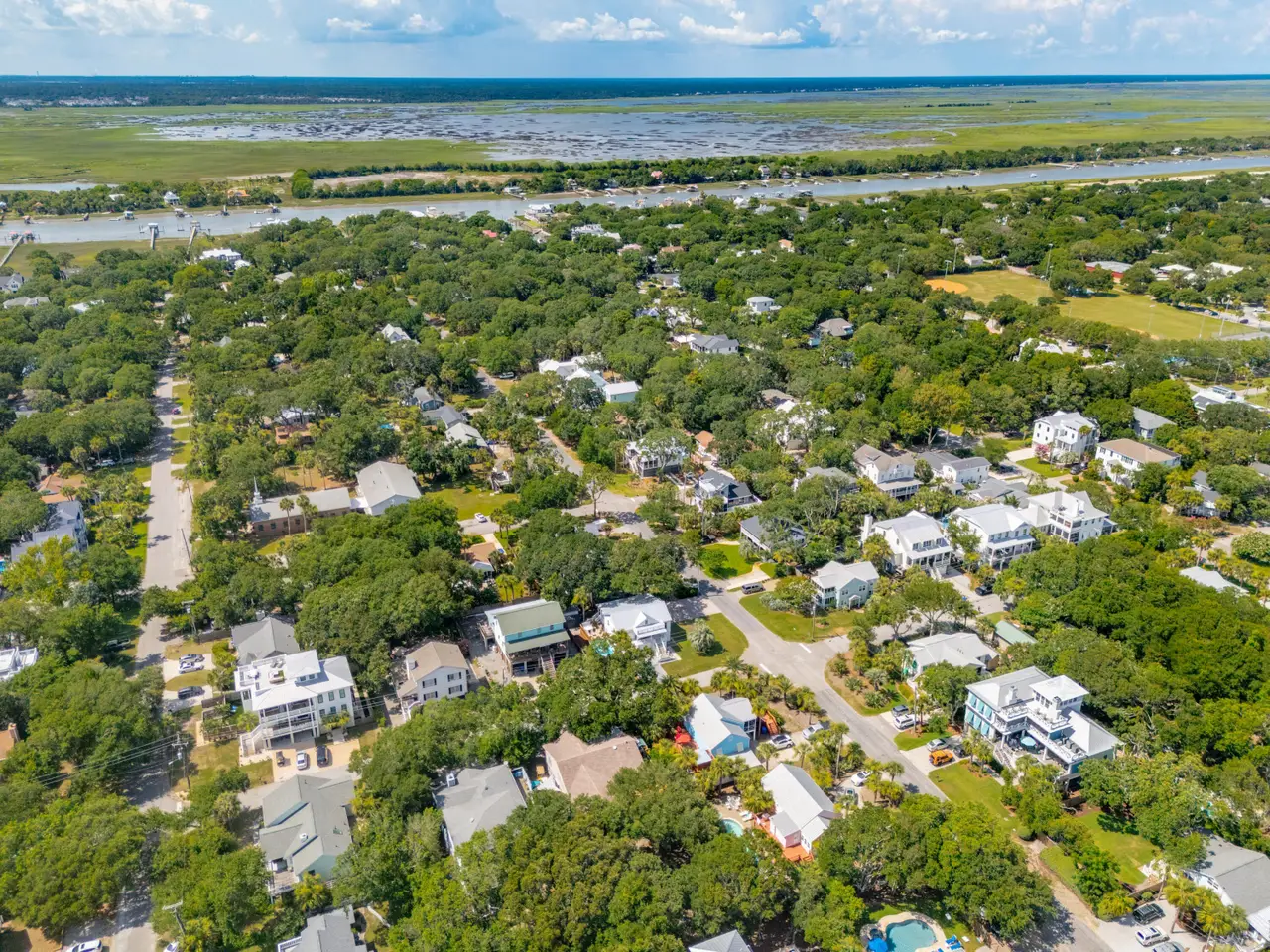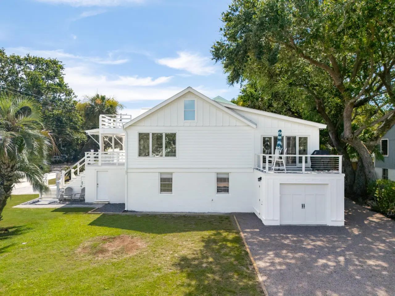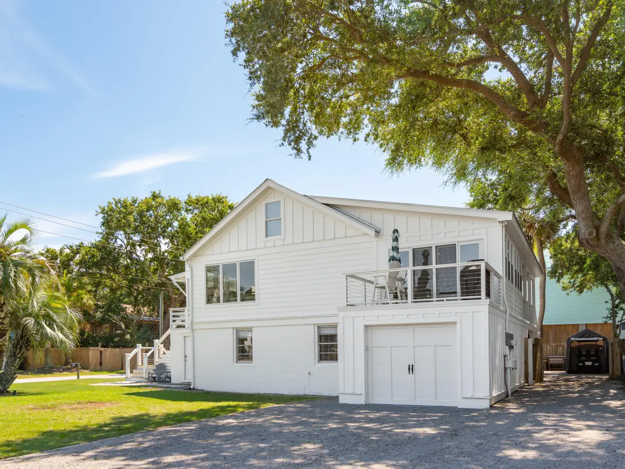 Rare DUPLEX on Isle of Palms - Steps to the Beach! Welcome to your slice of paradise! This stunning coastal duplex sits on a large corner lot just one block from the 25th Avenue beach access. A rare find, this original duplex has been fully renovated with modern finishes while retaining its island charm. With new roofing, flooring, kitchens, bathrooms, electrical, plumbing, garage, and custom porches, this home is move-in ready with endless potential. Live in one unit and rent the other, create a dedicated guest or in-law suite, or convert to a spacious single-family home - the choice is yours! **Note: Listing agent is the home owner / seller.**Enter the upstairs unit through the covered front porch with conversational seating as well as an open deck area with views of palm trees in every direction. The upstairs has beautiful new hardwood flooring throughout. The open floor plan and large windows paint the room with natural light and great views of the surrounding trees. The gourmet kitchen is appointed with a professional gas range and vented hood, dishwasher, 42 inch built in refrigerator with filtered water and ice machine, built in microwave drawer with hidden control panel, a large island with sink and seating on three sides and a bar area with under counter beverage refrigerator. Enjoy dining and entertaining in the spacious, treehouse-style dining area surrounded by beautiful views and decorated with a gorgeous natural wood ceiling. Extra large storm resistant sliding glass doors provide access from the dining area to an uncovered deck for grilling and enjoying the sunshine. The upstairs primary bedroom is large enough to accommodate a king sized bed and large dresser. A walk in closet with custom organization provides drawers, shelves and racks for clothing storage as well as a full sized washer and dryer. The primary bathroom includes an oversized shower, dual sinks, and custom built closet & drawers. The second bedroom is large enough to accommodate a king sized bed with a reach-in closet for clothing and two windows offering plenty of light. Both bedrooms have custom wood shutters on the windows. Flexible third bedroom/office with French doors to porch and full sized stairs to extensive attic space, conditioned and insulated for storage, and an additional closet under the stairs. The second upstairs bathroom includes an extra deep soaking tub and mermaid tiles on the back wall. Enter the downstairs unit through a screened porch with outdoor seating and a wall fan to keep you cool on a warm summer day. The large, open living room, dining, and kitchen area are designed for entertaining with plenty of room for seating and a full sized kitchen. Luxury vinyl flooring provides a light and beautiful look that is also easy to care for. Down the hall, there are two large bedrooms that each accommodate king sized beds. One has a reach-in closet and the other has a walk in closet. A full bathroom in the hall is shared. A bonus room for overflow, office, or playroom area provides access to the downstairs laundry and utility storage area. Three exterior doors on the laundry area allow for easy access to bikes and could be divided to provide half to upstairs and half to downstairs units. A one car garage addition runs the length of the back of the house with additional space for a workout area and a place to store all of your tools and equipment, surfboards, and beach chairs. A vinyl carport in the back yard protects your golf cart or low speed vehicle from the elements and an extra large fence gate makes it easy to get in and out of the yard. Gravel driveways in the front and on the side of the house offer ample off-street parking, a premium on IOP. In the fenced-in side yard, an extra large above ground pool provides a great shaded place to swim after the beach or a quiet space to lounge and enjoy the midday sunshine. The hot tub with jets and lights is a perfect year round outdoor space to wind down and relax under the palm trees. A large outdoor shower provides privacy while offering a convenient way to rinse off after the beach or pool. Whether you're looking for a primary residence with income potential, a vacation rental investment, or a multi-generational retreat, this property offers flexibility and value in a highly sought-after location. Don't miss this rare opportunity to own a fully updated duplex on Isle of Palms where lifestyle meets luxury, just steps from the sand!