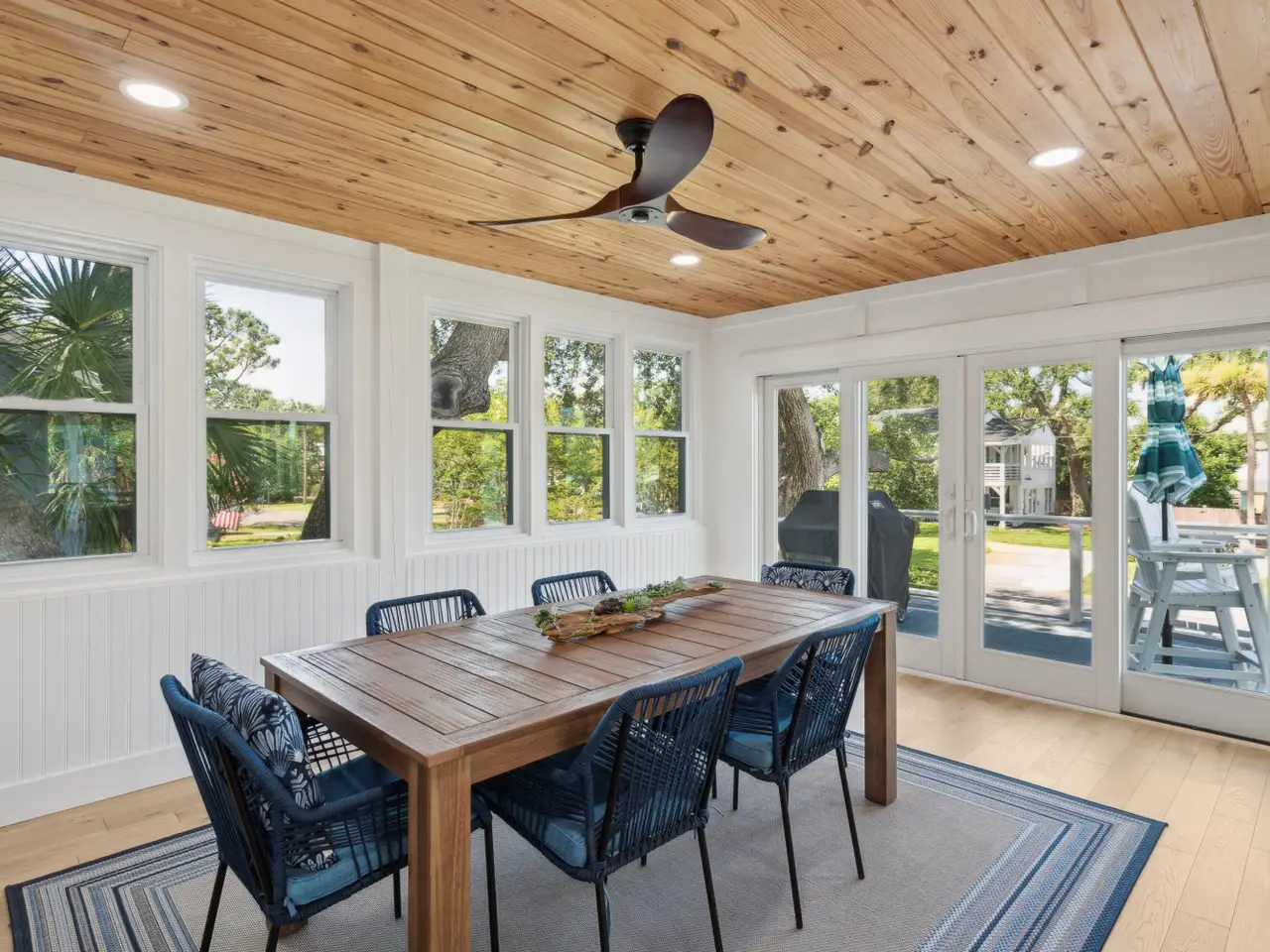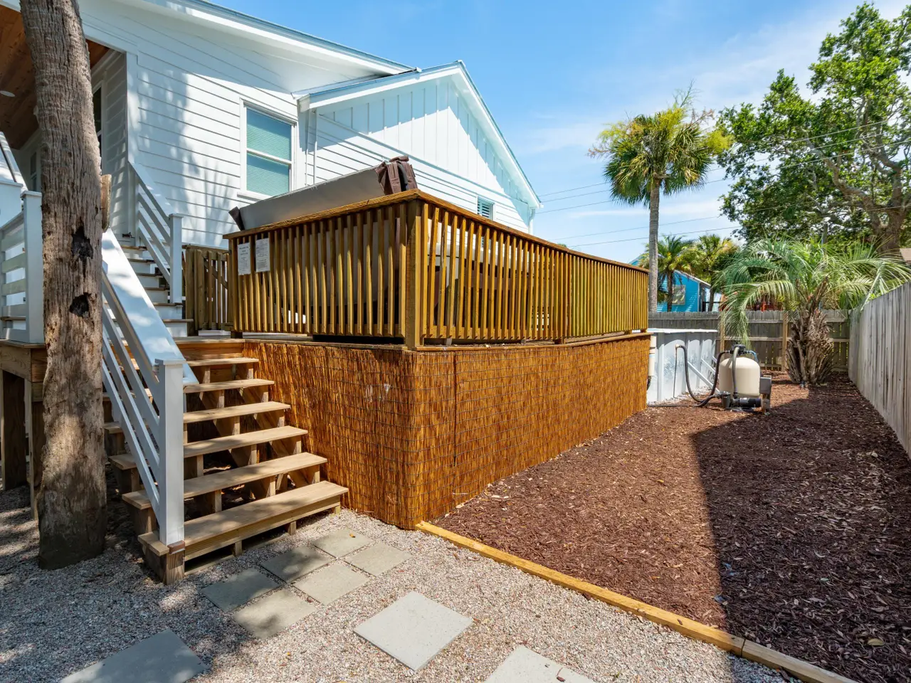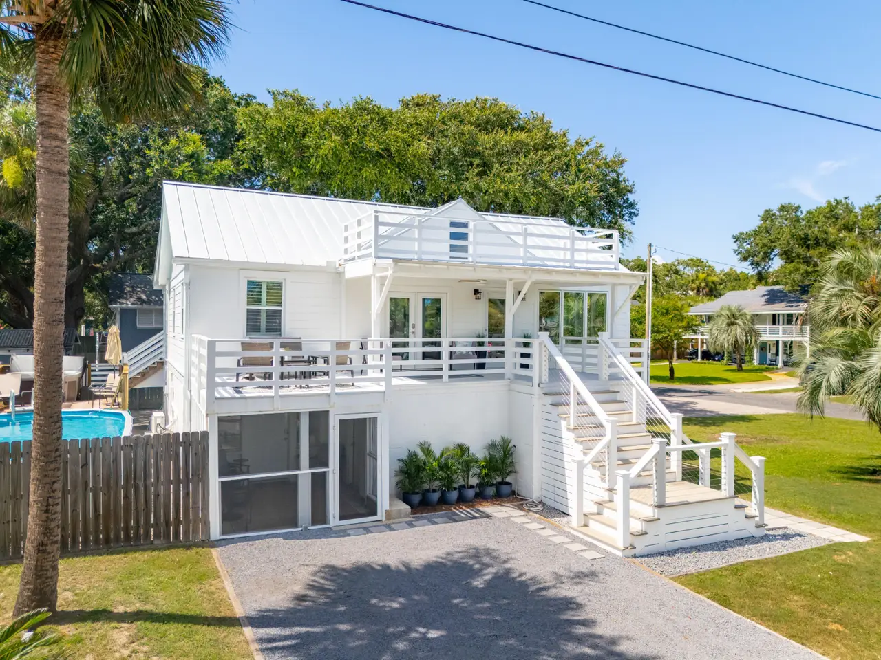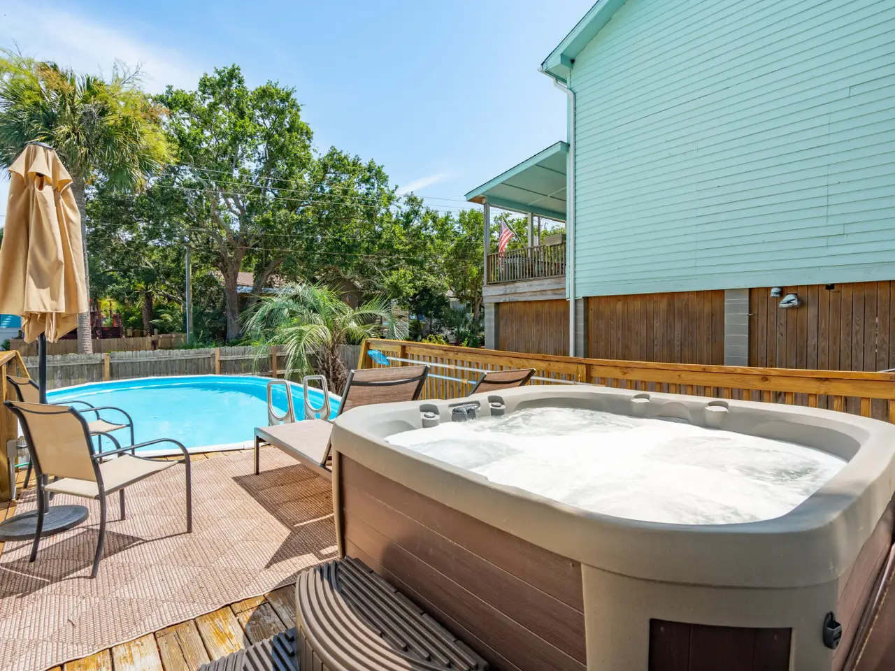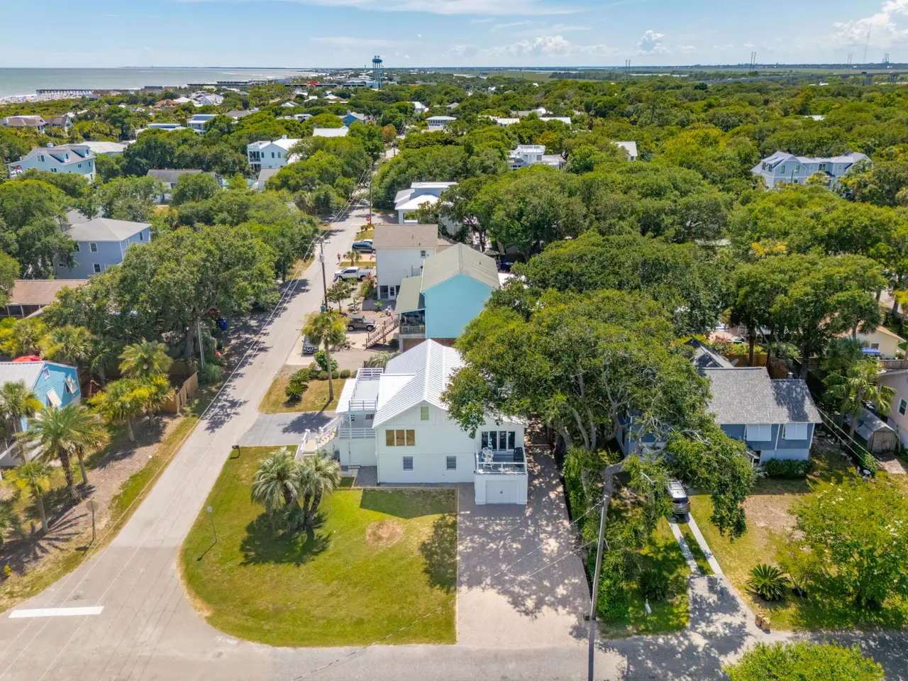 Rare DUPLEX on Isle of Palms - Steps to the Beach! Welcome to your slice of paradise! This stunning coastal duplex sits on a large corner lot just one block from the 25th Avenue beach access. A rare find, this original duplex has been fully renovated with modern finishes while retaining its island charm. With new roofing, flooring, kitchens, bathrooms, electrical, plumbing, garage, and custom porches, this home is move-in ready with endless potential. Live in one unit and rent the other, create a dedicated guest or in-law suite, or convert to a spacious single-family home - the choice is yours! **Note: Listing agent is the home owner / seller.**Enter the upstairs unit through the covered front porch with conversational seating as well as an open deck area with views of palm trees in every direction. The upstairs has beautiful new hardwood flooring throughout. The open floor plan and large windows paint the room with natural light and great views of the surrounding trees. The gourmet kitchen is appointed with a professional gas range and vented hood, dishwasher, 42 inch built in refrigerator with filtered water and ice machine, built in microwave drawer with hidden control panel, a large island with sink and seating on three sides and a bar area with under counter beverage refrigerator. Enjoy dining and entertaining in the spacious, treehouse-style dining area surrounded by beautiful views and decorated with a gorgeous natural wood ceiling. Extra large storm resistant sliding glass doors provide access from the dining area to an uncovered deck for grilling and enjoying the sunshine. The upstairs primary bedroom is large enough to accommodate a king sized bed and large dresser. A walk in closet with custom organization provides drawers, shelves and racks for clothing storage as well as a full sized washer and dryer. The primary bathroom includes an oversized shower, dual sinks, and custom built closet & drawers. The second bedroom is large enough to accommodate a king sized bed with a reach-in closet for clothing and two windows offering plenty of light. Both bedrooms have custom wood shutters on the windows. Flexible third bedroom/office with French doors to porch and full sized stairs to extensive attic space, conditioned and insulated for storage, and an additional closet under the stairs. The second upstairs bathroom includes an extra deep soaking tub and mermaid tiles on the back wall. Enter the downstairs unit through a screened porch with outdoor seating and a wall fan to keep you cool on a warm summer day. The large, open living room, dining, and kitchen area are designed for entertaining with plenty of room for seating and a full sized kitchen. Luxury vinyl flooring provides a light and beautiful look that is also easy to care for. Down the hall, there are two large bedrooms that each accommodate king sized beds. One has a reach-in closet and the other has a walk in closet. A full bathroom in the hall is shared. A bonus room for overflow, office, or playroom area provides access to the downstairs laundry and utility storage area. Three exterior doors on the laundry area allow for easy access to bikes and could be divided to provide half to upstairs and half to downstairs units. A one car garage addition runs the length of the back of the house with additional space for a workout area and a place to store all of your tools and equipment, surfboards, and beach chairs. A vinyl carport in the back yard protects your golf cart or low speed vehicle from the elements and an extra large fence gate makes it easy to get in and out of the yard. Gravel driveways in the front and on the side of the house offer ample off-street parking, a premium on IOP. In the fenced-in side yard, an extra large above ground pool provides a great shaded place to swim after the beach or a quiet space to lounge and enjoy the midday sunshine. The hot tub with jets and lights is a perfect year round outdoor space to wind down and relax under the palm trees. A large outdoor shower provides privacy while offering a convenient way to rinse off after the beach or pool. Whether you're looking for a primary residence with income potential, a vacation rental investment, or a multi-generational retreat, this property offers flexibility and value in a highly sought-after location. Don't miss this rare opportunity to own a fully updated duplex on Isle of Palms where lifestyle meets luxury, just steps from the sand!