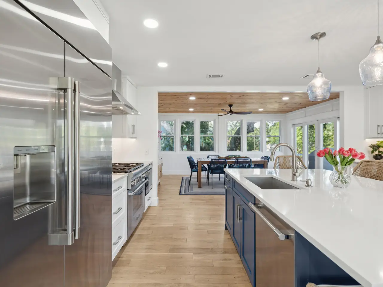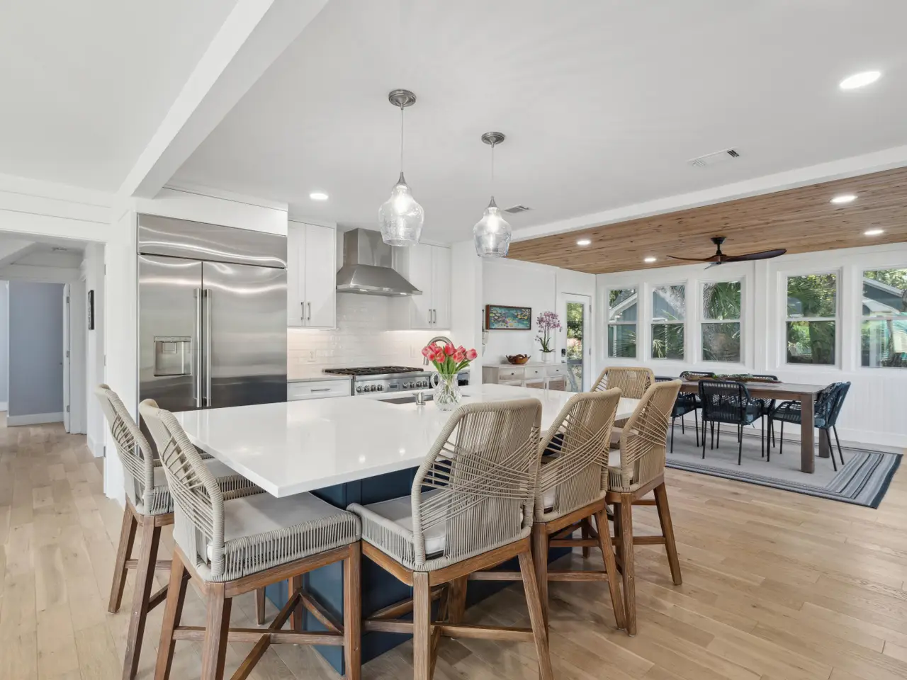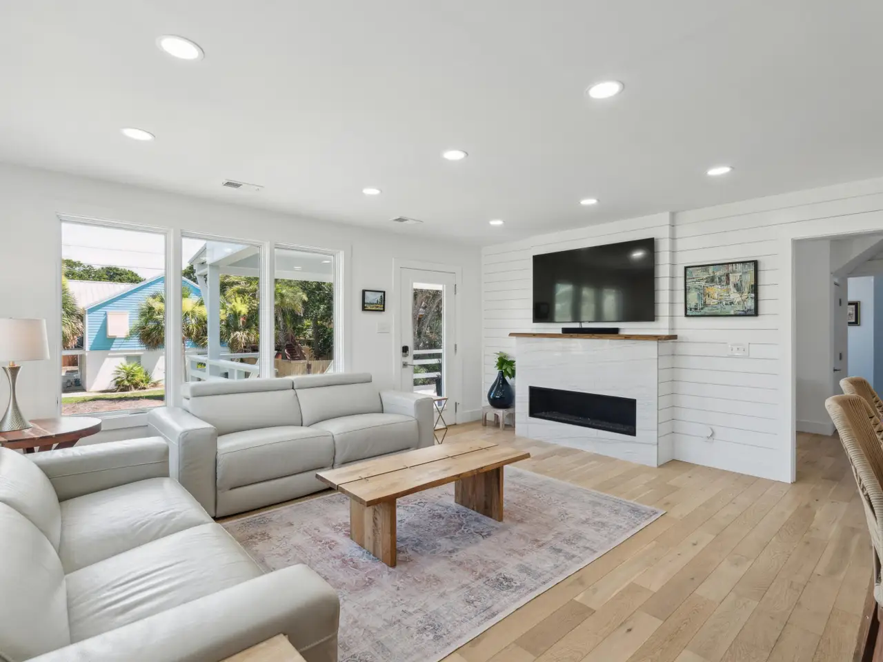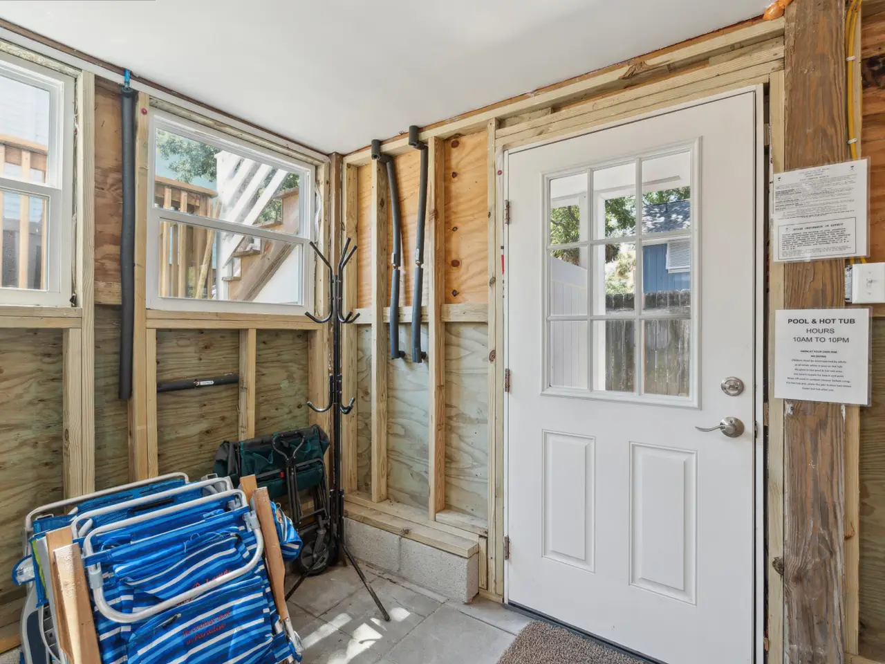 Rare DUPLEX on Isle of Palms - Steps to the Beach! Welcome to your slice of paradise! This stunning coastal duplex sits on a large corner lot just one block from the 25th Avenue beach access. A rare find, this original duplex has been fully renovated with modern finishes while retaining its island charm. With new roofing, flooring, kitchens, bathrooms, electrical, plumbing, garage, and custom porches, this home is move-in ready with endless potential. Live in one unit and rent the other, create a dedicated guest or in-law suite, or convert to a spacious single-family home - the choice is yours! **Note: Listing agent is the home owner / seller.**Enter the upstairs unit through the covered front porch with conversational seating as well as an open deck area with views of palm trees in every direction. The upstairs has beautiful new hardwood flooring throughout. The open floor plan and large windows paint the room with natural light and great views of the surrounding trees. The gourmet kitchen is appointed with a professional gas range and vented hood, dishwasher, 42 inch built in refrigerator with filtered water and ice machine, built in microwave drawer with hidden control panel, a large island with sink and seating on three sides and a bar area with under counter beverage refrigerator. Enjoy dining and entertaining in the spacious, treehouse-style dining area surrounded by beautiful views and decorated with a gorgeous natural wood ceiling. Extra large storm resistant sliding glass doors provide access from the dining area to an uncovered deck for grilling and enjoying the sunshine. The upstairs primary bedroom is large enough to accommodate a king sized bed and large dresser. A walk in closet with custom organization provides drawers, shelves and racks for clothing storage as well as a full sized washer and dryer. The primary bathroom includes an oversized shower, dual sinks, and custom built closet & drawers. The second bedroom is large enough to accommodate a king sized bed with a reach-in closet for clothing and two windows offering plenty of light. Both bedrooms have custom wood shutters on the windows. Flexible third bedroom/office with French doors to porch and full sized stairs to extensive attic space, conditioned and insulated for storage, and an additional closet under the stairs. The second upstairs bathroom includes an extra deep soaking tub and mermaid tiles on the back wall. Enter the downstairs unit through a screened porch with outdoor seating and a wall fan to keep you cool on a warm summer day. The large, open living room, dining, and kitchen area are designed for entertaining with plenty of room for seating and a full sized kitchen. Luxury vinyl flooring provides a light and beautiful look that is also easy to care for. Down the hall, there are two large bedrooms that each accommodate king sized beds. One has a reach-in closet and the other has a walk in closet. A full bathroom in the hall is shared. A bonus room for overflow, office, or playroom area provides access to the downstairs laundry and utility storage area. Three exterior doors on the laundry area allow for easy access to bikes and could be divided to provide half to upstairs and half to downstairs units. A one car garage addition runs the length of the back of the house with additional space for a workout area and a place to store all of your tools and equipment, surfboards, and beach chairs. A vinyl carport in the back yard protects your golf cart or low speed vehicle from the elements and an extra large fence gate makes it easy to get in and out of the yard. Gravel driveways in the front and on the side of the house offer ample off-street parking, a premium on IOP. In the fenced-in side yard, an extra large above ground pool provides a great shaded place to swim after the beach or a quiet space to lounge and enjoy the midday sunshine. The hot tub with jets and lights is a perfect year round outdoor space to wind down and relax under the palm trees. A large outdoor shower provides privacy while offering a convenient way to rinse off after the beach or pool. Whether you're looking for a primary residence with income potential, a vacation rental investment, or a multi-generational retreat, this property offers flexibility and value in a highly sought-after location. Don't miss this rare opportunity to own a fully updated duplex on Isle of Palms where lifestyle meets luxury, just steps from the sand!