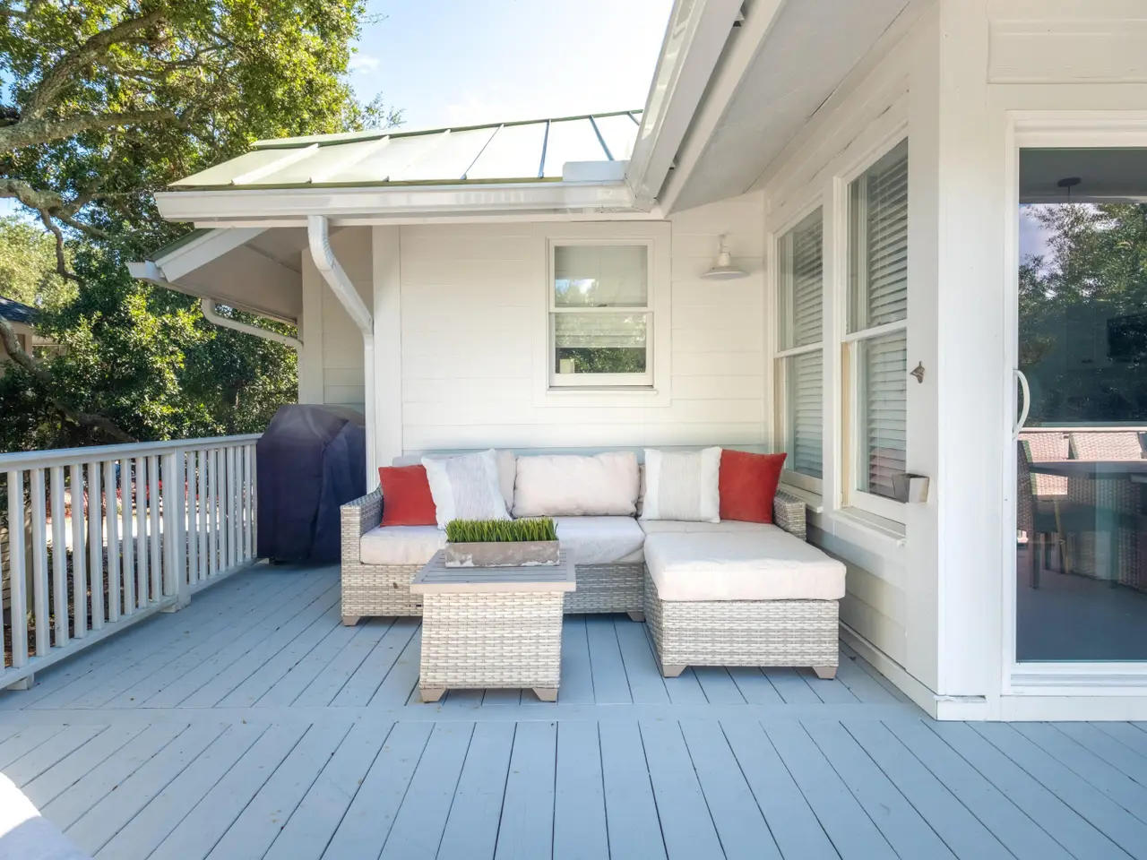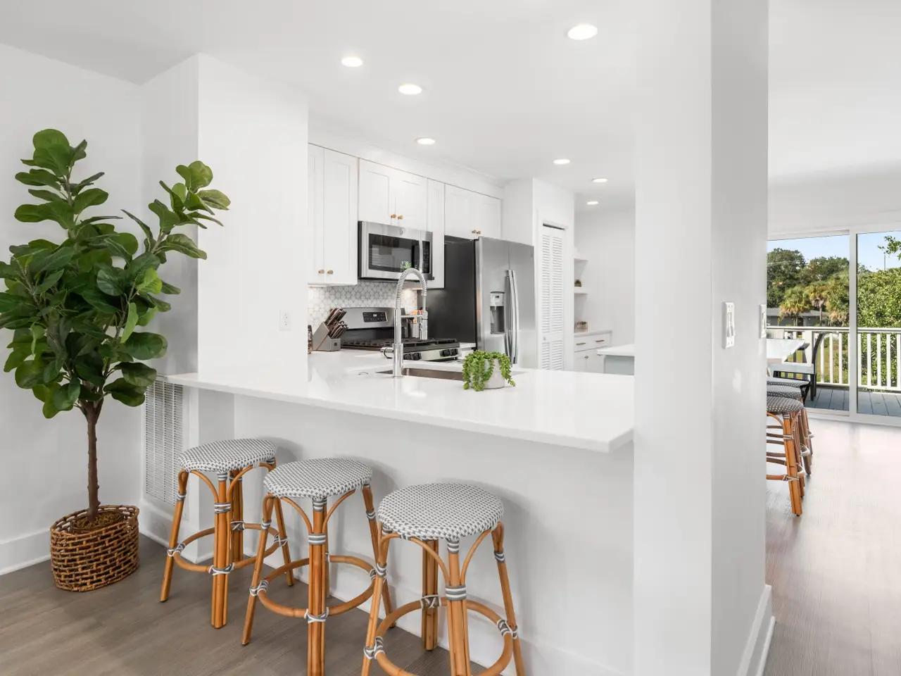 Welcome to Saltwater Oasis, a beautifully remodeled and elevated beach bungalow in Isle of Palm's Beachside community that embodies a convenient IOP lifestyle, while retaining a private community feel. Park the car and forget about it--everything you love about island living is just steps away. From sun-soaked beach days to evenings filled with live local music, this home captures the relaxed coastal vibe that makes IOP and the Lowcountry so beloved.Enter the home through the spacious sun deck and additional screen porch complete with lazy day porch swing and big ceiling fan. Venture inside and be surprised by the immediate airy vaulted living room ceiling. The inviting family room features space for relaxing in AC comfort and a dining area perfect for gatherings.The home was completely renovated in 2022 down to the studs, making it move-in ready for a new owner or seamless for rental guests. The three-bedroom, two-bath layout features a spacious open and updated kitchen with slow-close custom cabinetry, new quartz countertops throughout including island, eat-in bar and coffee/beverage station. Thoughtful updates include new fixtures, lighting and appliances. A full laundry area adds everyday convenience. The owner's suite features a bathroom with updated dual vanity quartz countertops and drawer space to compliment a stunning azure tiled large shower. Walk-in closet with wood shelving and plenty of main room space for king bed and side tables and lighting. Two additional bedrooms provide flexible living options as a tv room/office with one guest room. Rounding out the floorplan is a guest bath convenient to both bedrooms. What makes the property special is the outdoor space including the front sun deck and screened porch with a full bed swing to the spacious back porch for al fresco dining and lounging. The property has all the markings of the lowcountry from majestic oaks to the tranquil lagoon--every corner invites you to slow down and enjoy life by the sea. Evenings by the backyard firepit make fall nights especially memorable. The bungalow's drive-under elevated design provides for fun times while awaiting a tropical sprinkle to pass...sitting area, game space, private outdoor shower and multi-storage areas are essential beach house needs. The area offers covered parking for three cars-the maximum amount allowed by the community. The entire under portion and driveway were also recently poured with fresh concrete and wood decking in 2022. Essential coastal elements of metal roof and hardiplank siding complete the exterior. This property is as much an investment opportunity as it is a personal retreat. Saltwater Oasis is a proven performer in Isle of Palms' vacation rental market. Easily assume this beloved rental with a terrific fiscal record and impeccable testimonial record. The past four years it has averaged above $100,000 annually in rental income. Its rare combination of walkability, turn-key condition and flexibility make it an exceptional opportunity for renters seeking convenience, charm and balance in their beach vacations. Ready for a beach day? Inside the community of Beachside there are no busy roads to access the secluded beach walkway at the end of Sand Dune Lane-a little used access point and great for beach chair drop. Be sure to join the neighbors for "Golden Hour" on the sand with a chair and beverage to socialize and enjoy your little piece of Atlantic Ocean heaven. After a day at the beach and you're ready to depart the sand, you can cool off in the convenient community pool. Need to work on your tennis game between your USTA Charleston City matches? Recently restored hard court surface and additional practice wall await as you hone your game for friendly neighborhood competitions. You're only a short walk to a long-time local fresh market in Simmons Seafood, and island favorites like Long Island Café, The Refuge, and The Co-Op. Stock up or charge up with a two minute walk to Harris Teeter and AM coffee shops. A stroll down the beach brings you to several restaurants and beachfront bars, including The Windjammer, where live music spills out into the night. The home's position on the island offers optimal "lock and leave" convenience with easy access to downtown Charleston or Mount Pleasant on and off the Isle of Palms Connector, plus proximity to community events like Fourth of July fireworks, the Holiday Street Festival, and the monthly farmers market. It is the perfect blend of a tucked-away neighborhood feel with everything Isle of Palms has to offer just outside your door. Whether you're searching for your own coastal sanctuary or a high-performing investment property, Saltwater Oasis delivers the best of Isle of Palms living.