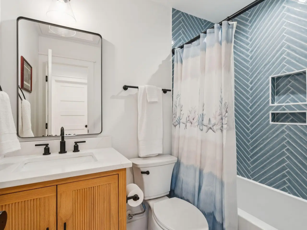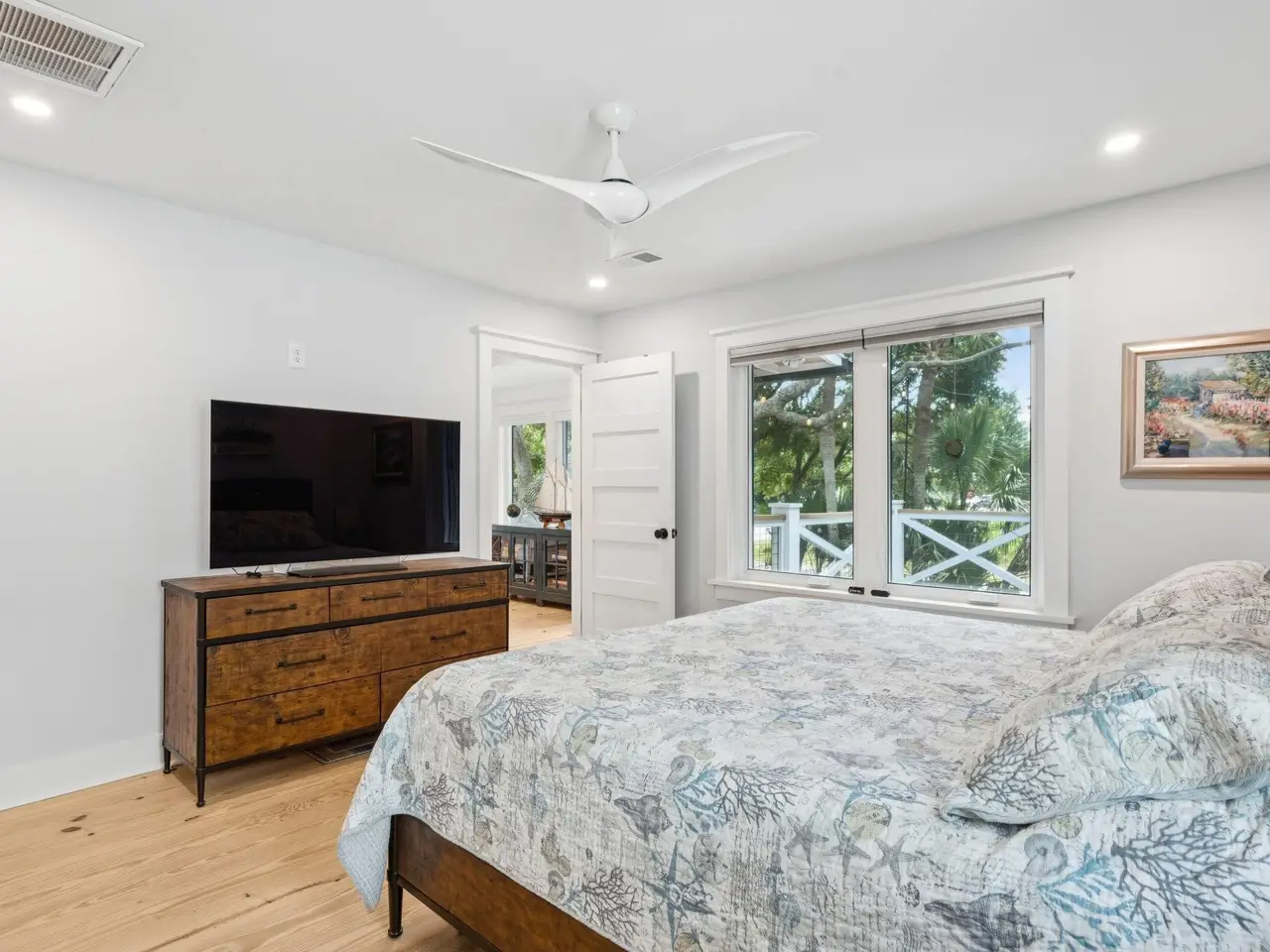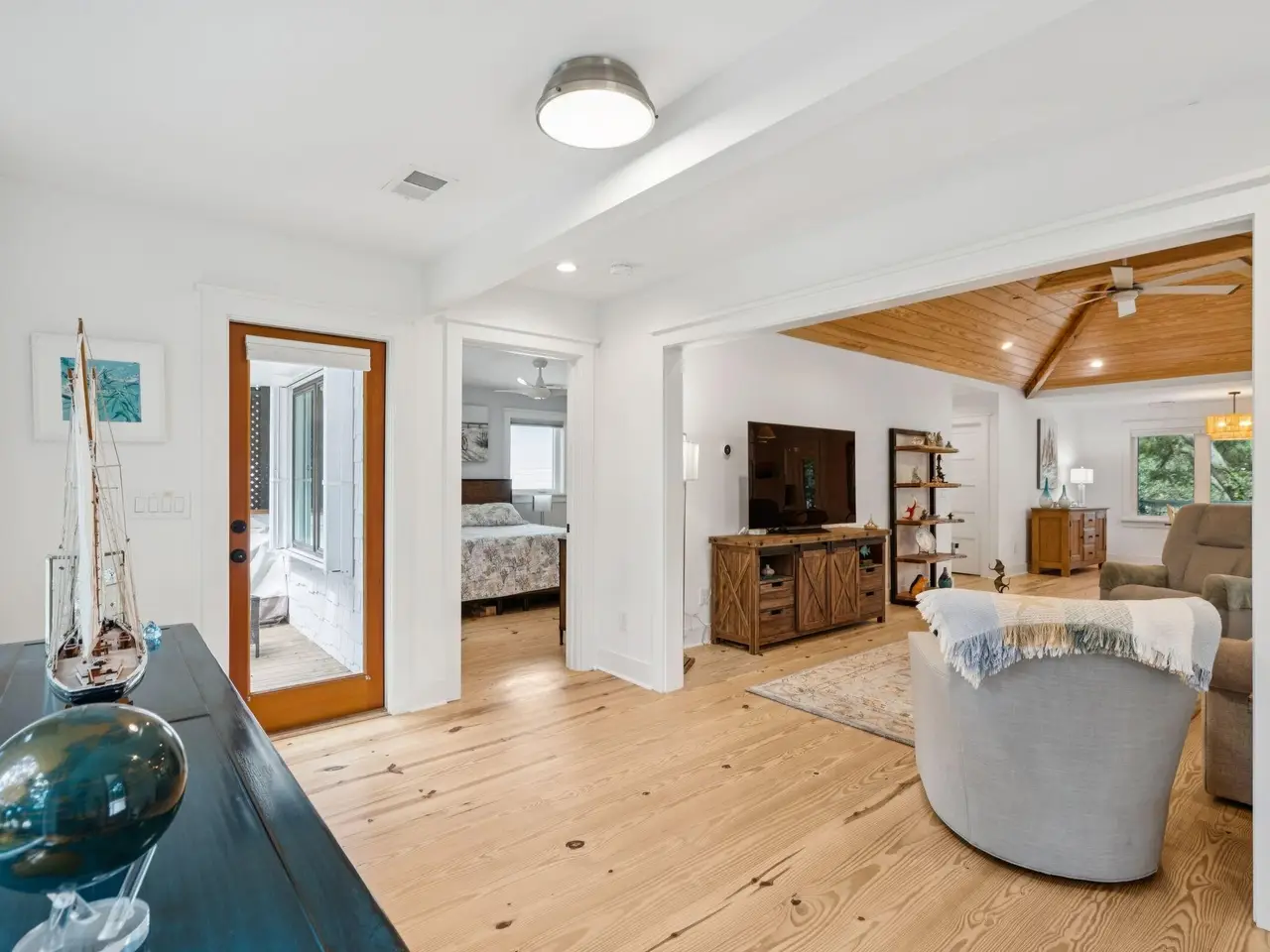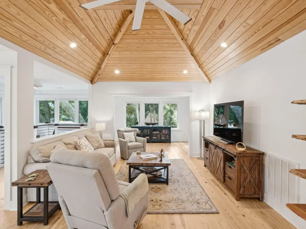Experience the best of coastal living in this stunning and beautifully renovated beach cottage on the desirable south end of Isle of Palms. Located just two blocks from the beach access, this home has been meticulously updated from the studs out, ensuring modern comfort and peace of mind.Inside, the light-filled interior is a testament to sophisticated design. The open-concept main floor features beautiful new pine flooring and a vaulted pine ceiling in the living area, creating an airy and inviting atmosphere. The gourmet kitchen is a chef's dream, with a large island, custom cabinetry, quartz countertops, a Brizo kitchen faucet, and top-of-the-line GE Cafe series appliances, including a convection double oven.Main level includes a spacious primary suite with an en-suite bathroom, a guest bedroom, a full bathroom, and a large pantry for beach life entertaining. A beautiful wood spiral staircase leads to the lower level, which offers a versatile second living or play area, two additional bedrooms, and a large full bathroom. Outdoor living is a breeze with a large, private porch and a private outdoor shower. This wonderful home provides ample parking with six off street spaces and a one car garage. The home is equipped with new cement plank siding, impact-rated windows and doors, and new plumbing, electrical, and HVAC systems. Additional features include hurricane shutters, gutter guards, climate controlled storage room and new window treatments by Seaside Window Treatment. Only a short walk to island shops and restaurants and only a short drive to Downtown Charleston. This is an incredible opportunity to experience true beach life in the Lowcountry.
