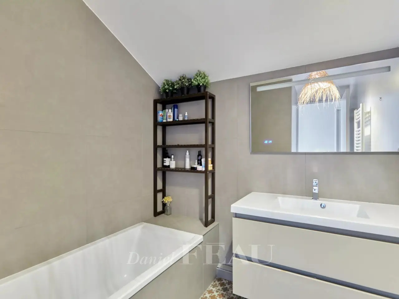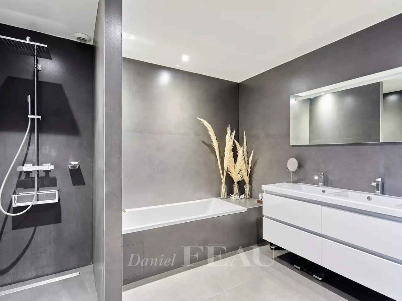 On Ile Saint Germain, linked to Boulogne by the Pont de Billancourt, this architect-designed property dating from 2015 benefits from a pontoon directly accessing the Seine. Offering 238 sqm of floor space and 211 sqm of living space as defined by the Carrez Law, it includes an entrance hall featuring an 8.80 metre high ceiling, and a south-facing near 70 sqm living/reception room with an equipped semi open-plan kitchen bathed in sunshine thanks to three patio windows opening onto 3 terraces accessing the pontoon. A master suite with a bathroom and dressing room, and a second bedroom with a shower room are upstairs. The top floor comprises three further bedrooms and a bathroom. On a basement with two parking spaces and storage space. A haven of peace on the south-western edge of the capital.