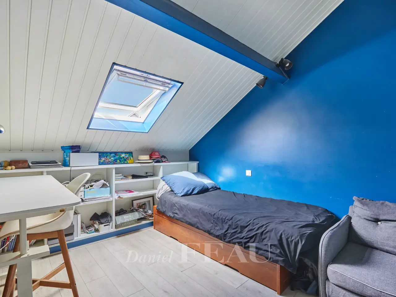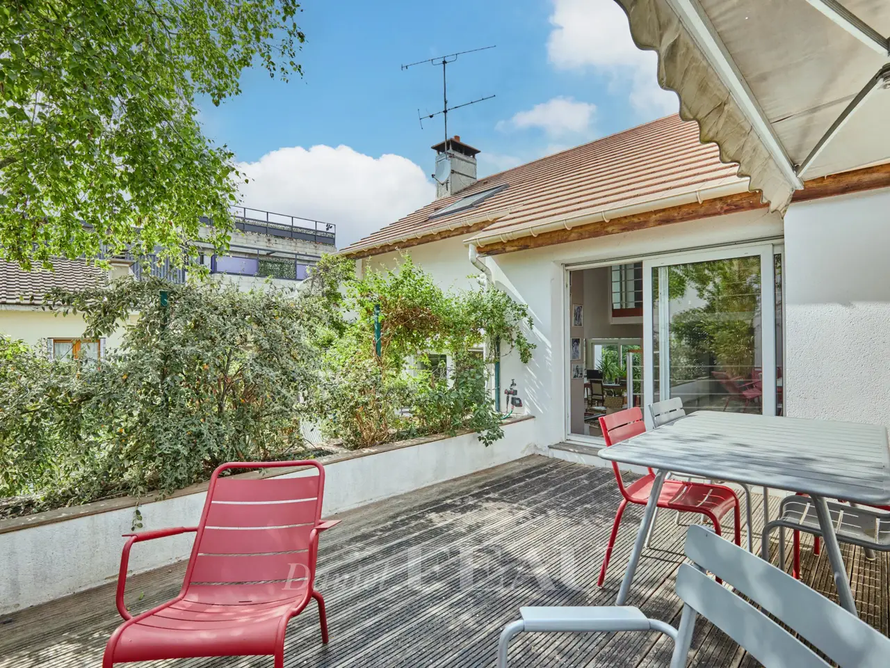 This peaceful property offering 314.62 sqm of floor space and 250 sqm of living space includes a ground-floor family room accessing a pretty garden hidden from view, and three bedrooms (two with shower rooms). Upstairs are a 70 sqm dual-aspect living/reception room with a fireplace opening onto a south-facing terrace and balcony, and an equipped kitchen with dining facilities. The top floor comprises three further bedrooms including a master suite with a shower room, a second shower room and a separate wc. Ample fitted storage space. With a double garage and a cellar. In a convenient location near the transport networks.