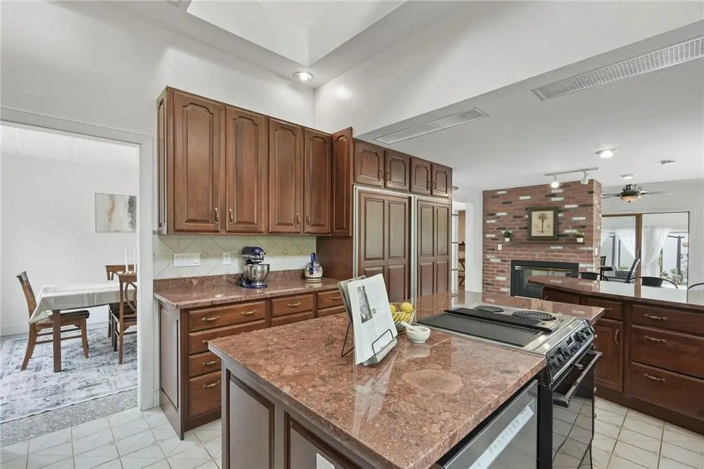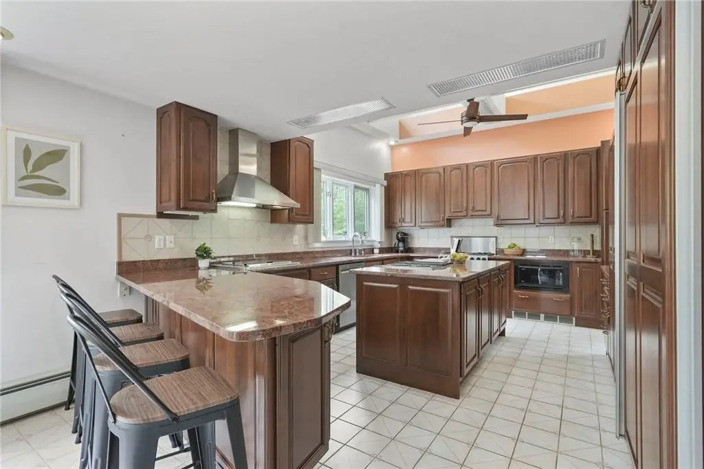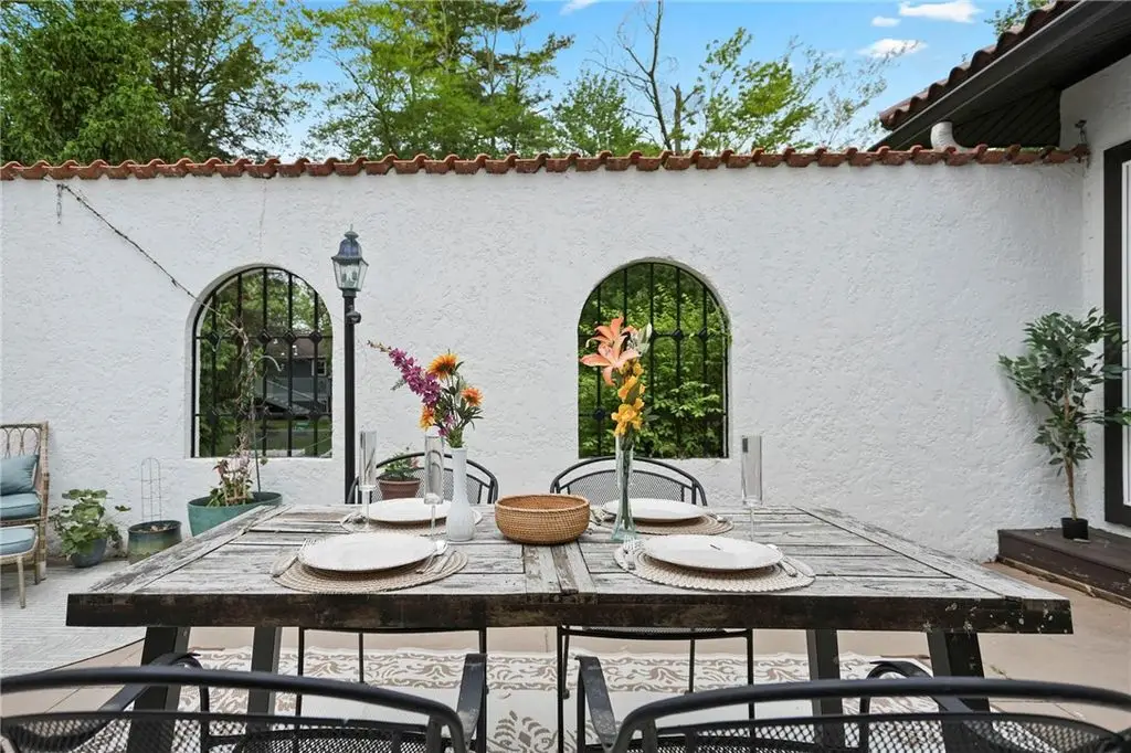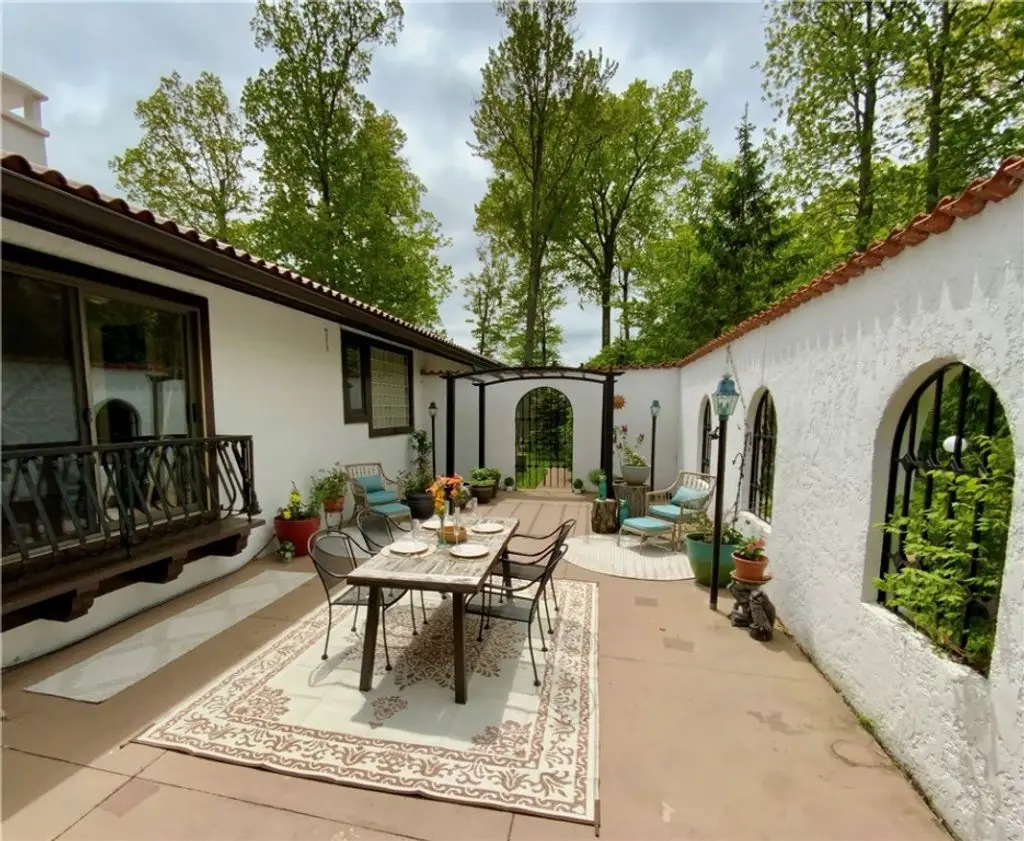 This Mediterranean Renaissance villa blends timeless design with modern comfort on a spacious corner lot in Ithaca's highly desirable Northeast neighborhood. With 5 bedrooms, 4 full baths, and over 5,000 sq ft of living space, the home offers both grandeur and livability across three thoughtfully designed levels. A grand foyer opens to the expansive main living room, where a marble-accented fireplace serves as a striking centerpiece. The cherry wood kitchen features granite countertops with bar seating, a side-by-side full-size Sub-Zero refrigerator and freezer, and a picture window overlooking the backyard. A two-sided gas fireplace adds warmth and ambiance between the kitchen and breakfast room, creating a welcoming space for everyday living. The three season sunroom opens to the private interior courtyard offering a versatile outdoor retreat ideal for raised garden beds, alfresco dinners, quiet reading, or even a play area. With direct access from the sunroom and kitchen, it's a space that easily supports both everyday living and weekend gatherings. The formal dining room is perfectly situated for entertaining, while a separate office provides a tucked-away space for focus or creativity. The main-level primary suite is a true retreat, with a spa-like bath, generous walk-in closet, and private balcony overlooking the courtyard. Upstairs, three additional bedrooms offer flexibility for guests, family, or creative use one with an en suite bath and two that share a well-appointed hall bath. The lower level features an art room, home gym, workshop, and extensive storage, offering space for hobbies, wellness, or expansion. With a stucco exterior, clay tile roof, custom ironwork, and a three-car garage, the home is rich in architectural character yet timeless in appeal. Rarely does a home blend scale, elegance, and comfort so effortlessly. Open House Saturday 5/31 11:00 - 1:00.