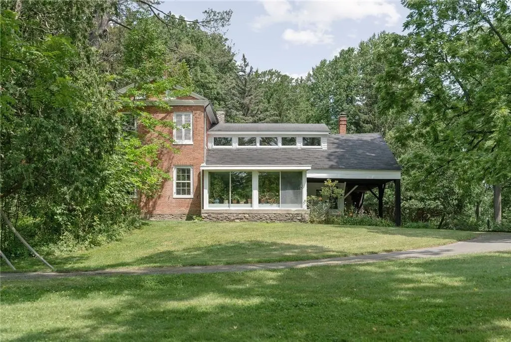 Built during the height of Napoleon's reign on 95 exquisite acres, core features of this classic Federal-style brick house have been meticulously maintained alongside modern day amenities. The property carries a genuine pedigree that pre-dates the incorporation of Tompkins County by nearly a decade and the founding of Cornell University by 56 years. It is now on the market for the first time since 1969. During the past two centuries, as Ithaca has grown up around it, the estate remains a private paradise. At Honna Lee, named six decades ago, fireflies dance magically during summer nights, wild turkeys roam the grounds and hawks and owls still claim the sky. The house is set back from the road by a long driveway and surrounded by majestic oak, walnut, arborvitae and yew, befitting a botanical garden, on a rolling 5-acre lawn, complete with a heated in-ground pool and a wildlife pond, to bask in your private solitude or to entertain. The estate extends 1/2 mile along a residential road within the Town of Ithaca, and is comprised of mixed old-growth hardwoods, spruce, and 36 acres of pesticide free farmland (since 2016). The estate is zoned for potential development of up to 12 parcels of single or multi-family homes and lies within the town's targeted conservation easement area for potential compensation of substantial value. Inside you will find hardwood, exposed beams and brick walls. Step back in time in the stone-floored den, or survey your grounds from the four-season, south-facing sunroom. The spacious primary bedroom with vaulted ceilings adds the perfect contemporary touch. While Honna Lee is secluded, it is within 5 miles to top-tier amenities: groceries, bakeries, restaurants, libraries, museums, cinemas, and nightlife. Upper Treman State Park, with its awe-inspiring waterfall and invigorating hiking trails, is just 4 minutes away. The estate is also near Watkins Glen and both the Cayuga and Seneca Lake Wine Trails, home to award-winning wineries, breweries, and distilleries. Honna Lee offers four-season beauty, a rich heritage, development or conservation potential, and an unmatched combination of privacy and proximity in the heart of the Finger Lakes.