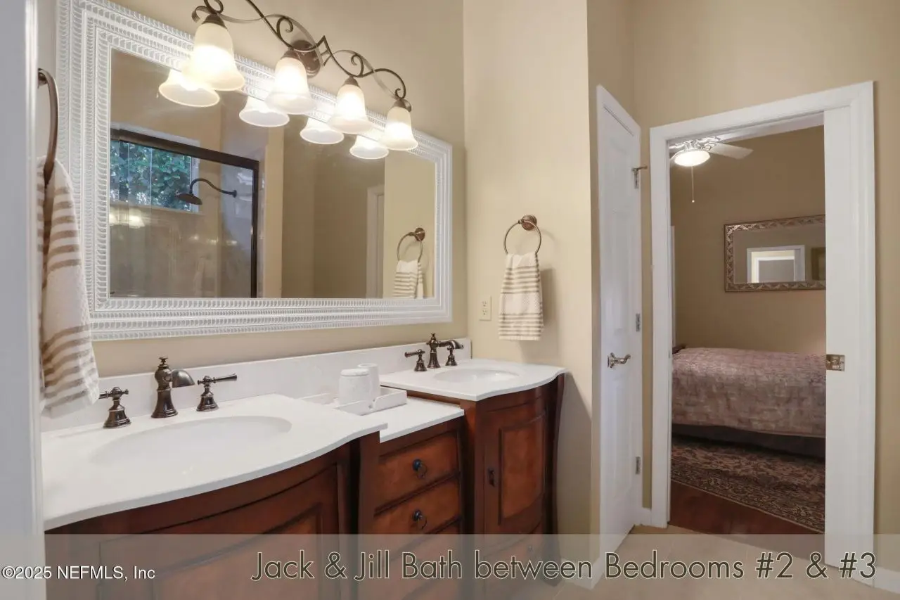 Jack and Jill bath with double sinks for guest bedrooms