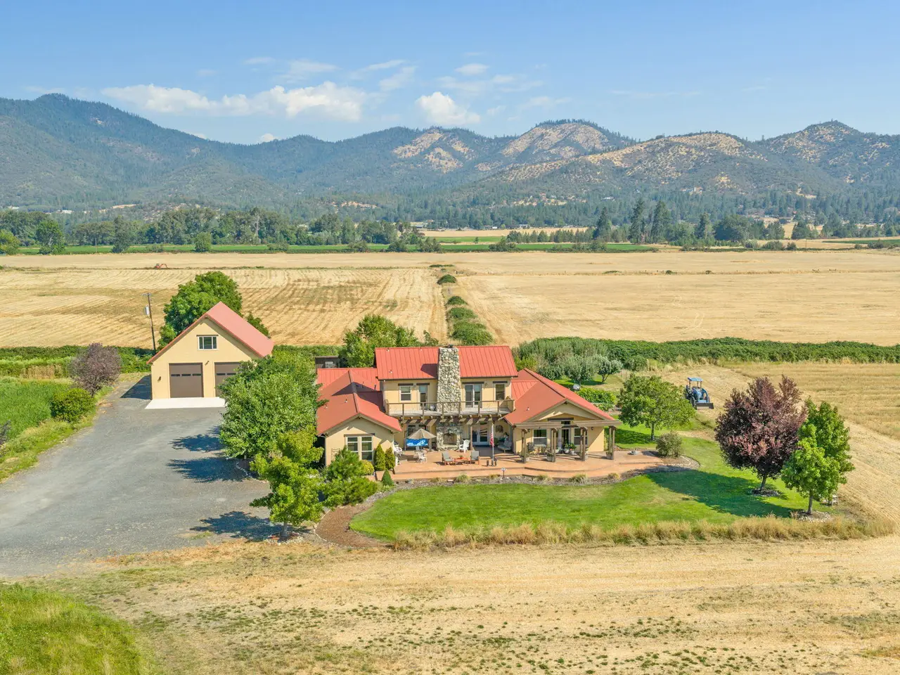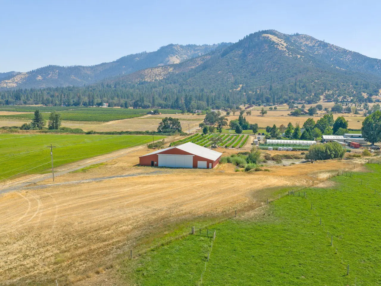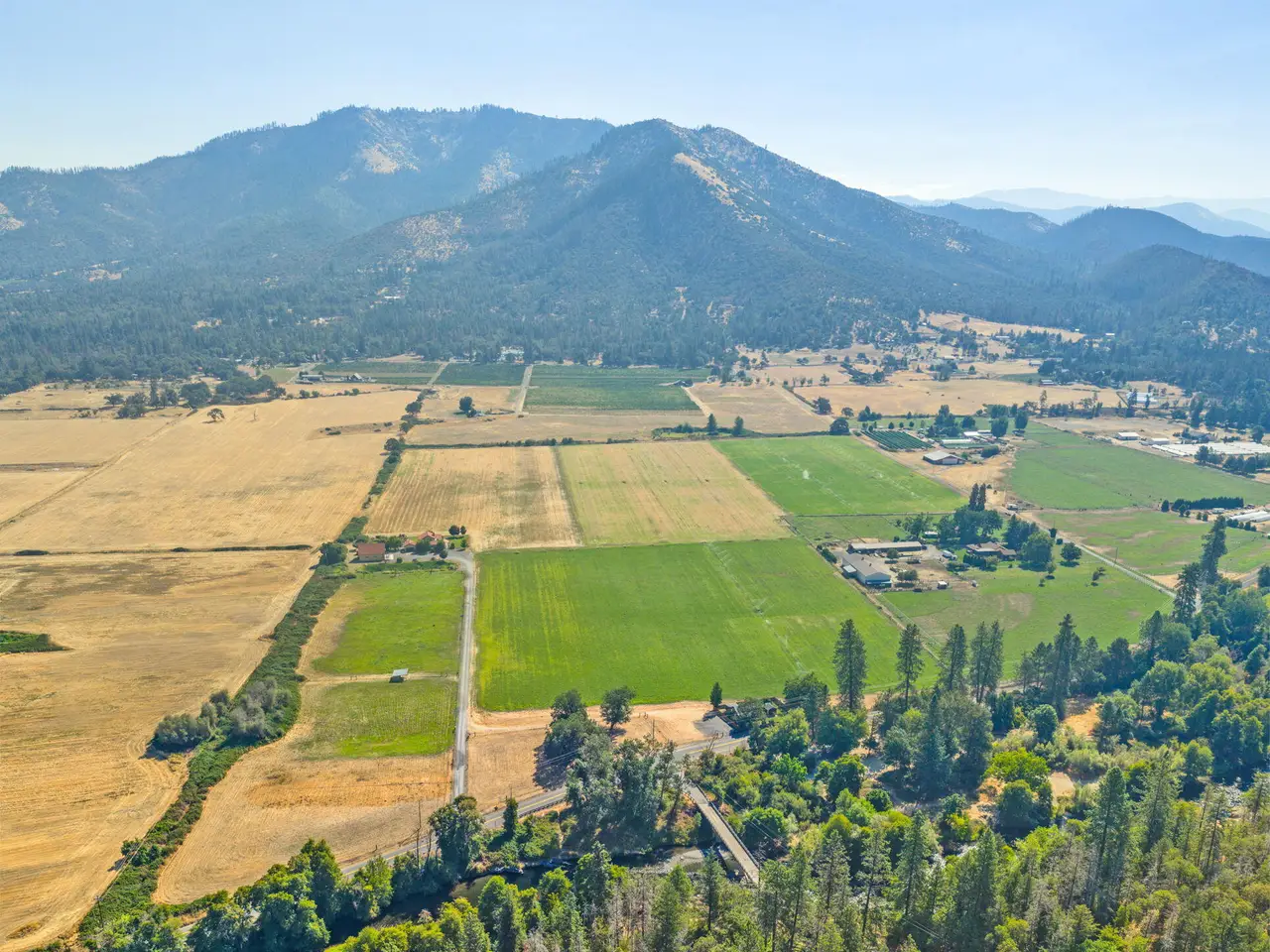Beautiful unique opportunity in Applegate Valley with 2 homes just under 80 acres with Applegate River irrigation rights. Fenced and crossed fenced. Lg shop, RV garage with unfinished studio above. 75X100 pole barn and year round pond. Spanish custom home stucco exterior w/gourmet kitchen w/granite counters & tile floors, lg ceilings & windows. Lg great rm w/floor to ceiling stone fireplace. French doors to lg stamped patios. 2nd home is cute cabin w/lg covered porch, 2 bdrms, 1 bath w/wood pellet stove. This premier ranch is one of the most beautiful properties located across from Cantrell Buckley Park entrance w/gorgeous views of the surrounding Mts and Southern Oregon wineries.