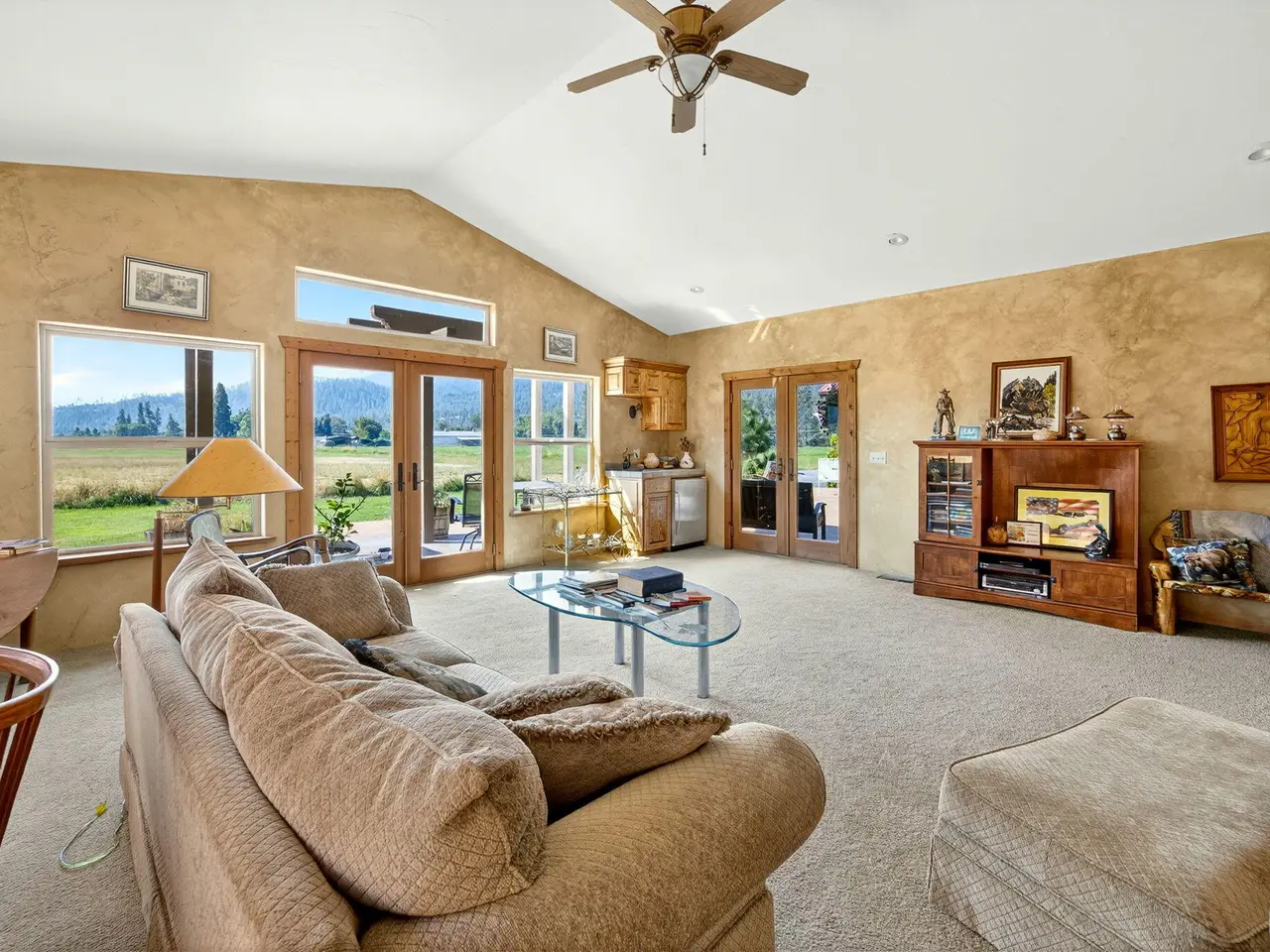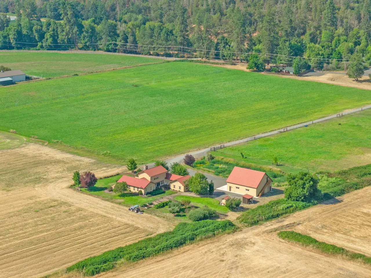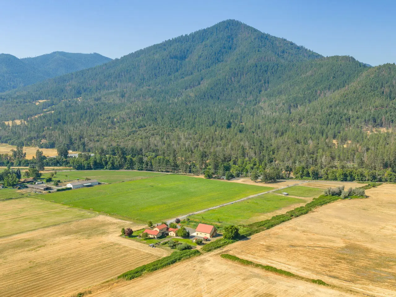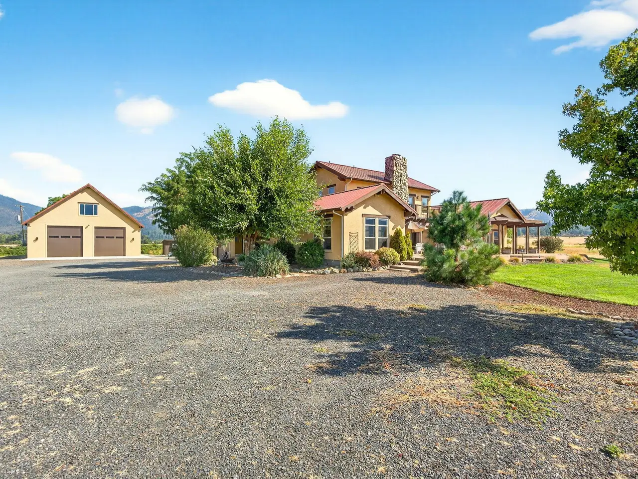 Beautiful unique opportunity in Applegate Valley with 2 homes just under 80 acres with Applegate River irrigation rights. Fenced and crossed fenced. Lg shop, RV garage with unfinished studio above. 75X100 pole barn and year round pond. Spanish custom home stucco exterior w/gourmet kitchen w/granite counters & tile floors, lg ceilings & windows. Lg great rm w/floor to ceiling stone fireplace. French doors to lg stamped patios. 2nd home is cute cabin w/lg covered porch, 2 bdrms, 1 bath w/wood pellet stove. This premier ranch is one of the most beautiful properties located across from Cantrell Buckley Park entrance w/gorgeous views of the surrounding Mts and Southern Oregon wineries.