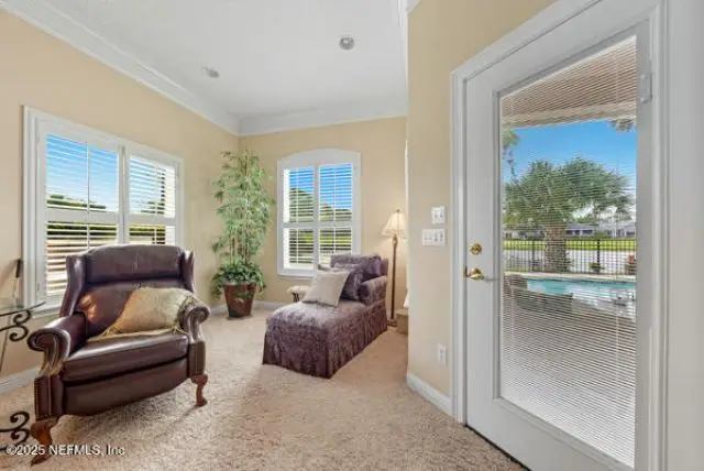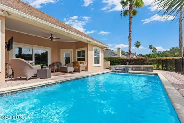 Welcome to your dream home! This exceptional luxury home combines timeless elegance with modern sophistication, comfort and style. The property is perfectly situated to capture the fabulous views of the sparkling pool, lake and golf course. From the moment you step in through the beautiful entry, you are welcomed with expansive windows, tray ceilings, gorgeous flooring and a light filled layout that seemlessly blends the indoor and outdoor living spaces. The well appointed kitchen is a chef's delight! Gorgeous off white cabinetry with premium finishes that provide style and function. Escape to your grand master suite that also provides beautiful, serene views and privacy. Enjoy entertaining in this thoughtfully designed home. The side entry 3 car garage provides ample storage and space. This home offers luxury, location and the well sought after Florida lifestyle. New Kitchen 2020, New Windows 2023, Refinished Pool 2025, New Exterior Paint 2025, New Renovated Pool Bath 2025.