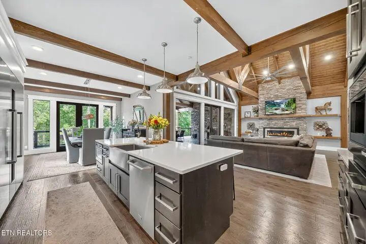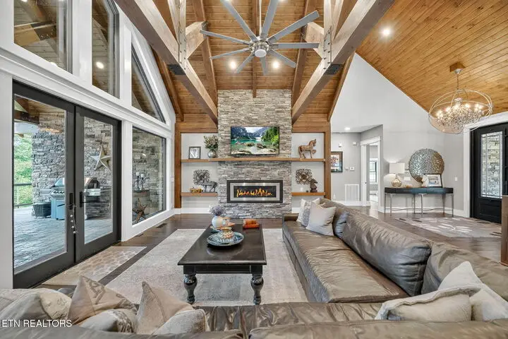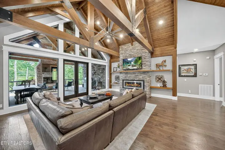 **The Pinnacle of Equestrian Luxury** Welcome to the crown jewel of Rock House Ranches - where world class equestrian living meets timeless mountain luxury. This 4-bedroom, 3.5-bath estate spans over 6,397 sq ft of refined craftsmanship, highlighted by 8' solid hand-scraped Amish hardwood flooring, Shaw designer carpet, and travertine stone finishes throughout. As you walk through this grand estate you have a beautiful stone gas fireplace in the great room. The vaulted ceilings create a living experience that's both grand and grounded. Step outside and picture yourself sitting next to another massive stone wood burning fireplace on the back patio. As you continue to explore the 26 acres you'll find a private equestrian setup complete with a massive barn, workshop/living quarters, fenced pastures, and riding arena. The barn currently has 4 stalls, with the availability for 7. The professional landscaping, fire pit, and private horse trails make outdoor living just as impressive as what's inside This is more than a home, it's a legacy.