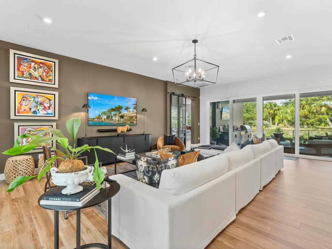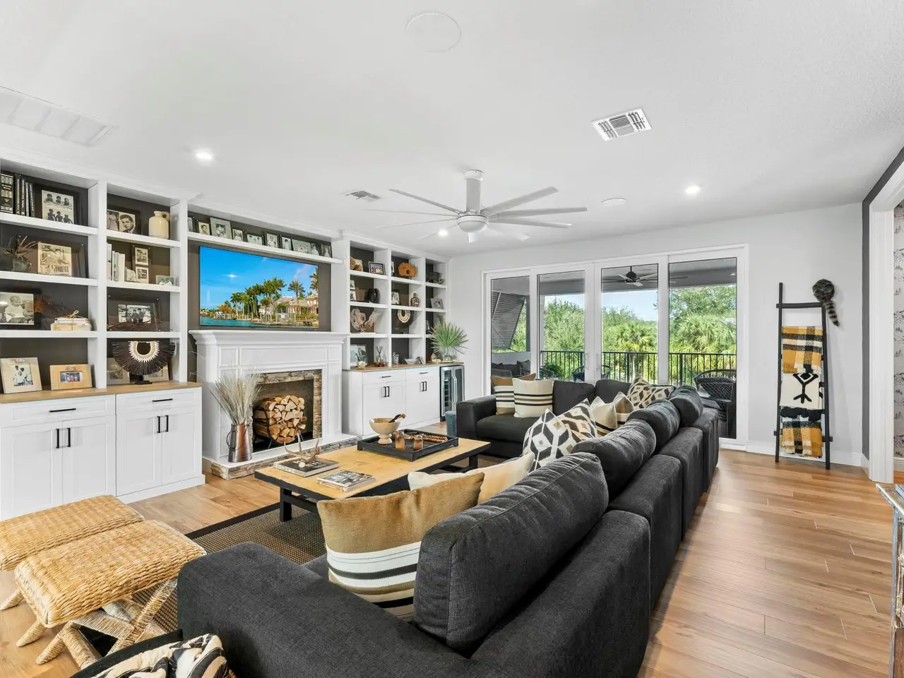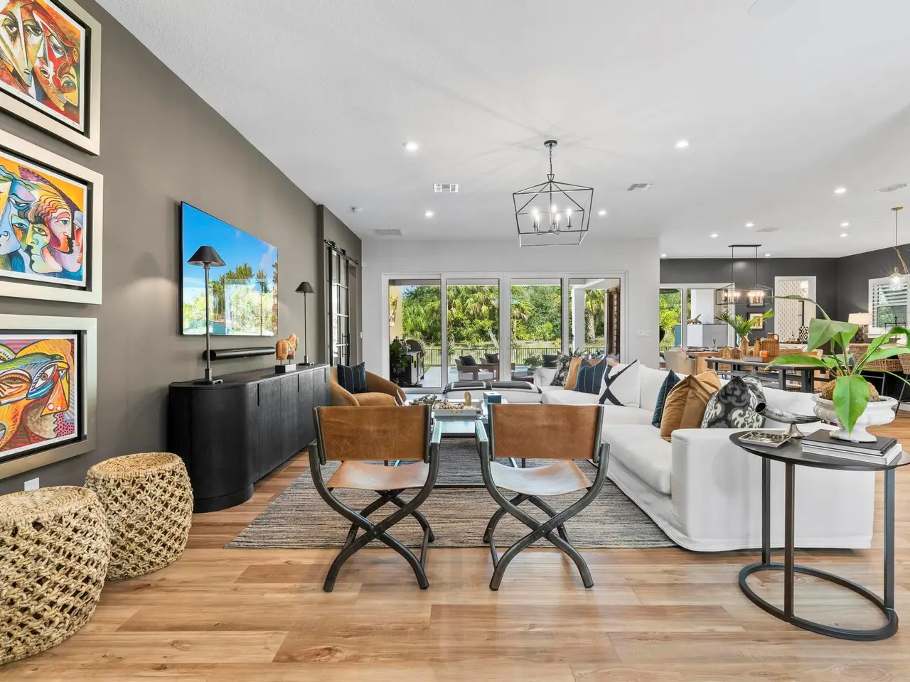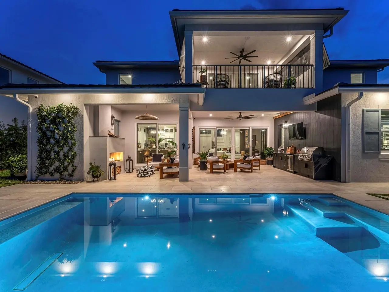 Exclusive Langford Landing Enclave! 40-FOOT BOAT SLIP! Perfectly oriented with preserve vista, impossibly private in feel. Soaring 2-story foyer entry. Open concept, with distinct spaces, including living, dining, and dedicated office. Designer custom kitchen, with large island, and butler pantry. Downstairs Main Suite with custom His/Her closets, pass-thru shower, & spa tub. Upstairs, 4 guest beds with en suite baths, living area, and wide balcony. Full impact glass, Sonos system, integrated security, up/down laundry, 24kw generator/500 gal tank. 2024 new saltwater pool, outdoor living room with gas fireplace, modern outdoor kitchen. True three-car garage for enthusiasts, with custom cabinetry and rod storage. Residence has private 40-FOOT boat slip & 24k lift at on-property marina.