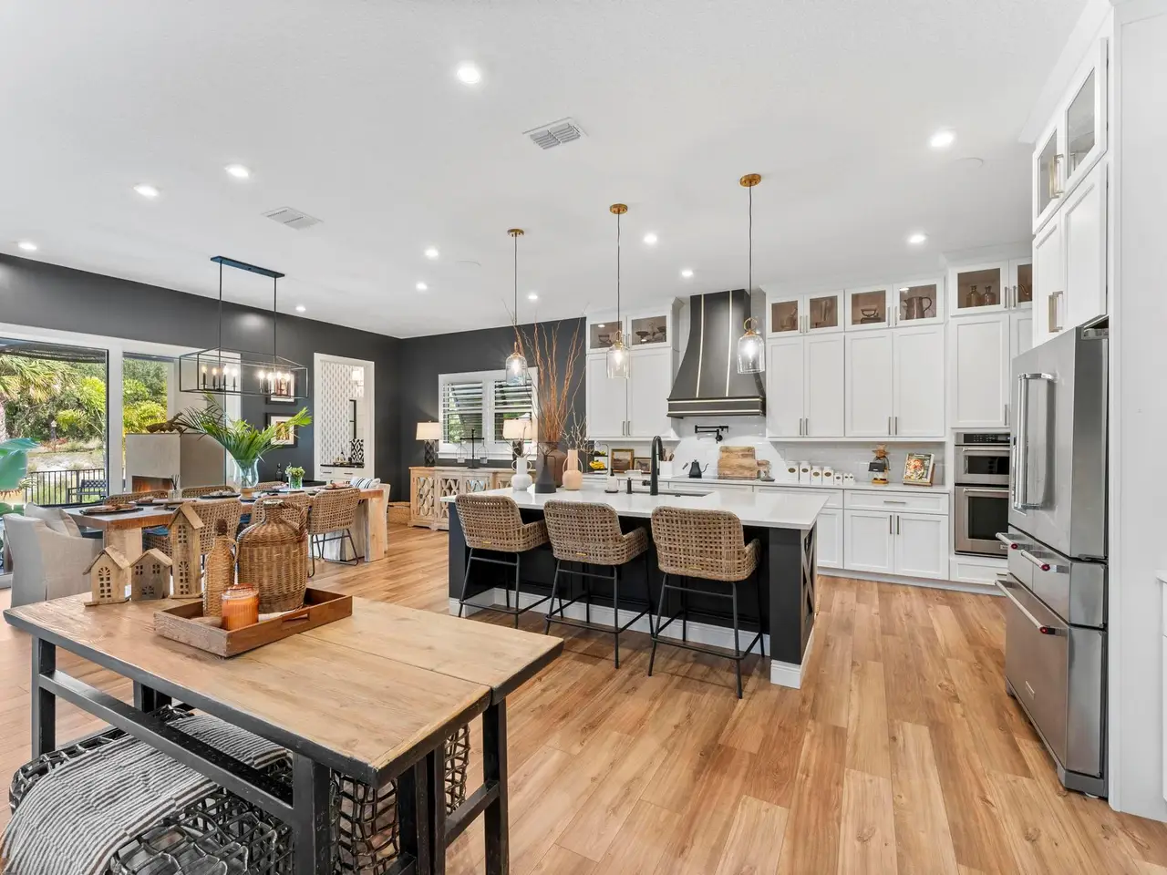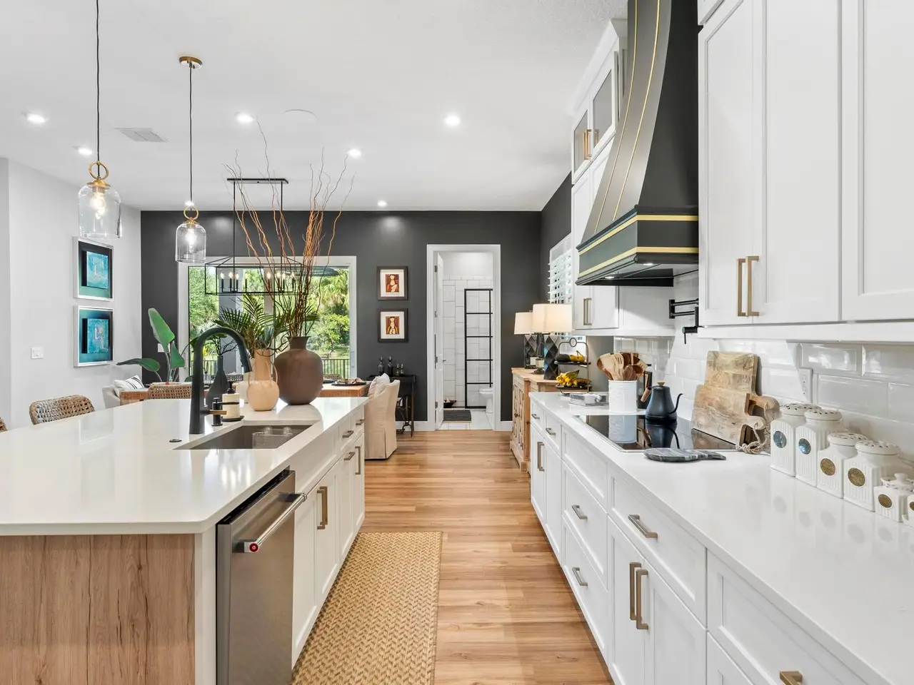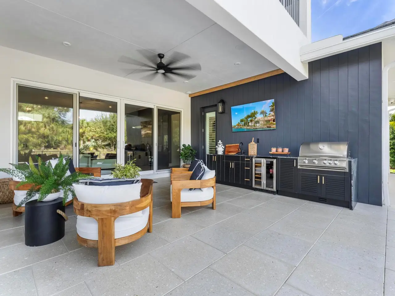 Exclusive Langford Landing Enclave! 40-FOOT BOAT SLIP! Perfectly oriented with preserve vista, impossibly private in feel. Soaring 2-story foyer entry. Open concept, with distinct spaces, including living, dining, and dedicated office. Designer custom kitchen, with large island, and butler pantry. Downstairs Main Suite with custom His/Her closets, pass-thru shower, & spa tub. Upstairs, 4 guest beds with en suite baths, living area, and wide balcony. Full impact glass, Sonos system, integrated security, up/down laundry, 24kw generator/500 gal tank. 2024 new saltwater pool, outdoor living room with gas fireplace, modern outdoor kitchen. True three-car garage for enthusiasts, with custom cabinetry and rod storage. Residence has private 40-FOOT boat slip & 24k lift at on-property marina.