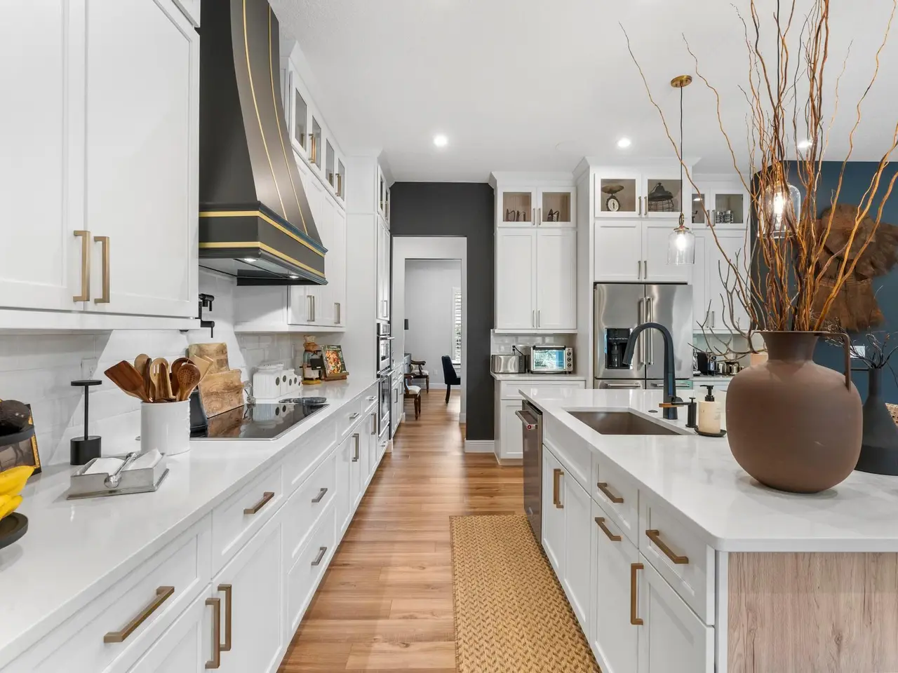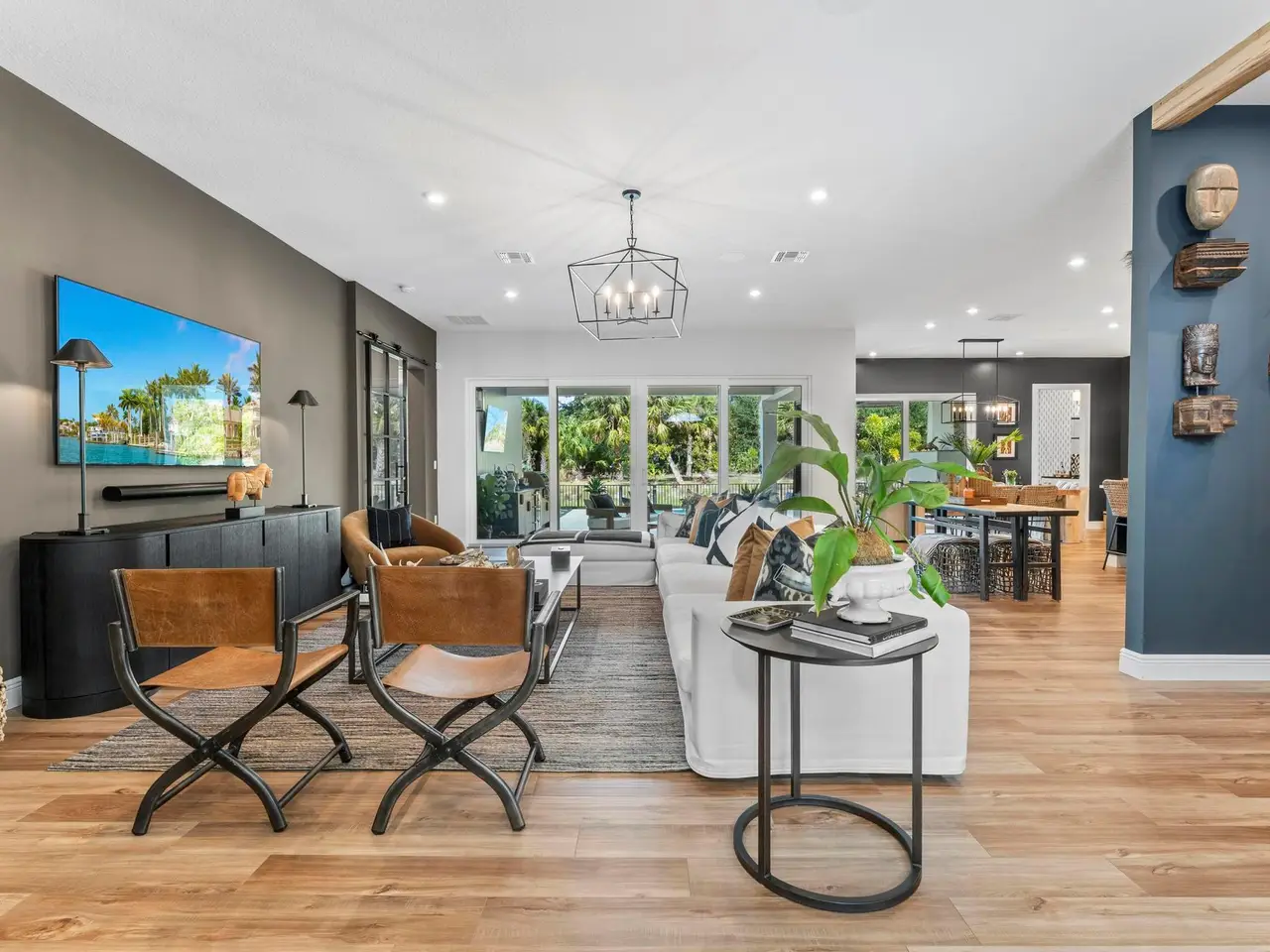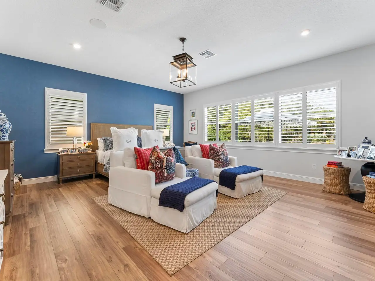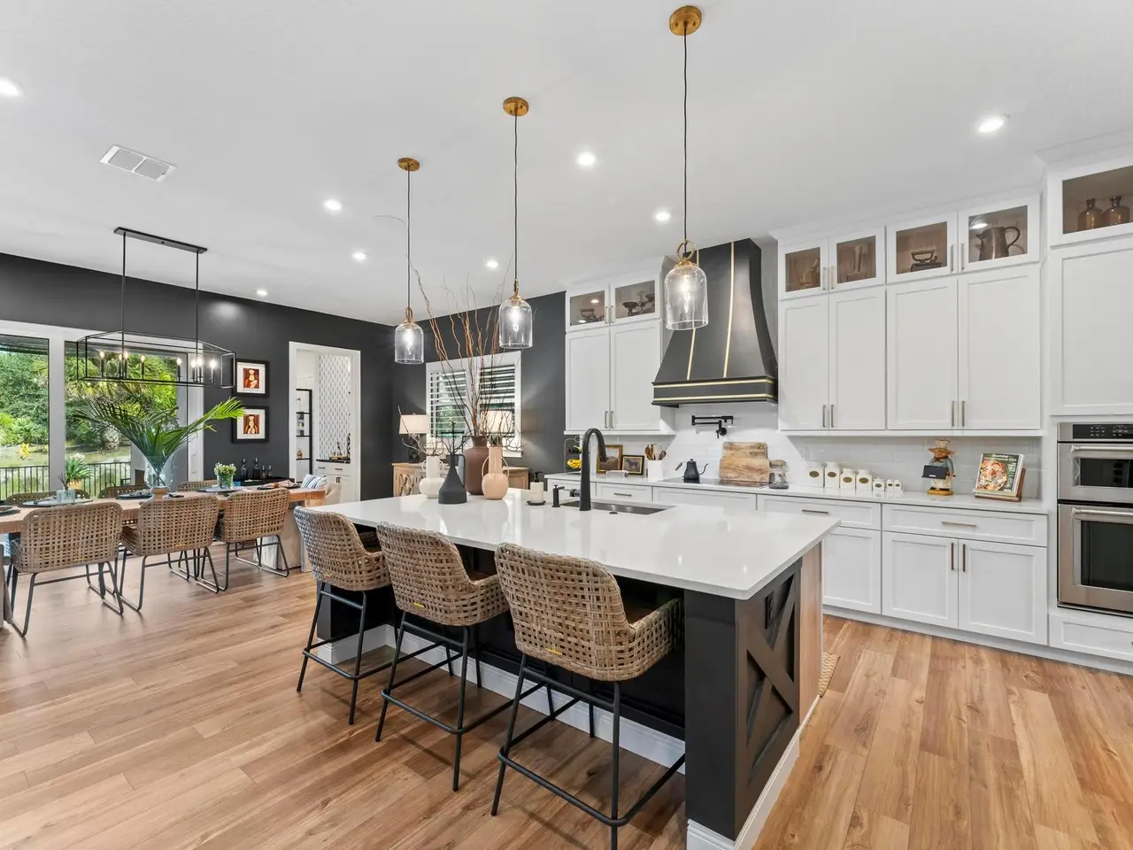 Exclusive Langford Landing Enclave! 40-FOOT BOAT SLIP! Perfectly oriented with preserve vista, impossibly private in feel. Soaring 2-story foyer entry. Open concept, with distinct spaces, including living, dining, and dedicated office. Designer custom kitchen, with large island, and butler pantry. Downstairs Main Suite with custom His/Her closets, pass-thru shower, & spa tub. Upstairs, 4 guest beds with en suite baths, living area, and wide balcony. Full impact glass, Sonos system, integrated security, up/down laundry, 24kw generator/500 gal tank. 2024 new saltwater pool, outdoor living room with gas fireplace, modern outdoor kitchen. True three-car garage for enthusiasts, with custom cabinetry and rod storage. Residence has private 40-FOOT boat slip & 24k lift at on-property marina.