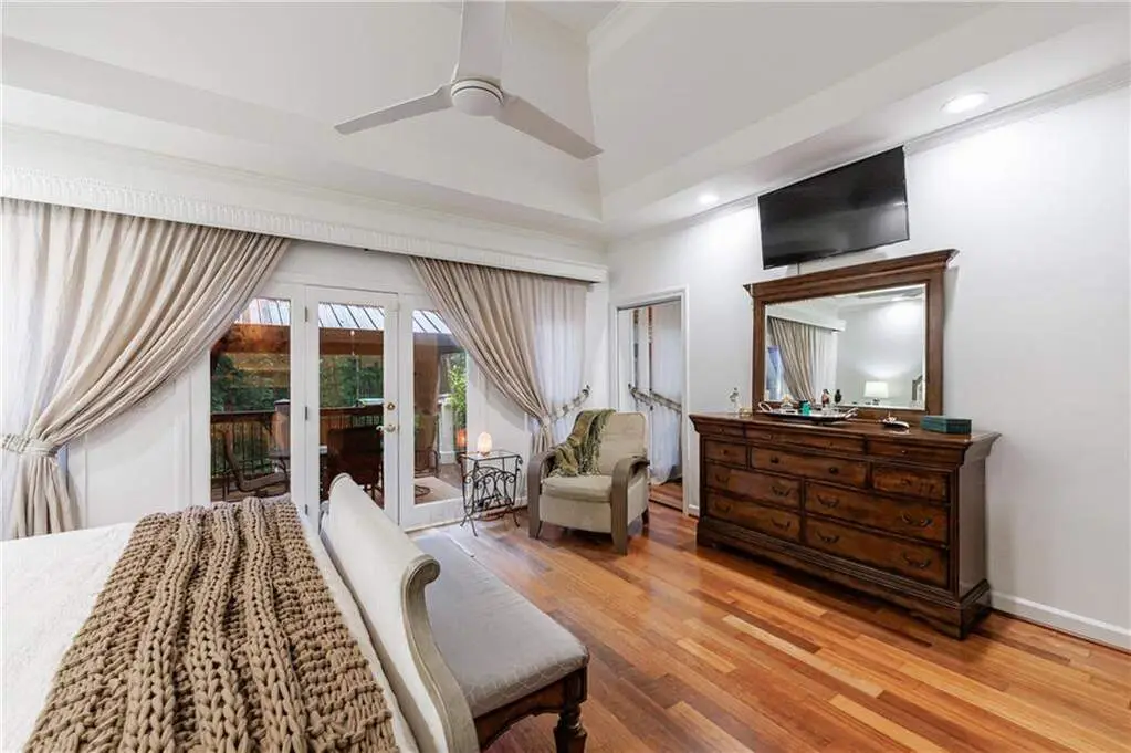 Welcome to this elegant hard-coat stucco Estate home, ideally situated on a serene and quiet cul-de-sac in the prestigious COUNTRY CLUB OF THE SOUTH. A charming exterior with stone accents and a classic beveled glass front door set the tone for the warmth and sophistication that awaits inside. Step into the grand two-story foyer, where natural light and timeless elegance greet you. The formal dining room, adorned with a bay window, provides the perfect setting for both intimate dinners and large-scale entertaining. The spacious Great Room is the heart of the home, featuring vaulted ceilings, a wall of windows, a fireplace with floor to ceiling stack stone, and French doors leading to the main-level porch. Designed for everyday living and seamless entertaining, the open-concept kitchen flows into the breakfast area and Great Room, with easy access to the screened porch-an ideal retreat for morning coffee or evening relaxation. The main-level primary suite is a true sanctuary, complete with a cozy sitting area, two-sided fireplace, and private access to the porch. Upstairs, you'll find three generously sized bedrooms: one with an en-suite bath and two sharing a well-appointed adjoining bath, all with abundant closet space. The fully finished terrace level is an entertainer's dream, offering a second kitchen, large family room, office, yoga/exercise room, guest bedroom, and full bath. Step outside to the covered terrace-level porch, featuring a custom stay-dry gutter system-perfect for enjoying the outdoors in any weather. This move-in ready home offers luxury, comfort, and lifestyle-all within one of Atlanta's most sought-after gated communities. Residents enjoy resort-style living with 24/7 manned security, a Jack Nicklaus-designed golf course, clubhouse, swim and tennis facilities, and a welcoming neighborhood atmosphere.