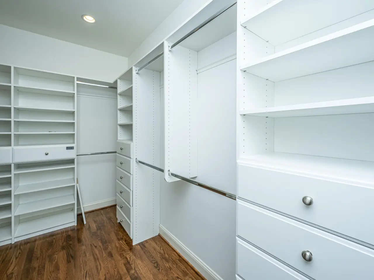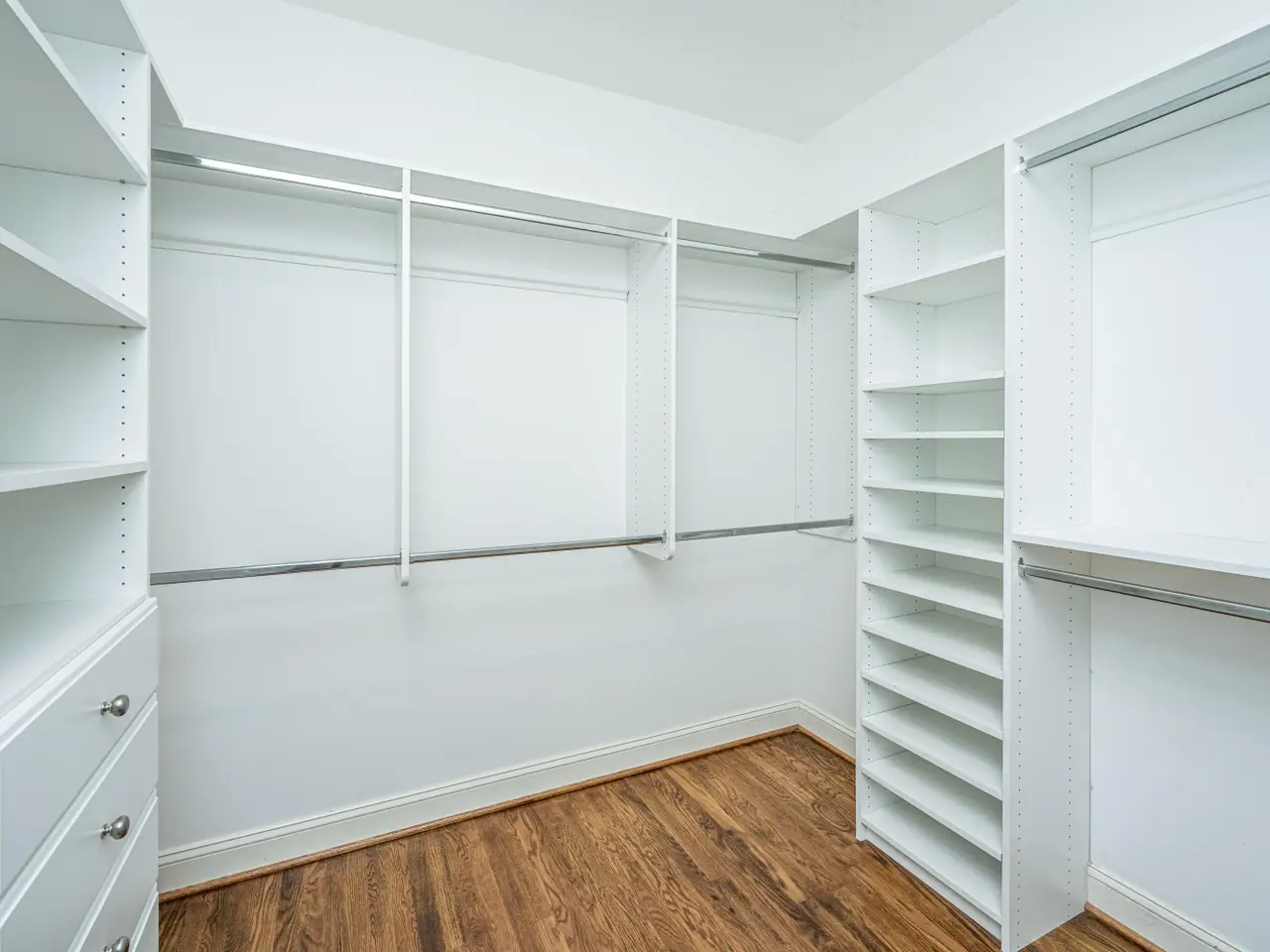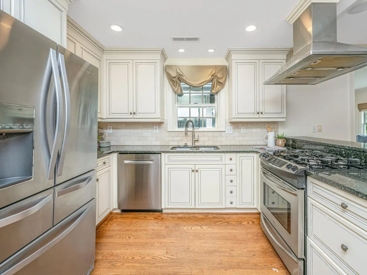 Ceiling to floor cabinetry and stainless steel appliances in kitchen