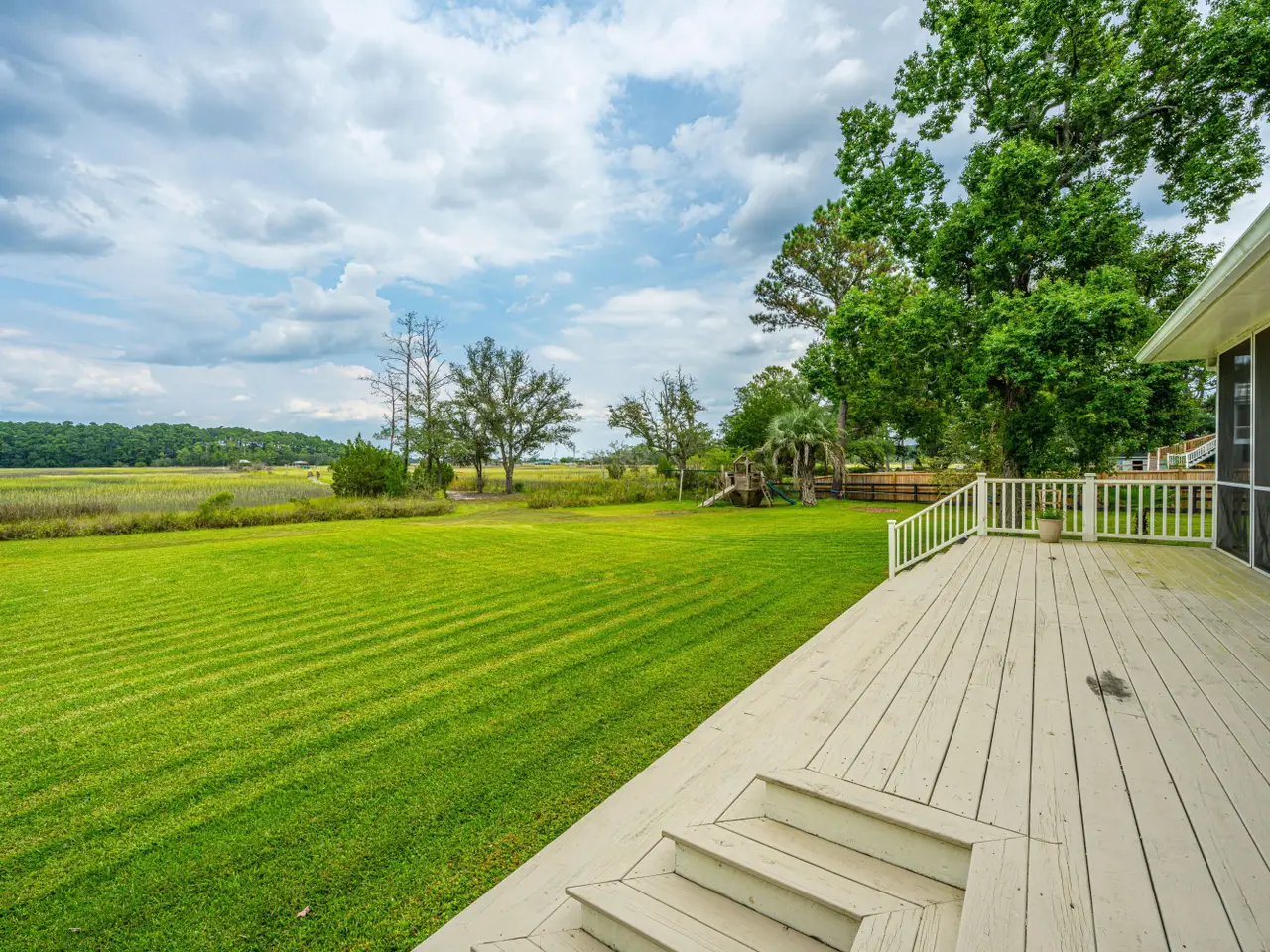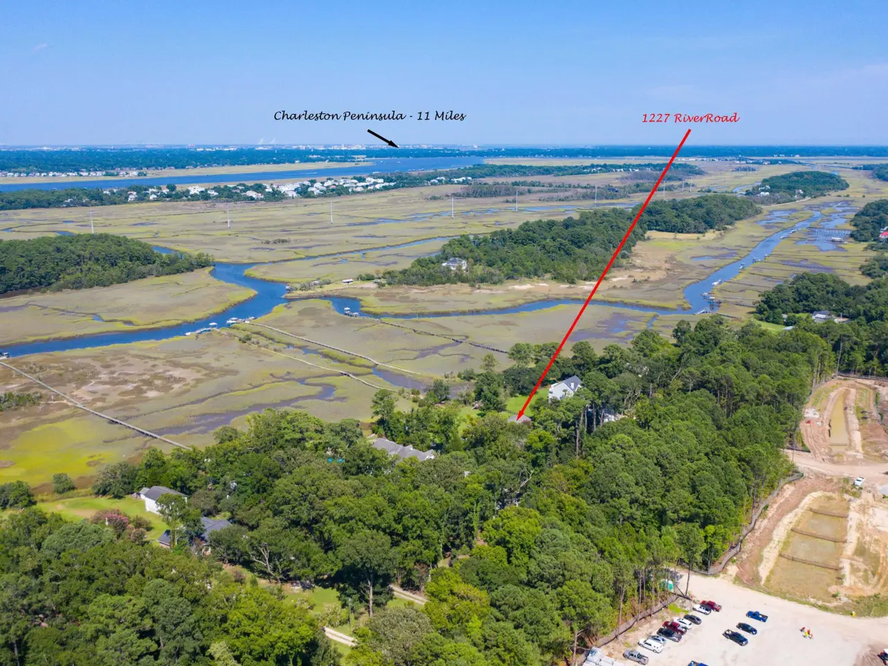 Incredible opportunity to own a deep water dock on Penny Creek with floater and jet dock on nearly five acres (1.1 acres of high land) just five miles to downtown Charleston! 1227 River Road is over 3,000 square feet with four beds, three baths, and beautiful water views including views of the Ravenel Bridge! Situated on one level, this sprawling ranch has hardwood floors throughout with the exception of tile bathroom flooring. The kitchen includes ceiling to floor cabinetry, stainless steel appliances, a gas range, and bar seating. The open great room makes way to a large screened porch and out to an expansive back deck overlooking the creek. The master suite boasts impressive water views and is situated in the back of the home with two sets of French doors leading to private outdoor living.