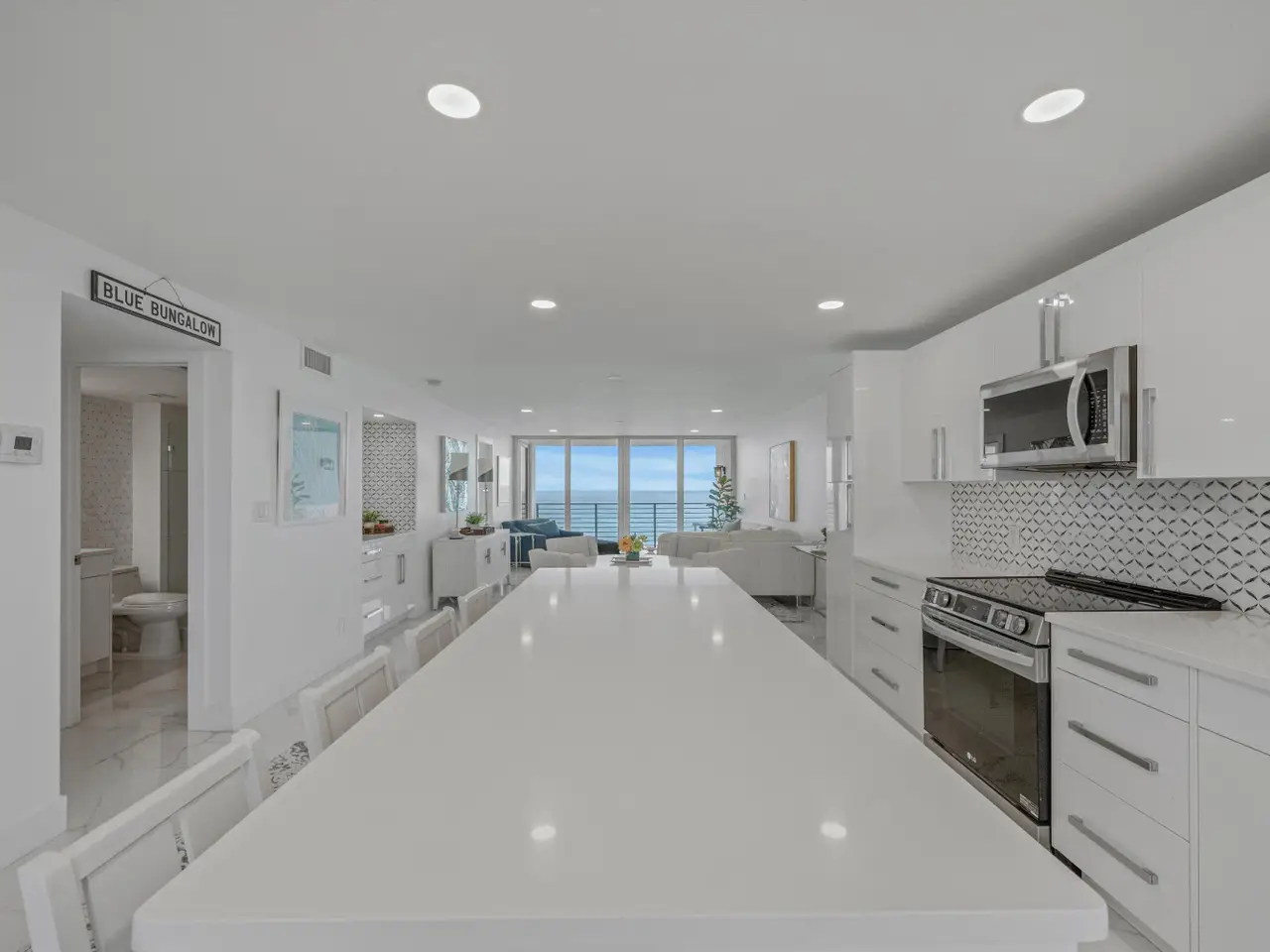 This beautifully renovated oceanfront condo at The Surf offers sweeping, unobstructed views of the Atlantic and an easy, turnkey lifestyle in the heart of Juno Beach. Offered with the option to be fully furnished, this unit has been thoughtfully redesigned with a clean, modern coastal feel. The open kitchen features sleek quartz countertops, European-style cabinetry, and a stylish backsplash that flows into the spacious living and dining areas--framed by floor-to-ceiling impact windows showcasing the ocean. Porcelain tile floors run throughout, and the primary suite offers its own incredible views along with a spa-like bathroom and custom walk-in closet. SEE MORE...