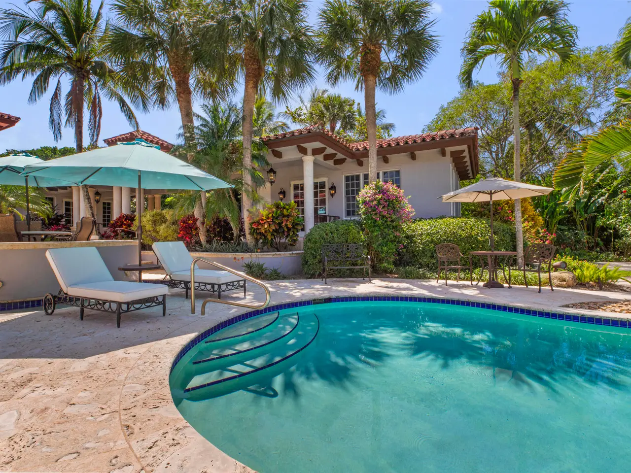 ''Mermaids Landing'' is a rare oceanfront jewel which has been meticulously maintained since a complete renovation in 2012. Located on a lushly landscaped 2.45 acres with two oceanfront beach cottages on 165' of private shoreline this home is a stunner. 5B/7.2B; propane fireplace, custom wood paneling and trim throughout, heated resort style pool with fountain, gigantic pool house with chef's kitchen, second floor primary bedroom suite with commanding ocean and pool views, twin balconies and elevator. Wet bar, wine cooler, formal dining room, impact windows and doors, electric black out shades. Two guest houses on an elevated dune with kitchen, bath, fireplace and covered teak porch to enjoy the ocean breezes. An incredible opportunity for the best Jupiter Island has to offer.