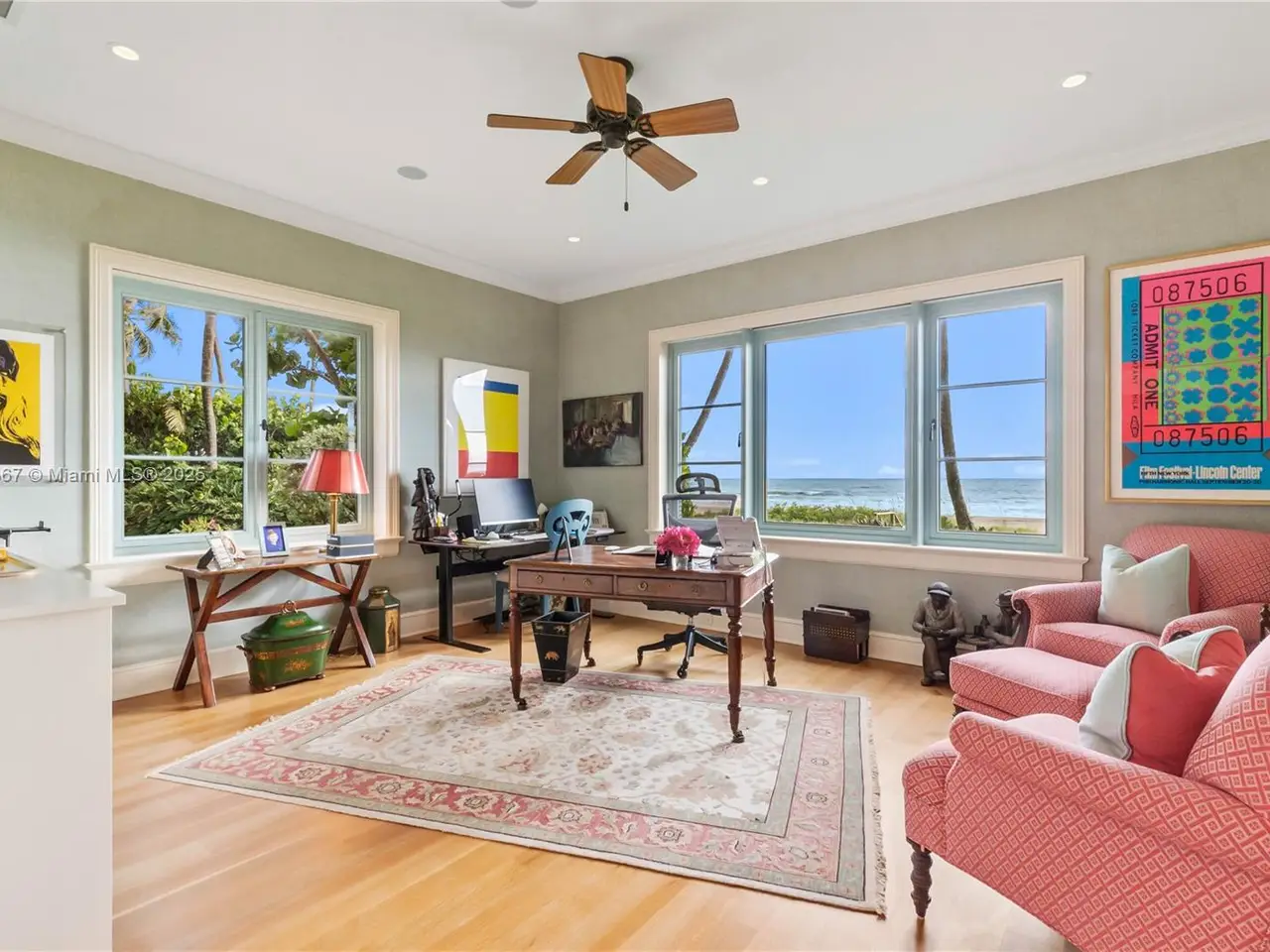 A rare opportunity to own a legacy estate on prestigious Jupiter Island, where timeless Mediterranean architecture meets impeccable craftsmanship. Set on an expansive oceanfront lot, this residence has been thoughtfully designed to balance privacy, comfort, and sophistication, offering both intimate family living and grand-scale entertaining. The main house features a luxurious primary suite complete with dual full bathrooms and a private office, creating a retreat that blends comfort and elegance. Downstairs offers an en-suite guest bedroom and an additional office, along with two half bathrooms for convenience. The lower level includes a rare basement, a versatile and highly desirable feature in South Florida.