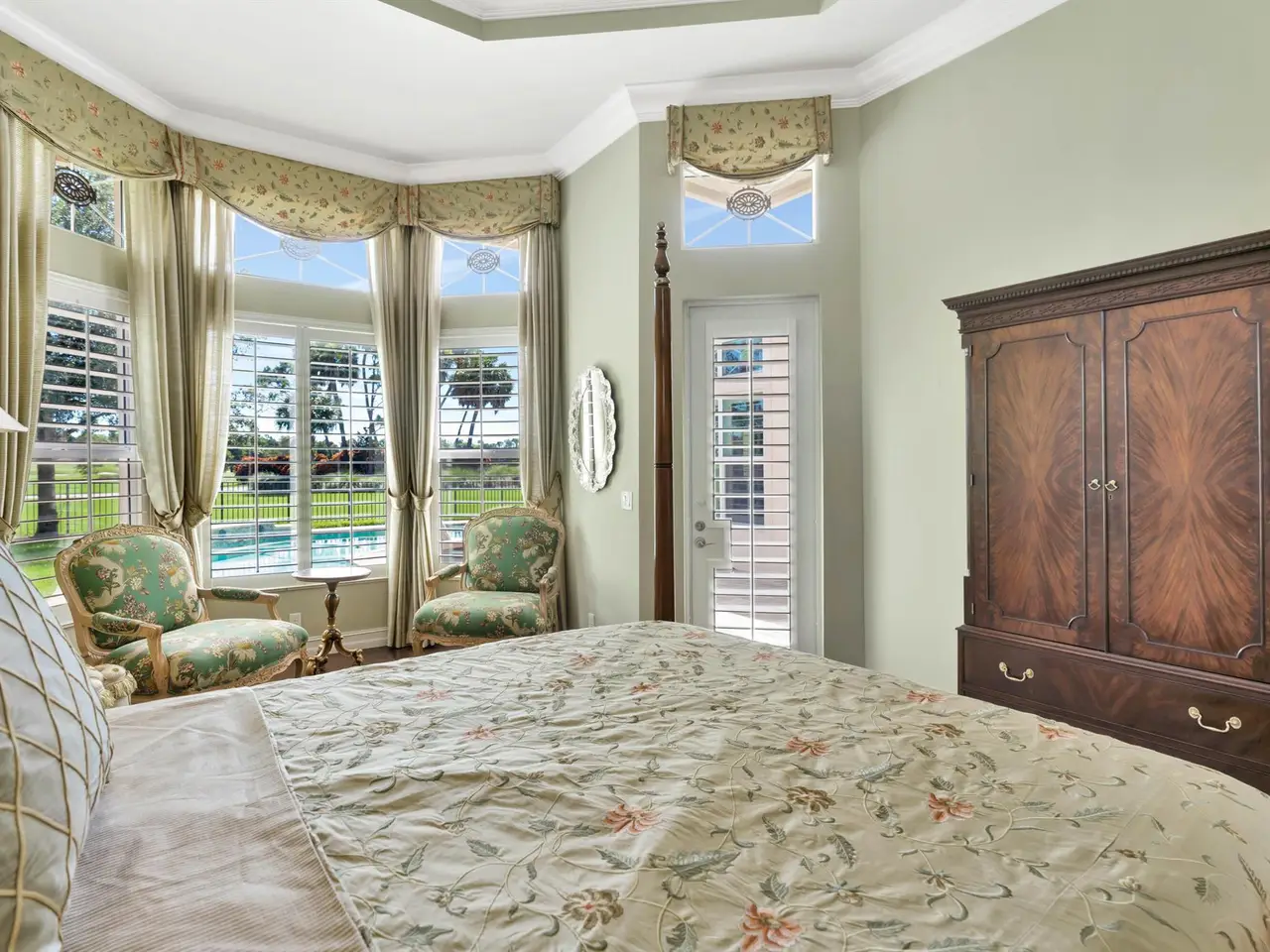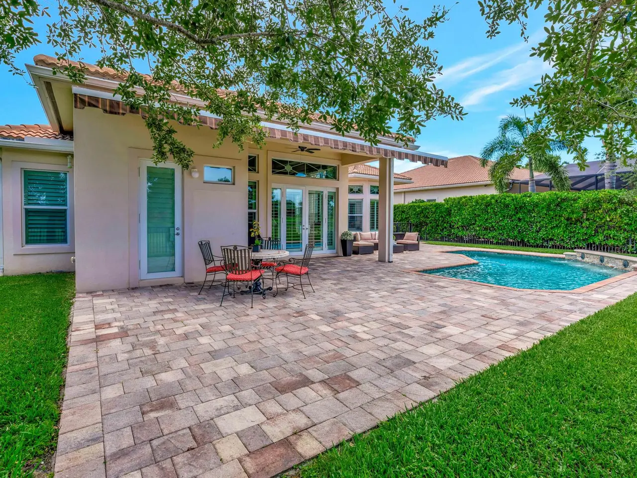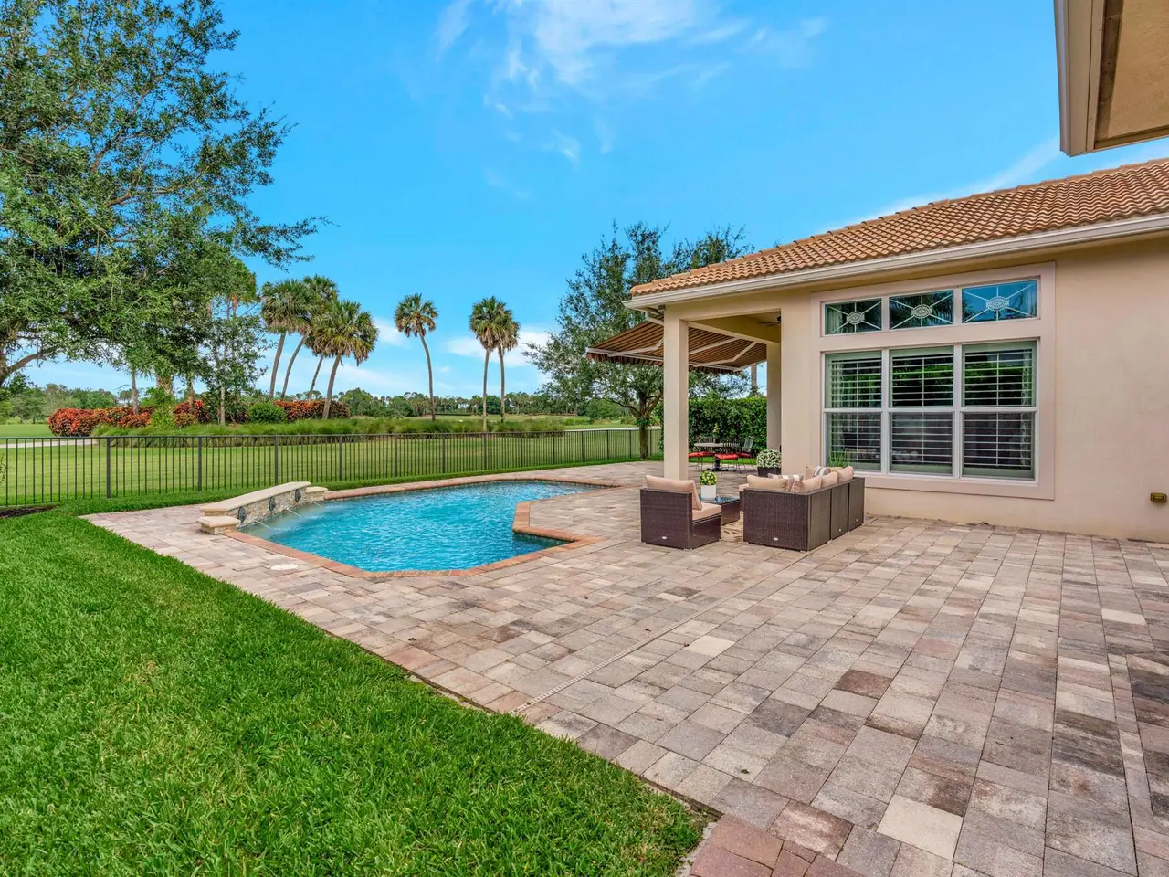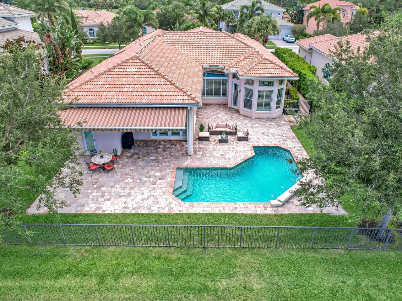 Welcome home to this immaculate 4-bedroom, 4 Bath, one-story expanded Castania model in the prestigious Jupiter Country Club. Enjoy maintenance-free living in a well-planned layout featuring an expanded family room, refined finishes with 5-inch crown molding in every room. The kitchen is ideal for both quiet mornings & entertaining, with a gas cooktop, top-tier appliances, and beautifully glazed cabinetry. Premium upgrades enhance style and function in every space. The expanded 25-ft master suite offers a true retreat with space to relax and recharge. Step outside to your private tropical paradise--complete with a large patio, covered lanai, retractable awning, & beautiful pool overlooking the 6th hole. This home offers the ultimate in comfort and elegance within a resort style community.