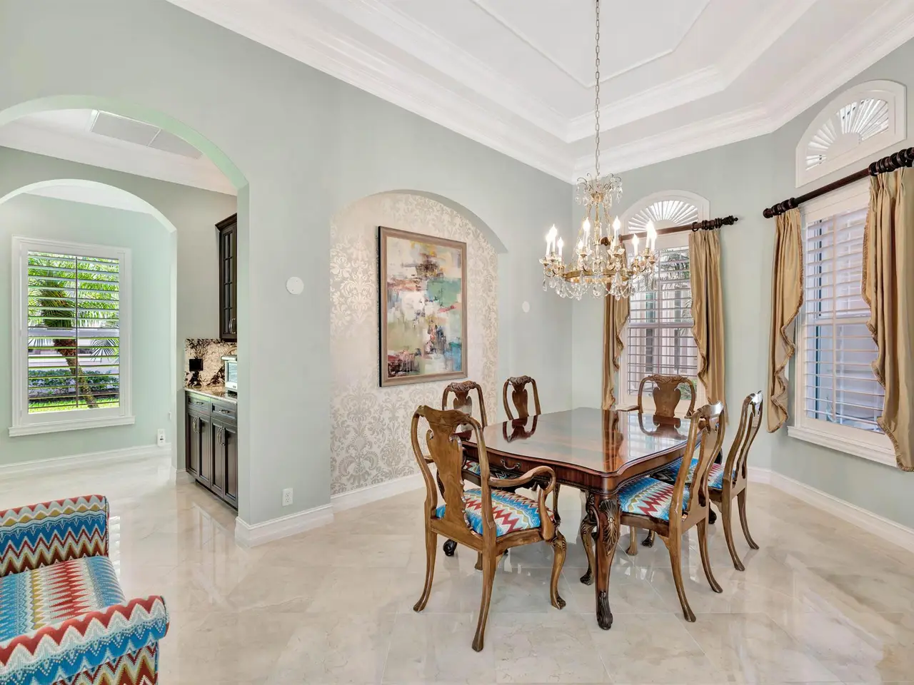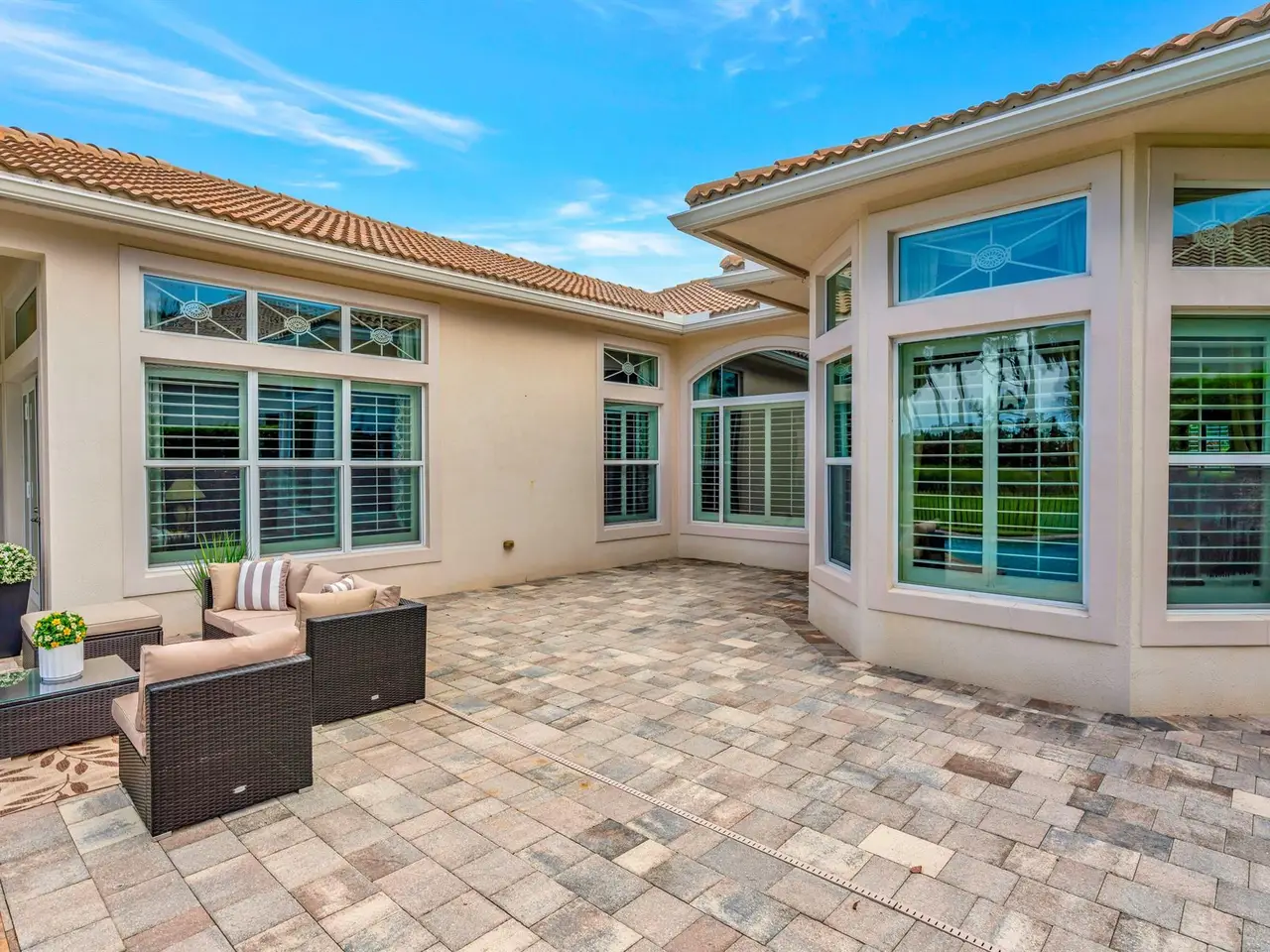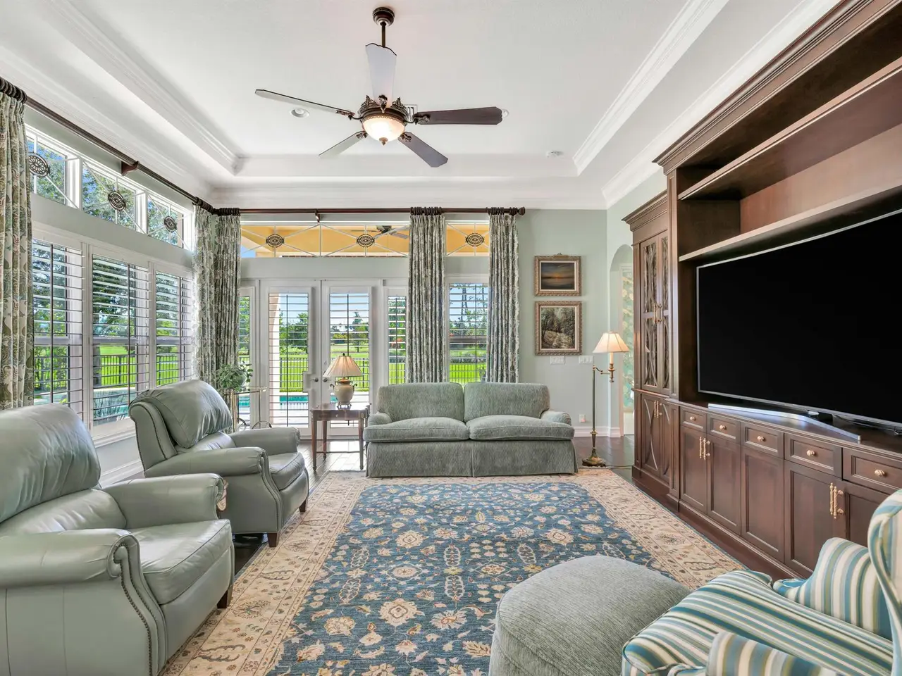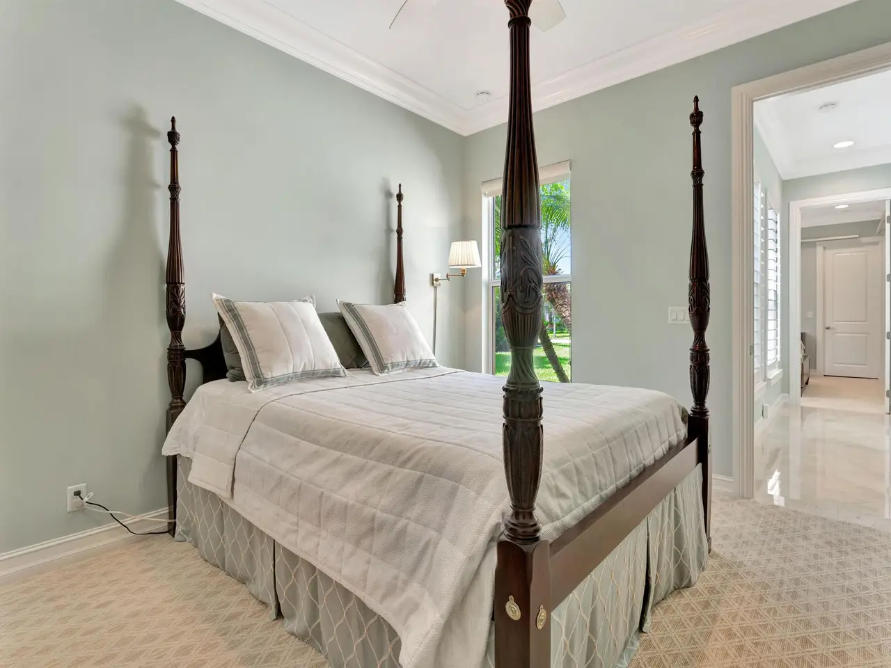 Welcome home to this immaculate 4-bedroom, 4 Bath, one-story expanded Castania model in the prestigious Jupiter Country Club. Enjoy maintenance-free living in a well-planned layout featuring an expanded family room, refined finishes with 5-inch crown molding in every room. The kitchen is ideal for both quiet mornings & entertaining, with a gas cooktop, top-tier appliances, and beautifully glazed cabinetry. Premium upgrades enhance style and function in every space. The expanded 25-ft master suite offers a true retreat with space to relax and recharge. Step outside to your private tropical paradise--complete with a large patio, covered lanai, retractable awning, & beautiful pool overlooking the 6th hole. This home offers the ultimate in comfort and elegance within a resort style community.