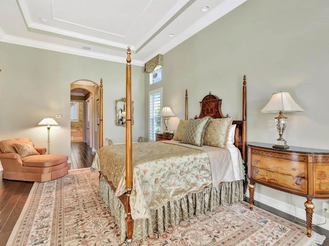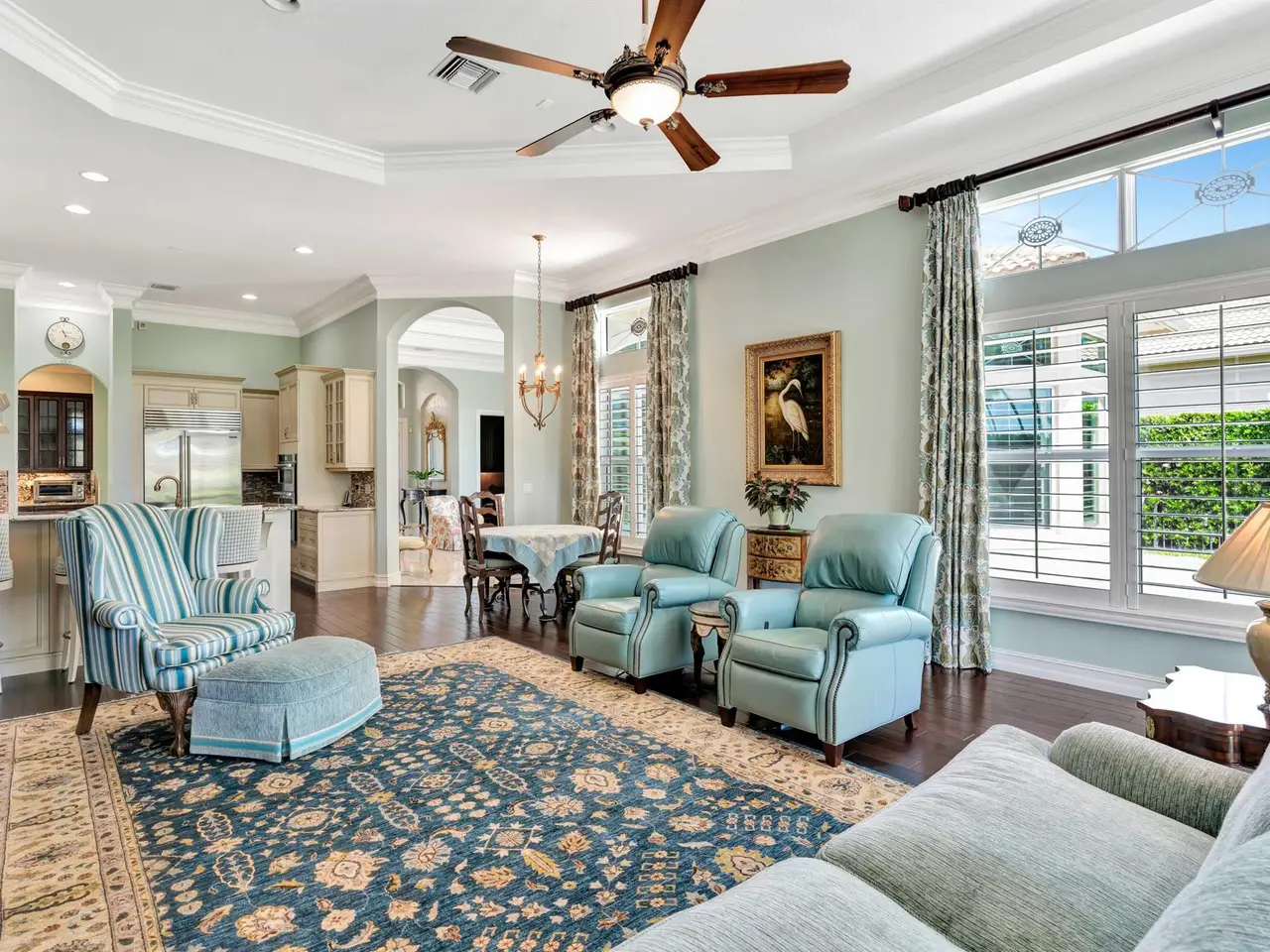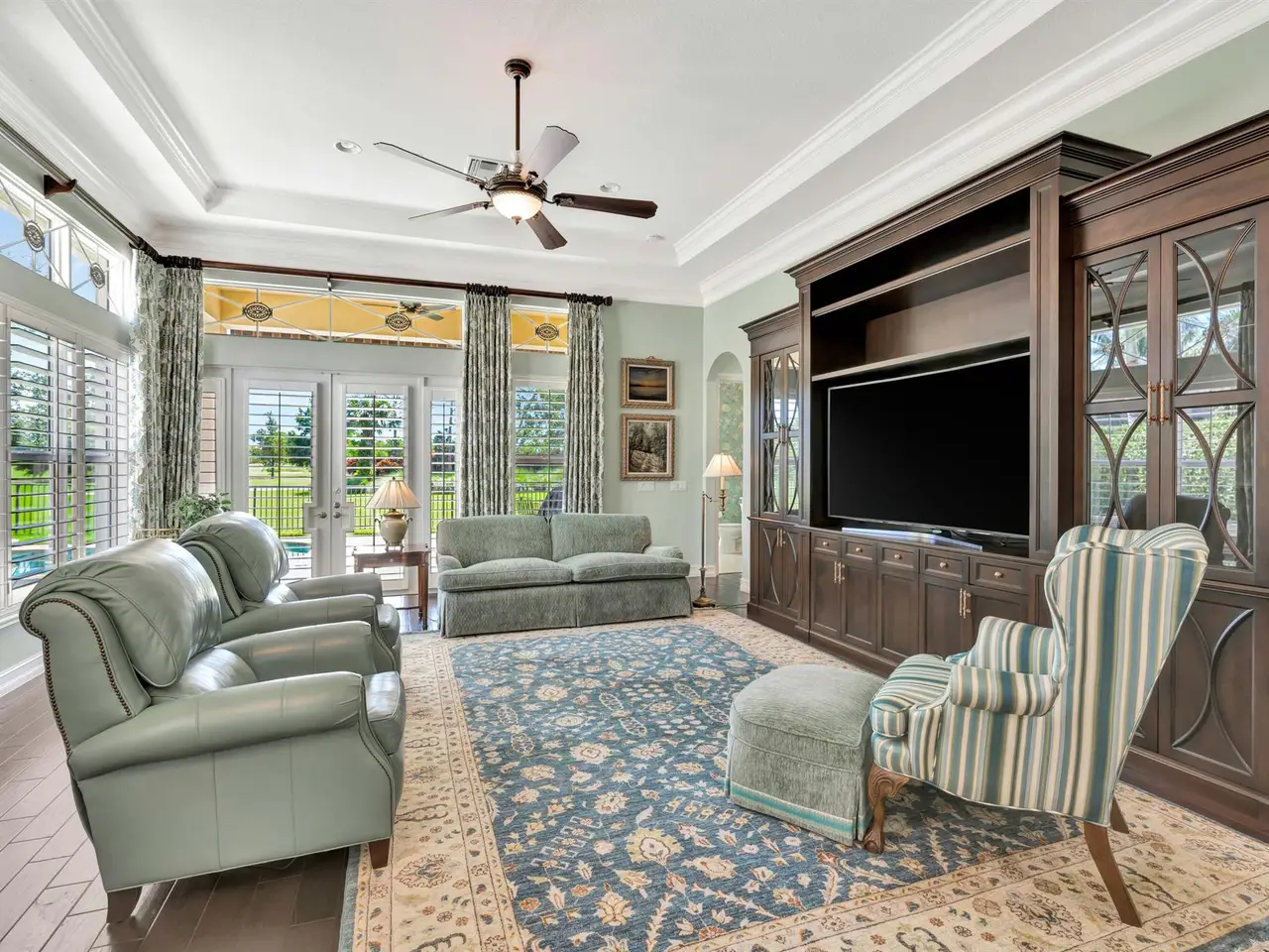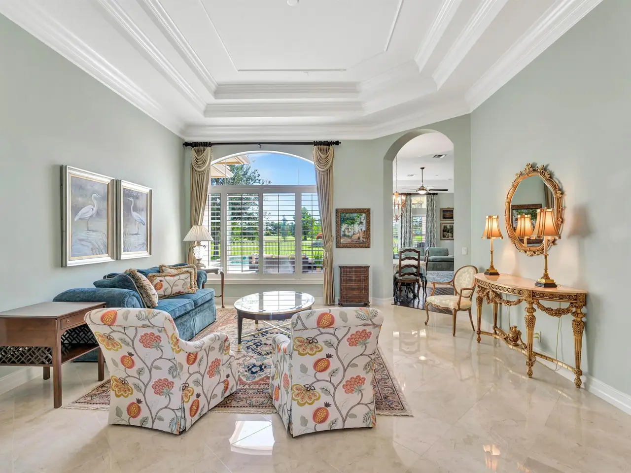 Welcome home to this immaculate 4-bedroom, 4 Bath, one-story expanded Castania model in the prestigious Jupiter Country Club. Enjoy maintenance-free living in a well-planned layout featuring an expanded family room, refined finishes with 5-inch crown molding in every room. The kitchen is ideal for both quiet mornings & entertaining, with a gas cooktop, top-tier appliances, and beautifully glazed cabinetry. Premium upgrades enhance style and function in every space. The expanded 25-ft master suite offers a true retreat with space to relax and recharge. Step outside to your private tropical paradise--complete with a large patio, covered lanai, retractable awning, & beautiful pool overlooking the 6th hole. This home offers the ultimate in comfort and elegance within a resort style community.