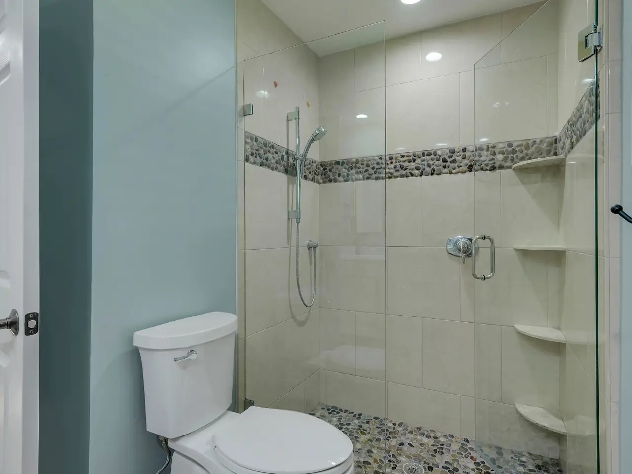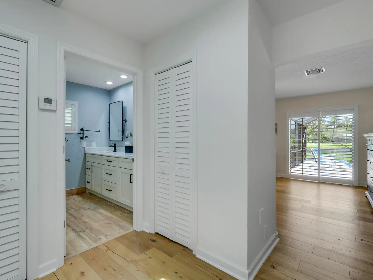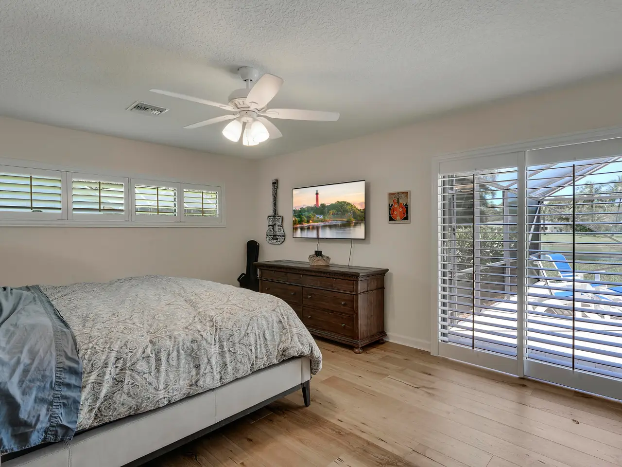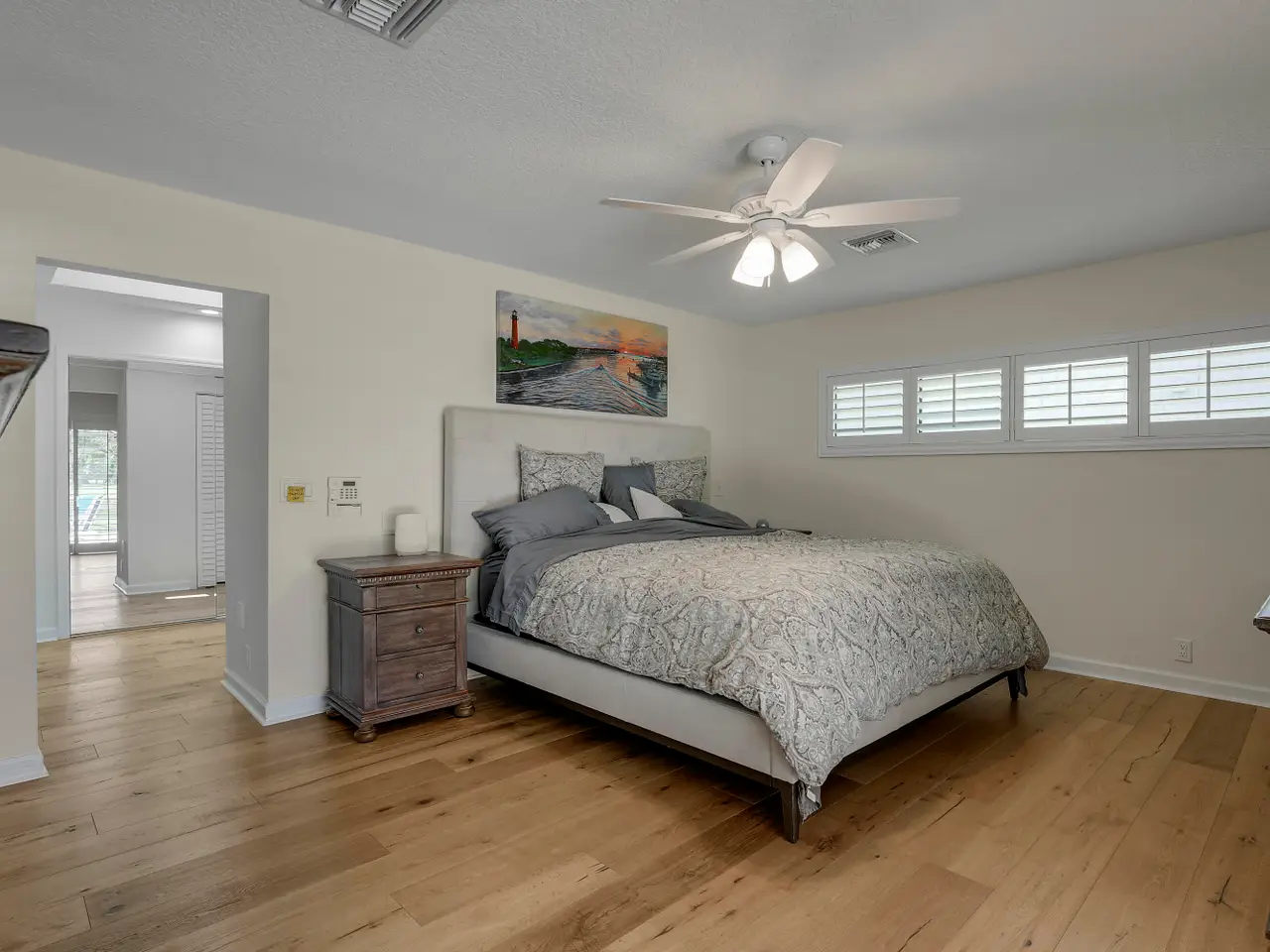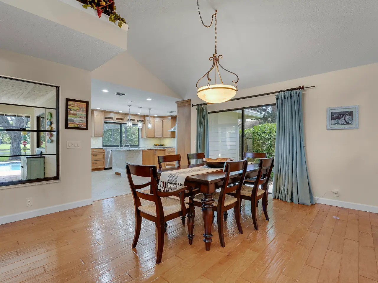 Lakefront Living in the Heart of Jupiter. Welcome to this well appointed 4 bedroom, 2-bath home (4th bedroom is a versatile loft), offering nearly 2,500 square feet of open-concept living on a half-acre lakefront lot. Soaring ceilings and abundant natural light create an airy, inviting atmosphere throughout. The spacious kitchen is a chef's dream, featuring a large island with granite countertops, newer stainless-steel appliances including a double wall oven -- perfect for entertaining. The split-bedroom floor plan ensures privacy, with generously sized rooms and thoughtful design. Step outside to your private oasis: a screened-in pool with glass tile accents, a new saltwater system, and light pavers that surrounds the pool and extends into the covered patio with custom wood paneled ceiling