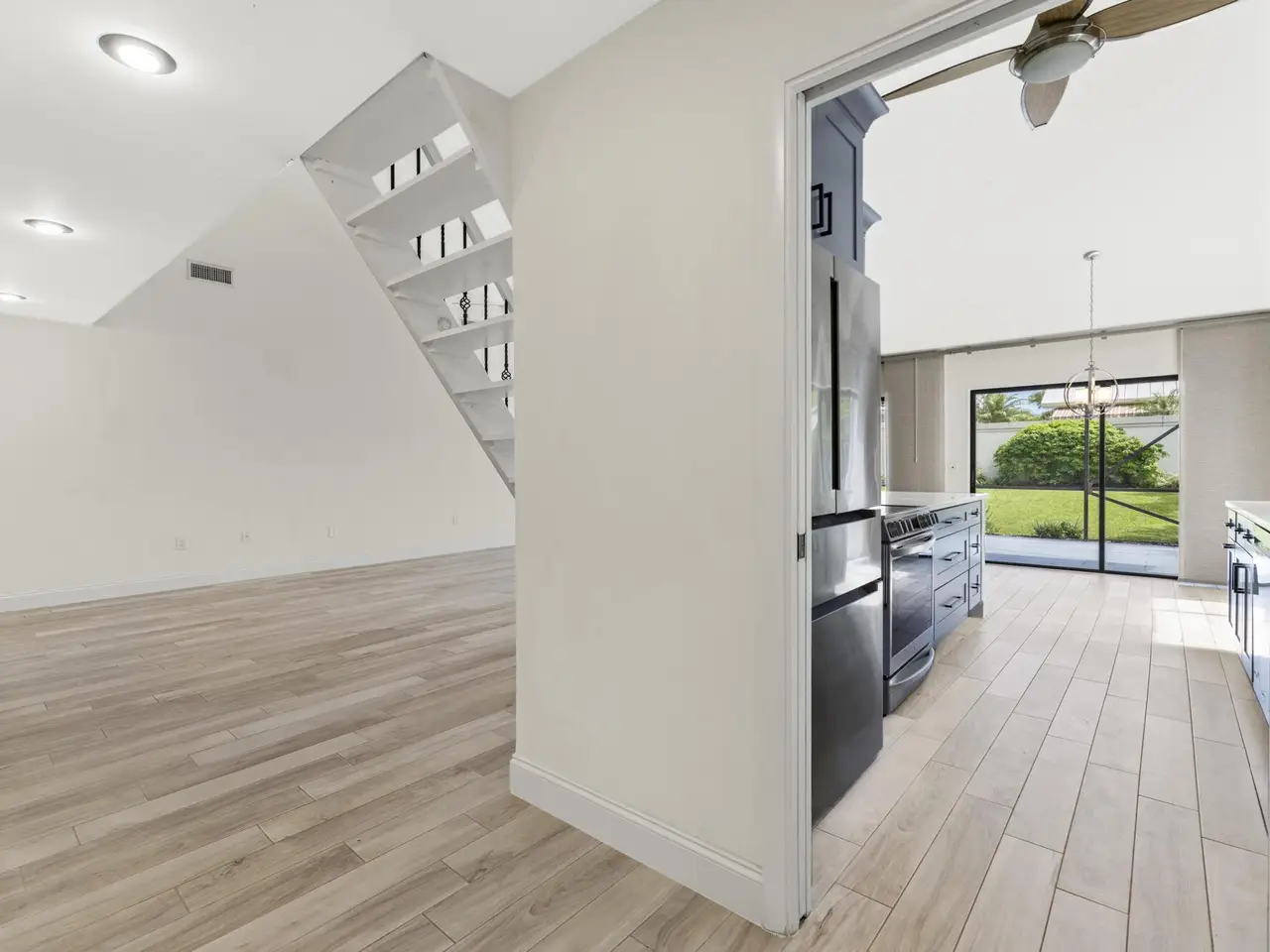 Move in ready! Model coastal contemporary renovated charming 3 bedroom, 2 bath plus loft in desirable community of Ridge at the Bluffs. The Bluffs is a quaint seaside community. Open kitchen concept w/quartz countertops, sleek cabinetry, breakfast bar, stainless steel appliances. Volume vaulted ceilings. Wine Bar. Porcelain tile light wood-look flooring throughout. Luxurious brand new baths! Hunter Douglas window treatments. Desirable Eastern exposure. One of the largest private rear yards in the community perfect for family fun and entertaining. Screened in patio. Close to upscale community amenities including tennis and pickleball courts, basketball, resort-style heated pool and spa, playground and bike trails. Top A rated Jupiter school district. Minutes to fine dining, shopping, golf.