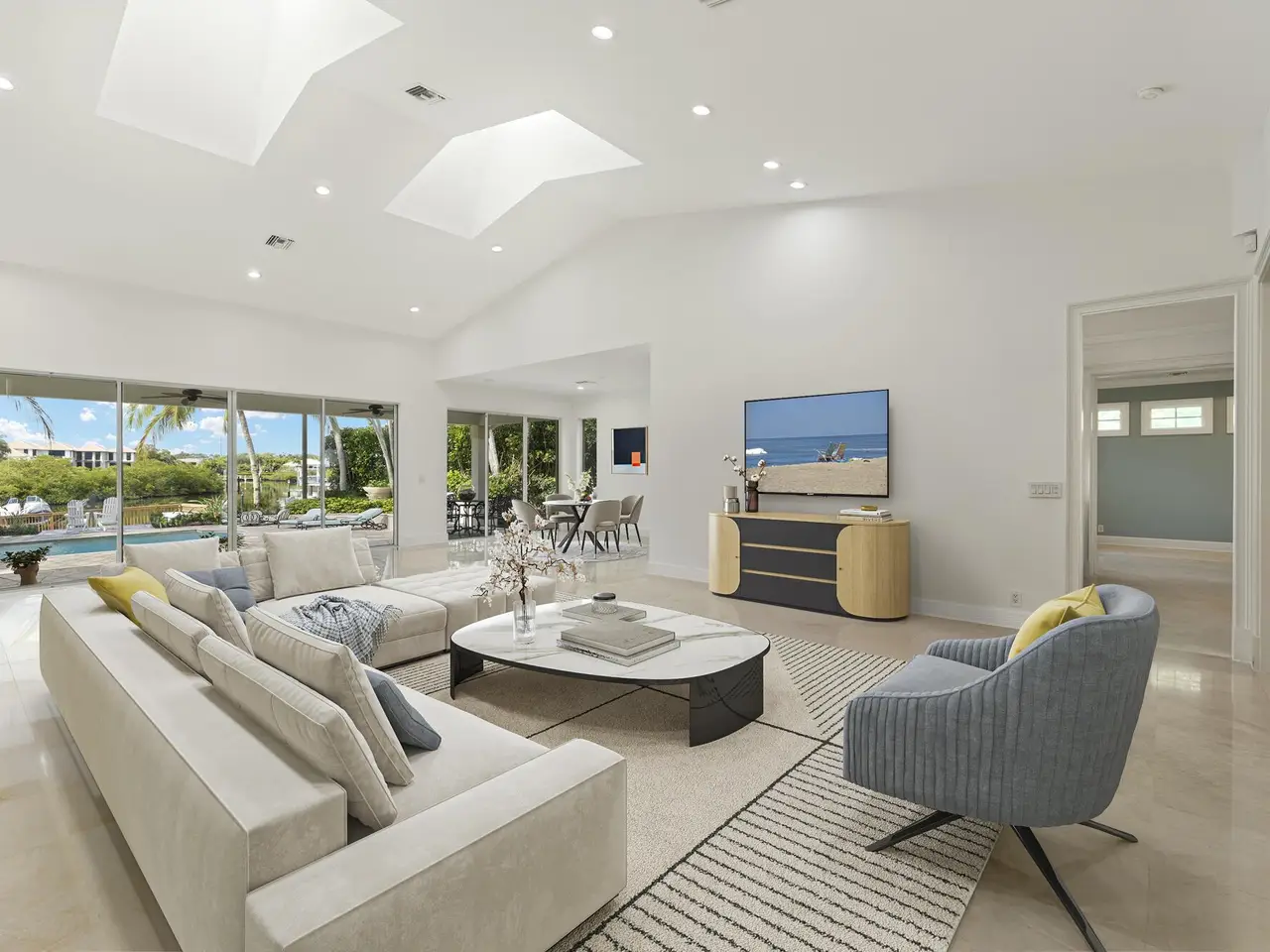 Just reduced below appraised value! WIDE OPEN WATERFRONT w/southern exposure. Minutes to the intracoastal. No fixed bridge with easy ocean access. Views of nature sanctuary. Contemporary 4BD/4BA one story villa. Open palette to express your own design. Primary suite and VIP suite boast tranquil waterfront views. Flooded w/natural light. Large lushly landscaped PRIVATE location w/3 car garage. Wide circular Chicago Brick driveway. Open great room floor plan w/vaulted cathedral ceilings. Downsview kitchen w/marble countertops and stainless steel Miele appliances. Crema marfil floors. Split floorplan. Large heated pool w/ coastal slate patio entertaining areas. Dock w/24,000 lb boatlift. Floating dock for add'l water toys. Summer kitchen. Sports or golf membership available.