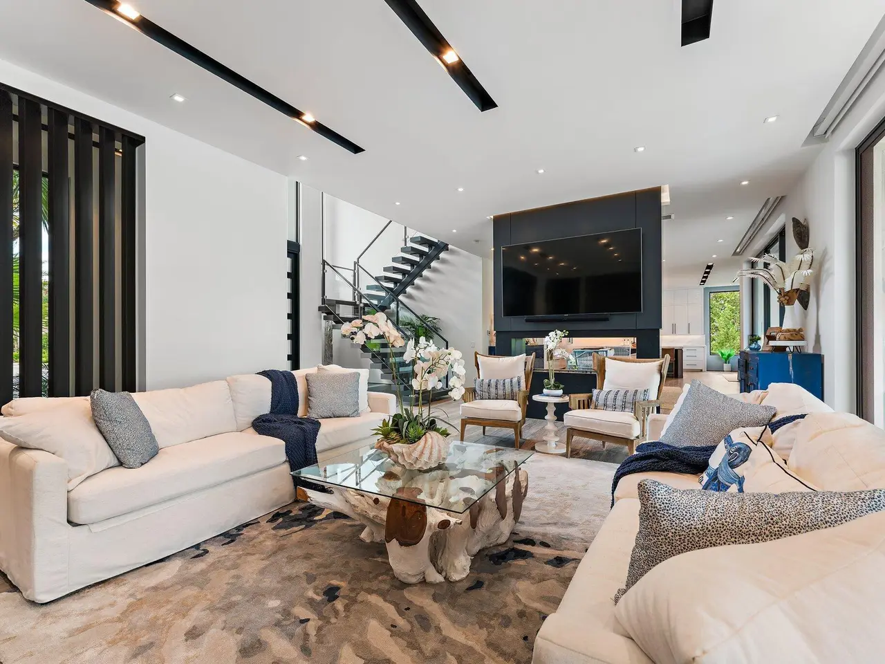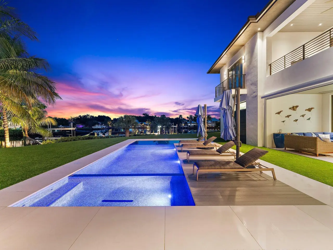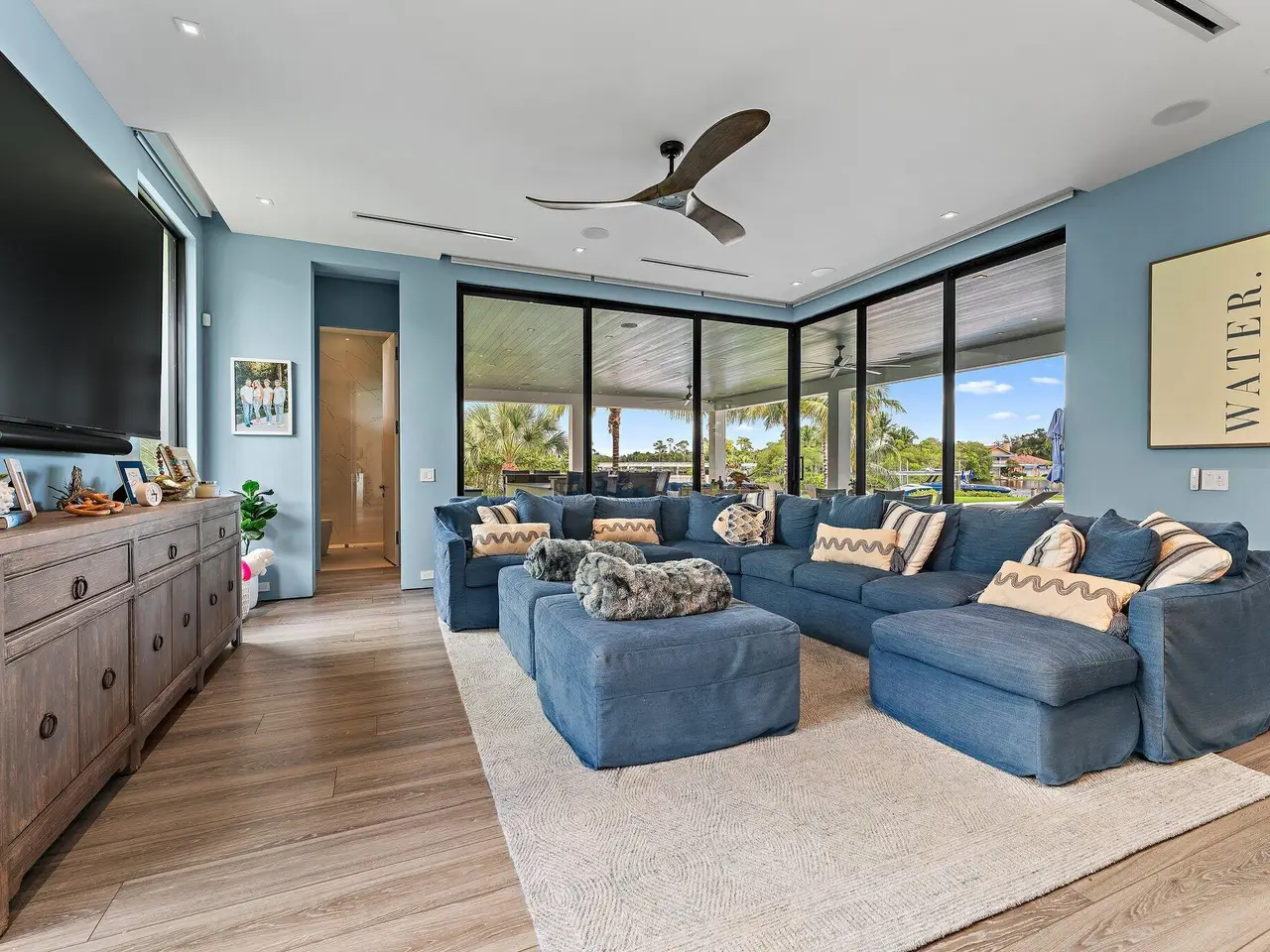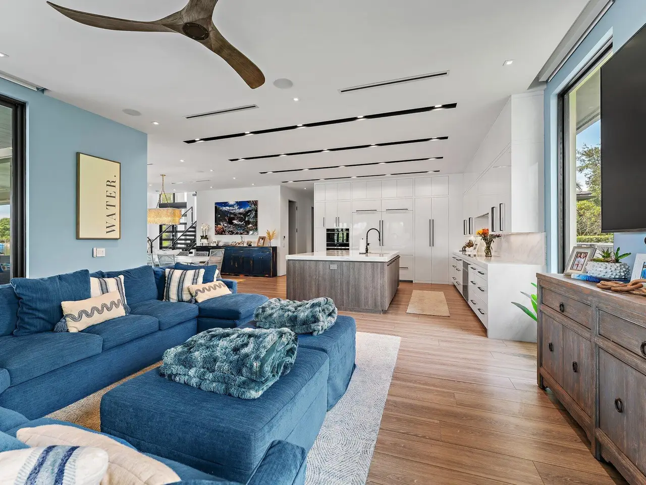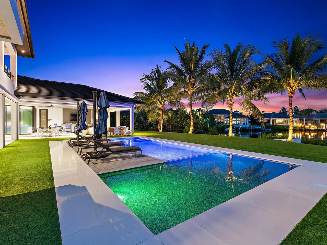 Located on a peninsula lot of 1.33 acres with 500 feet of deep water frontage on three sides with no fixed bridges, this truly is one of the finest waterfront properties in our area. Custom built in 2021 by Ocean Blue Custom Homes, this signature estate in the luxury, gated community - The Islands of Jupiter, meets the demands of the most sophisticated clients. Floor-to-ceiling walls of glass brings the outside in, offering a ''light and bright'' texture to a modern coastal interior palette. Views to the pool with spa, summer kitchen with bar, dock with two lifts, professional landscaping, and expansive backyard with endless artificial turf; all define a dreamlike setting for a family retreat. The current owner made the following additions/upgrades within the past 12 months: 24 KW generator, electric/hurricane screens, new pool resurfacing, under dock lights, all new light fixtures and ceiling fans, paint inside and out, garage storage cabinets, luxury flooring, new kitchen island counter top & back splash, bar top, primary bath counter top, and two sets of washers and dryers - one set for each floor. The primary suite and guesthouse are on the first floor, and three guest suites plus an expansive loft area and second laundry room occupy the second floor. Call today to view this amazing property that could be yours!