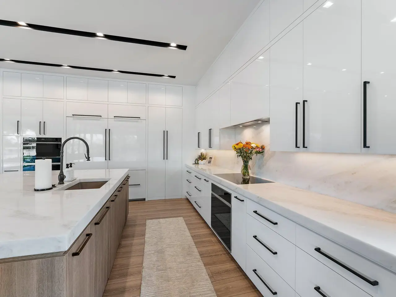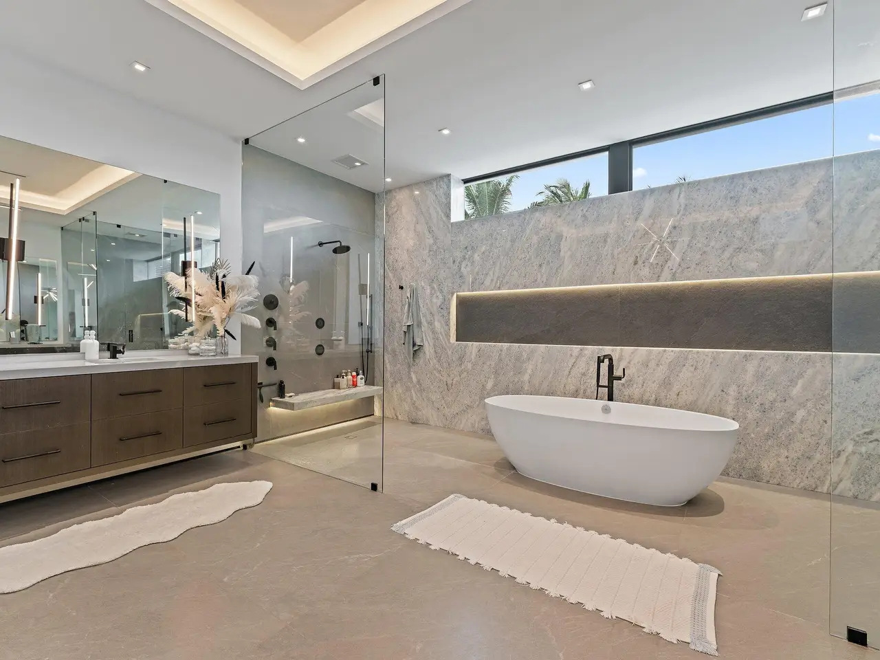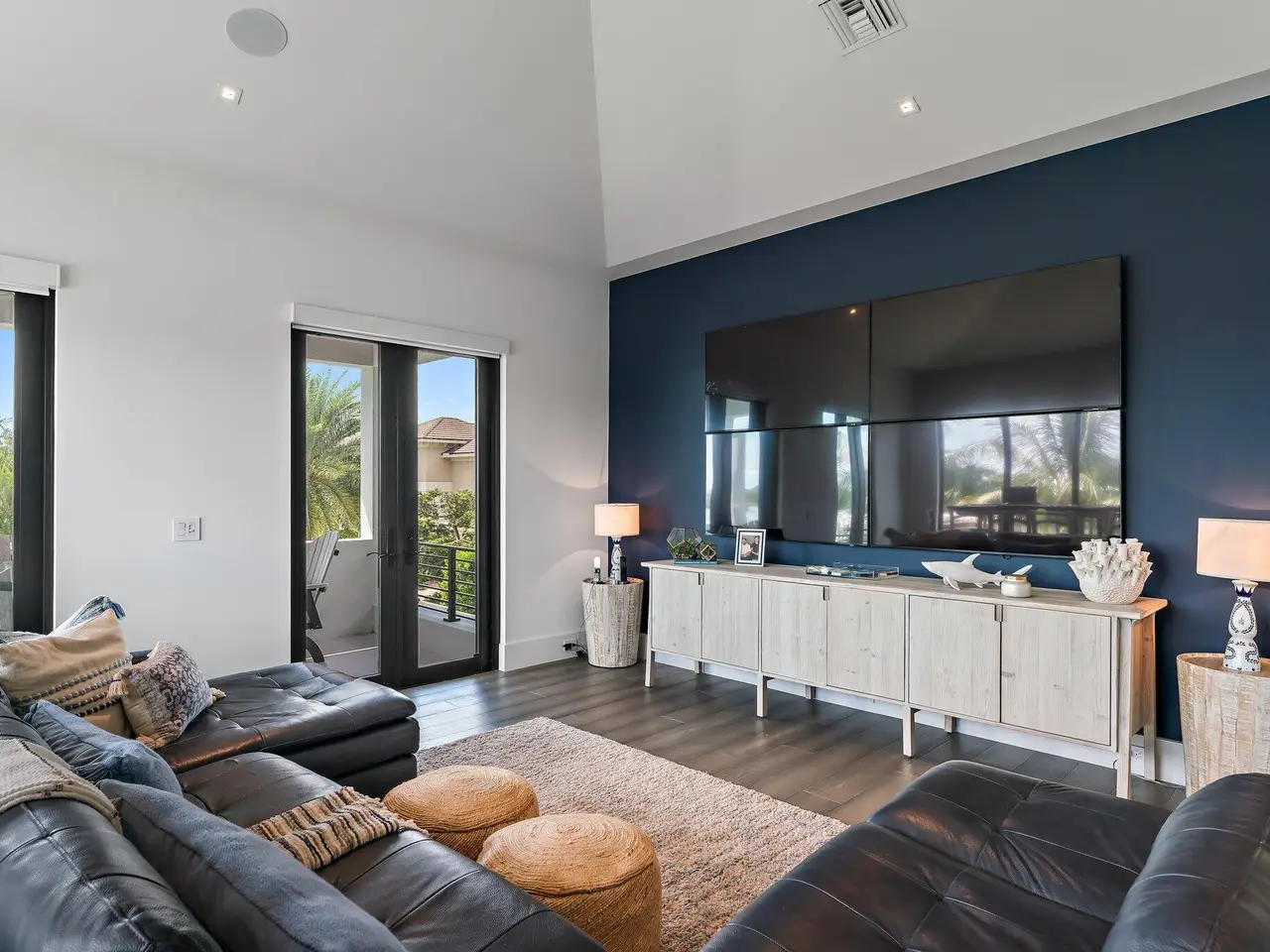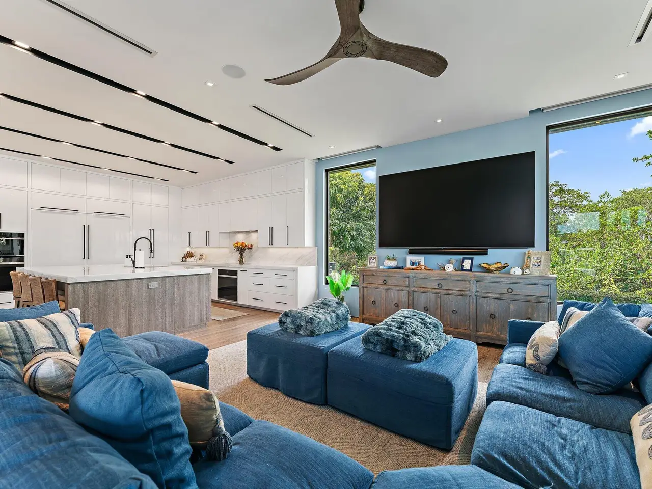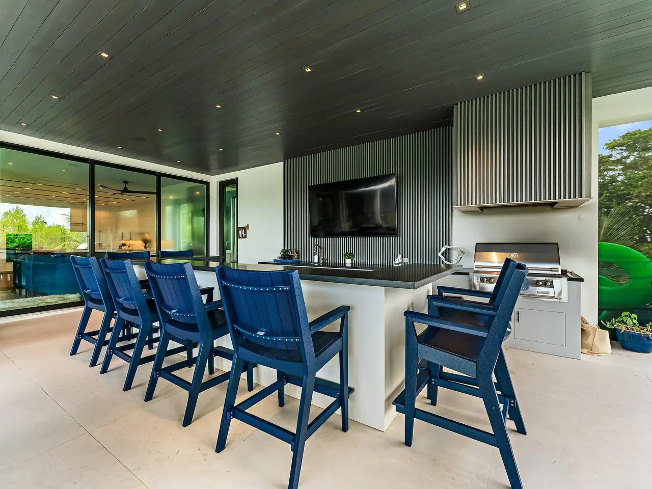 Located on a peninsula lot of 1.33 acres with 500 feet of deep water frontage on three sides with no fixed bridges, this truly is one of the finest waterfront properties in our area. Custom built in 2021 by Ocean Blue Custom Homes, this signature estate in the luxury, gated community - The Islands of Jupiter, meets the demands of the most sophisticated clients. Floor-to-ceiling walls of glass brings the outside in, offering a ''light and bright'' texture to a modern coastal interior palette. Views to the pool with spa, summer kitchen with bar, dock with two lifts, professional landscaping, and expansive backyard with endless artificial turf; all define a dreamlike setting for a family retreat. The current owner made the following additions/upgrades within the past 12 months: 24 KW generator, electric/hurricane screens, new pool resurfacing, under dock lights, all new light fixtures and ceiling fans, paint inside and out, garage storage cabinets, luxury flooring, new kitchen island counter top & back splash, bar top, primary bath counter top, and two sets of washers and dryers - one set for each floor. The primary suite and guesthouse are on the first floor, and three guest suites plus an expansive loft area and second laundry room occupy the second floor. Call today to view this amazing property that could be yours!