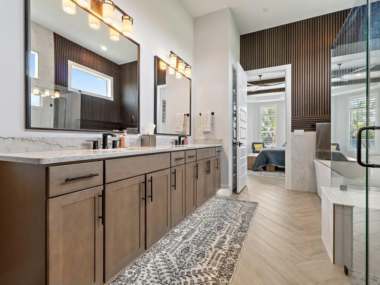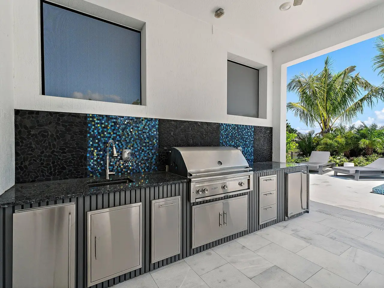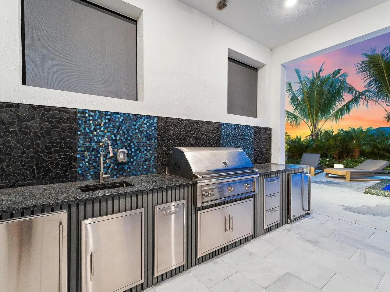 Enjoy the best of Bridgewater in this highly desireable Madeira floor plan. Located on one of the best lots in the community, the west side yard of the property offers the perfect setting for children to play or for a future one or two story guesthouse that could be as large as 2,021 SF AC. Upgrades throughout the home include wood detailing, summer kitchen with custom pool, spa and waterfall, electric screens, and top of the line stainless steel appliances, and much more.