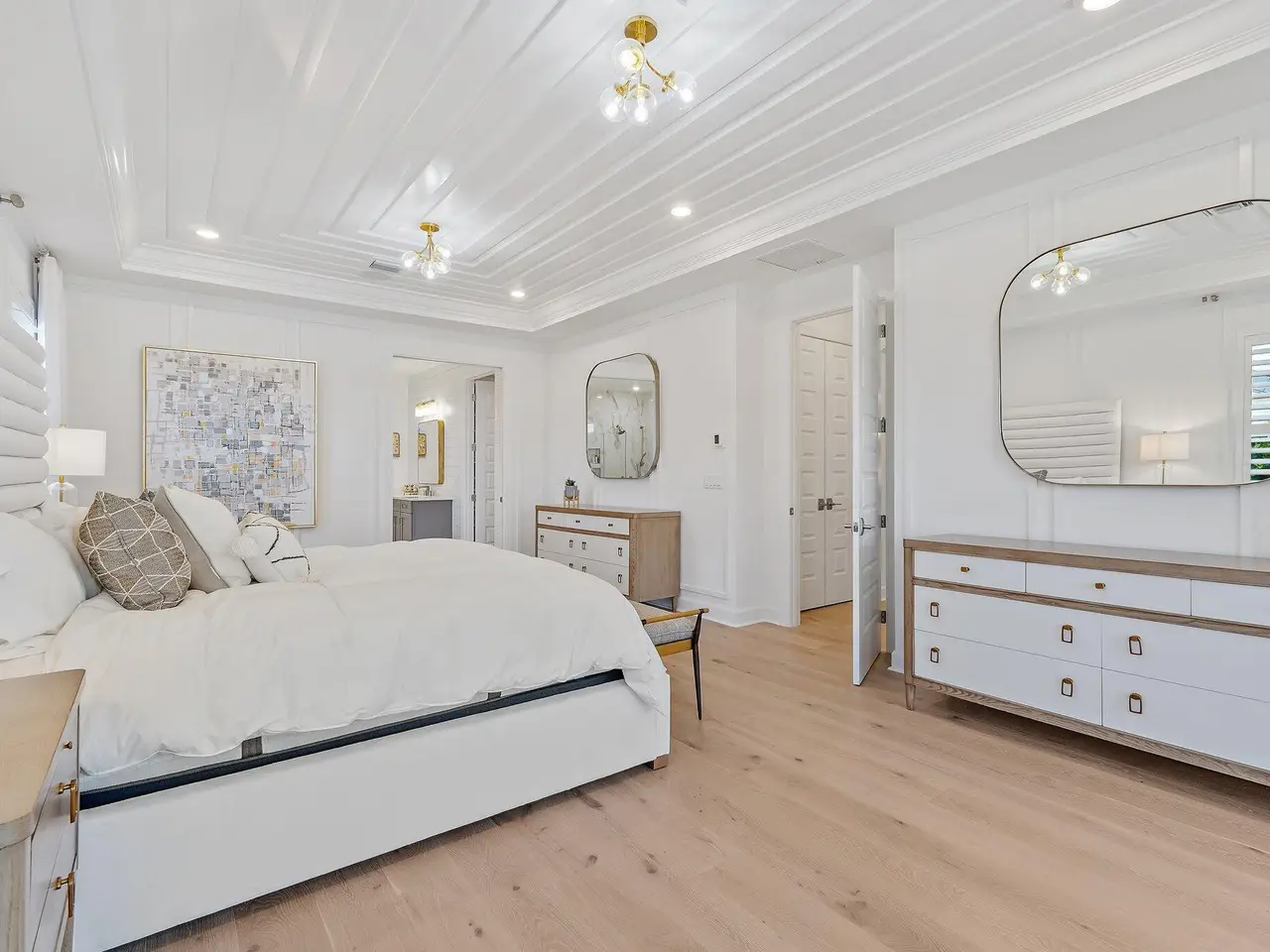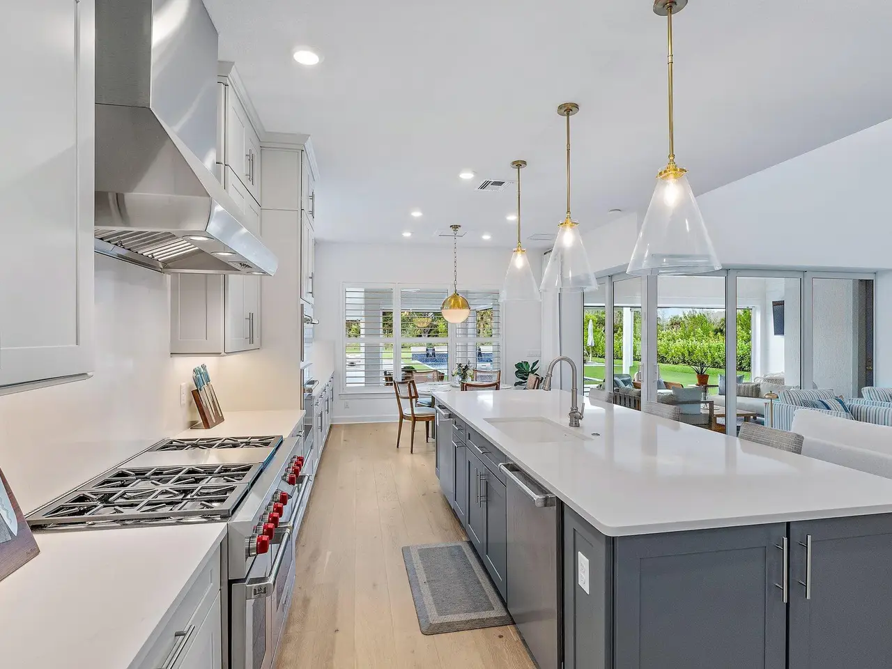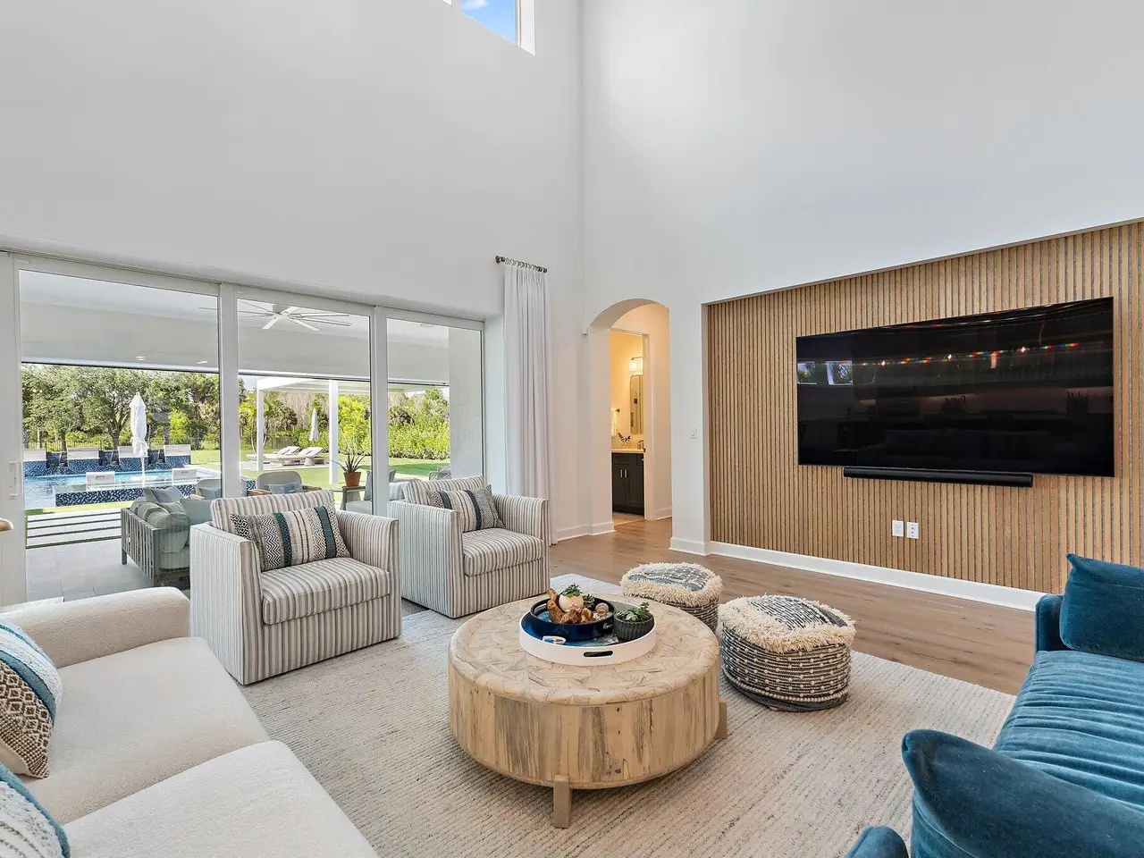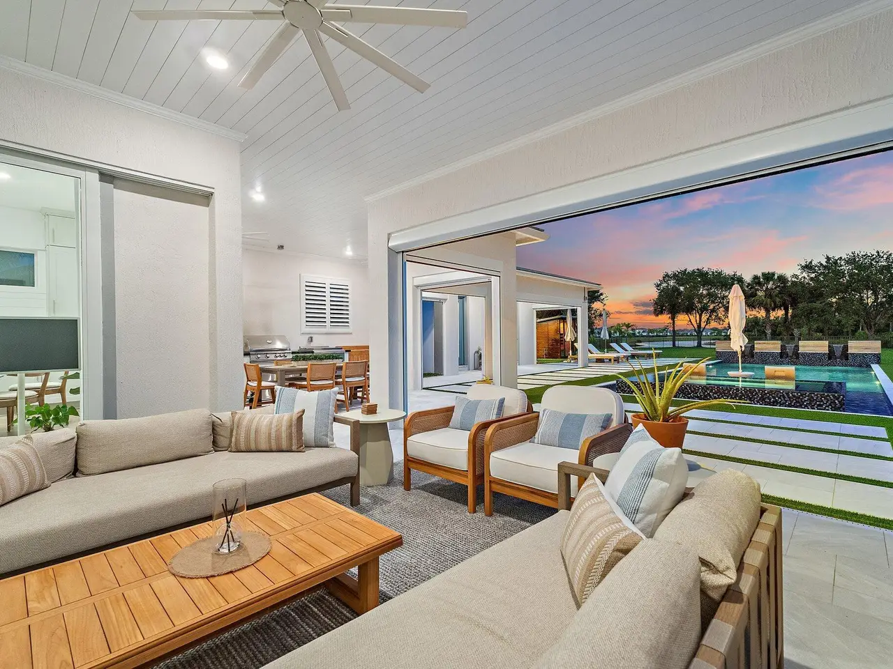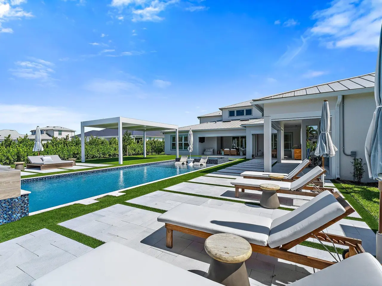 Enjoy the best of Bridgewater in this expanded ''Livingston'' model home with long water views. This seven bedroom home, the largest model offered in Bridgewater, with an office and home theater, creates multiple options of useful space with the finest in luxury appointments. The first floor has the primary suite with bath, one guest bedroom with bath, and an office in the main house, powder room, 4 car garage, and a one bedroom Casita with full bath just off the kitchen. The second floor has four additional bedrooms, a loft, media room, and three full baths. The backyard has special features like artificial turf, electric screens, a summer kitchen, pool with spa, sauna, and best of all, a custom pergola with a louvered ceiling that has slats that electronically open and close.