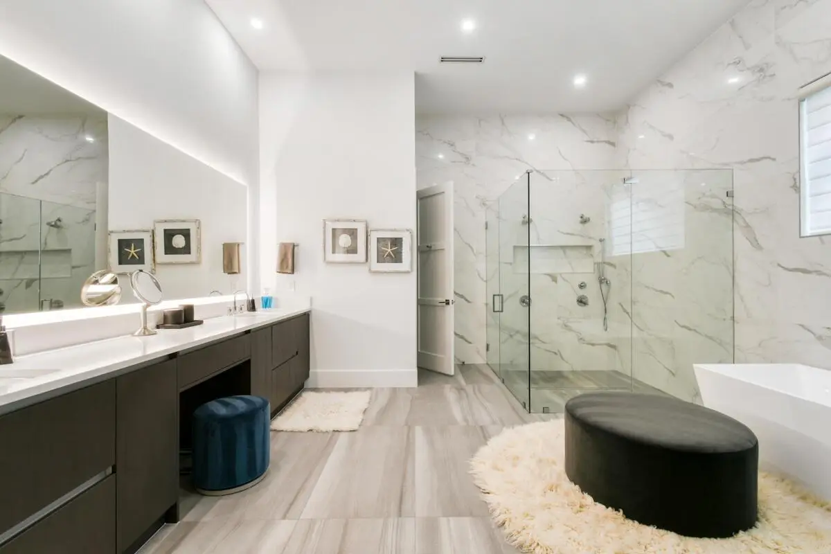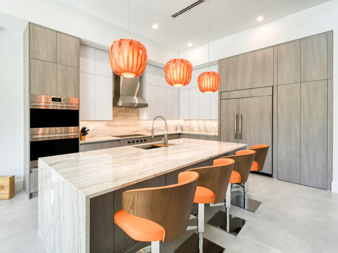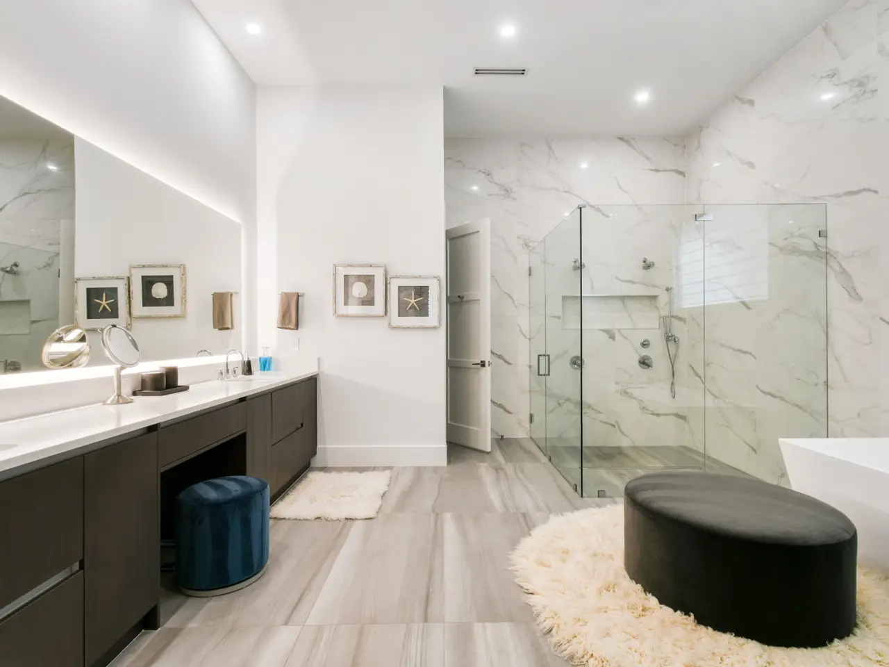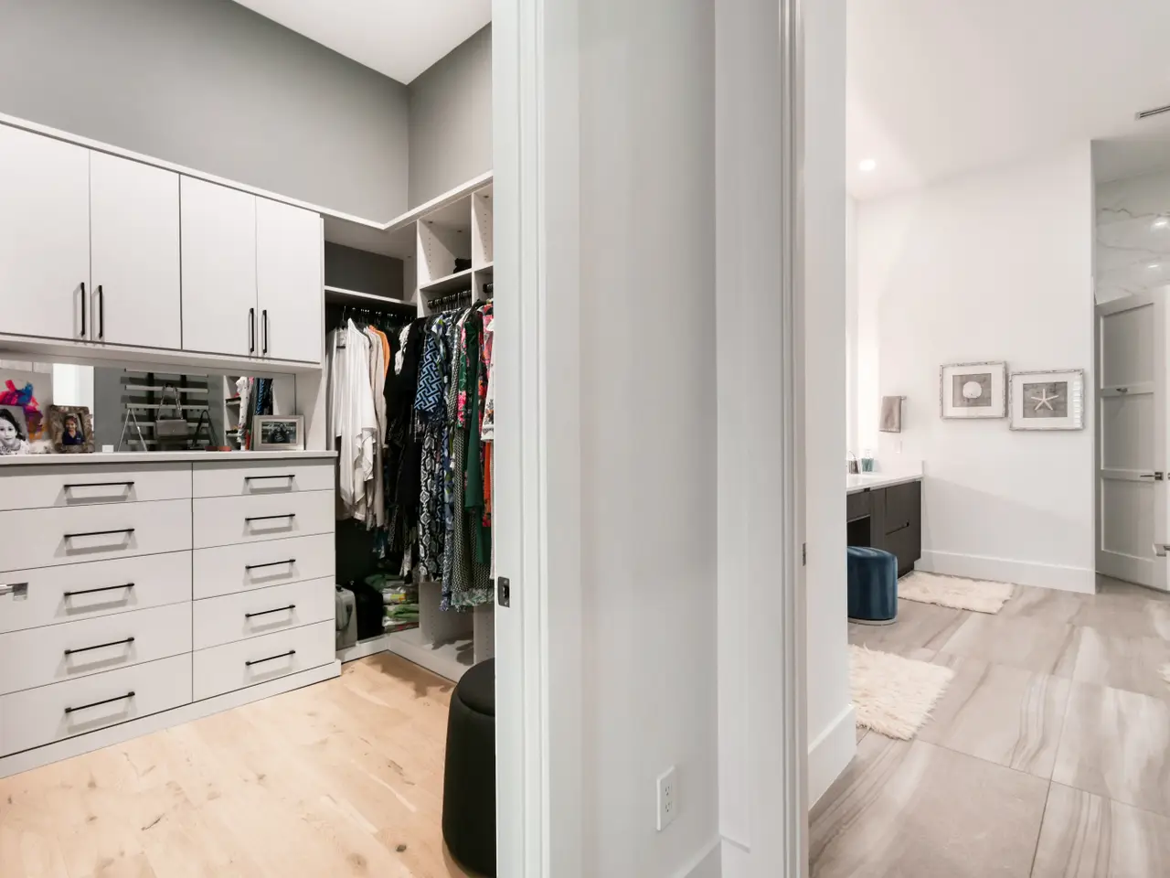 Step into elegance the moment you arrive at 18432 Symphony Court, where luxury and design meet in perfect harmony. This stunning Jupiter estate is the epitome of refined living, meticulously crafted with upscale finishes and timeless sophistication.From the grand entryway, you're greeted by imported designer chandeliers from Italy, suspended gracefully from soaring 25-foot ceilings. These radiant centerpieces illuminate a custom, backlit Italian wall unit with floating shelves, set against a stunning silk wallpaper backdrop, offering a dramatic yet elegant welcome.The open-concept layout is anchored by ravishing 48'' x 48'' porcelain tile flooring that flows throughout the main level.