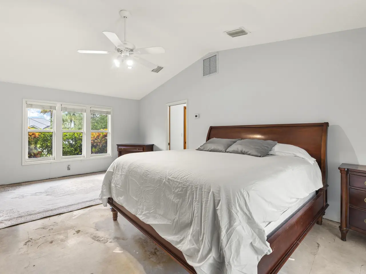 Rare opportunity to own a CBS home on over half an acre (.56) in the highly sought-after, Whispering Trails of Jupiter! NO WOOD FRAME, 2021 ROOF, IMPACT WINDOWS THROUGHOUT, IMPACT SLIDING DOORS, IMPACT GARAGE DOOR, & HARDIE BOARD SIDING FOR THE TIMELESS CURB APPEAL- CHECK! The upgraded custom chef's kitchen boasts Miele Steam & Convectional Ovens ($30,000+ value), Wolf Oven, great kitchen island with granite and butcher block countertops offering plenty of storage, herringbone backsplash, farm sink, & custom soft-close cabinetry. The expansive first-floor primary suite is unfinished with concrete floors & the original primary bath includes boxed new cabinetry & drawers. Upstairs, three spacious bedrooms share a FULLY UPGRADED guest full bath-2019. Additional UPGRADES include: 2024