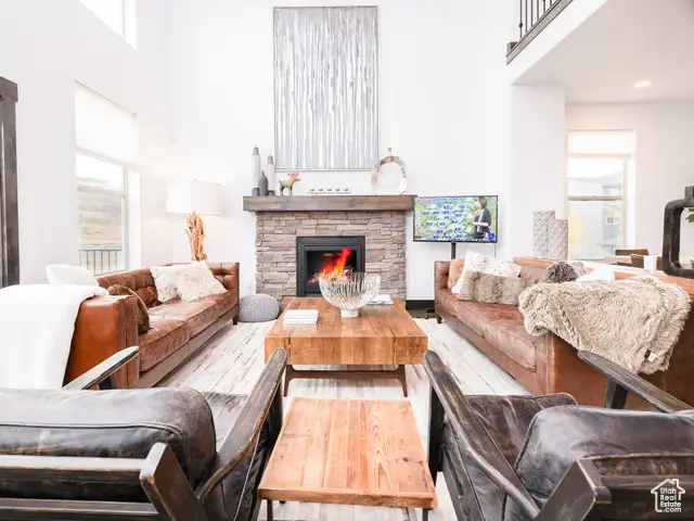 Step into mountain elegance in this expansive 5-bedroom furnished townhome at The Retreat at Jordanelle. The spacious square footage offers vaulted ceilings, a beautiful fireplace, and large windows that frame sweeping views. The chef's kitchen encompasses a social environment and high-end appliances. Three en suite bedrooms and two additional guest rooms make this ideal for private retreats or hosting family and friends. Enjoy outdoor living with a private hot tub, a fire pit and covered patio and serene views over open space. Community amenities include a clubhouse with fitness center, year-round hot tub & heated pool and trails. Just 5-10 minutes to Deer Valley's Jordanelle Gondola & historic Main Street Park City. This a great opportunity for a primary residence or a nightly rental opportunity. schedule your private tour today.
