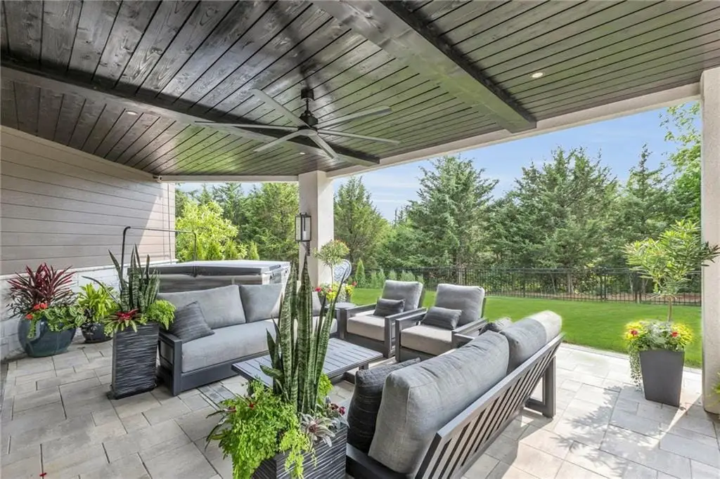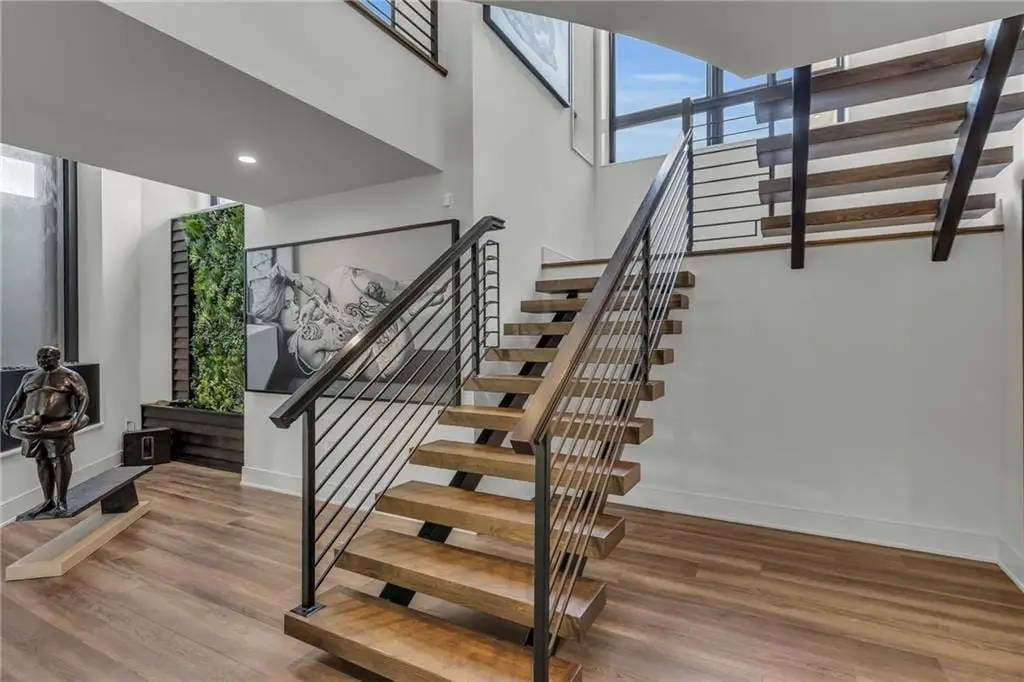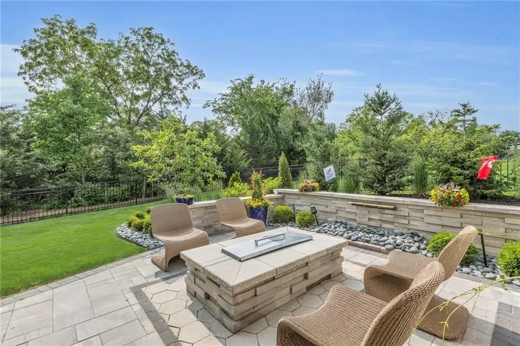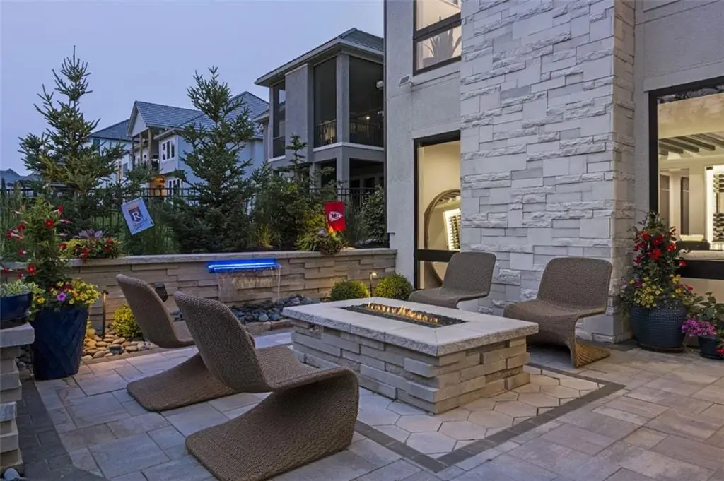 CONTEMPORARY AND LUXURY describes this Artisan designed home built by Casa Bella! A true masterpiece bringing in amazing architecture while touching all your senses! The 2 story water fall greets you at the entry along w/ dramatic ceiling, lighted walkway, leading to the great room w/ marble fireplace surround, back lit quartzite, floor to ceiling windows. The treed back drop is inviting & covered deck has new automatic screens. The Gourmet Kitchen has Carrera Marble island w/ waterfall edge, Frigidaire Refrigerator / Freezer, Cafe Induction Stove Top, Bosch Dishwasher, Cafe oven, Advantium microwace along w/ 2nd oven in the back pantry. Grill deck is a bonus feature right off the pantry. Perfectly positioned study w/ glass panels to bring in the light but nice and quiet for privacy. The Spa-like primary bath has marble floors, double headed shower w/ glass surround, soaking tub, large double vanity w/ plenty of cabinets. Primary bedroom includes built in headboard, king bed & side tables AND a beautiful view to the covered deck & backyard w/ fireplace for those chilly evenings. As you walk down the floating steel staircase w/ solid wood stairs, prepare to be WOW'd as the lower level is an Entertainer's Dream. Back wet bar w/ beverage frig & refrigerator drawer & ice/freezer drawer. The quartzite counter lit island is in perfect position for wine tastings next to the wine feature wall. The 3rd fireplace is the perfect conversation area while the media space is ample and comfortable. You can walk right out to the covered patio & enjoy the fire pit, lush fenced backyard and privacy. 3 bedrooms w/ 2 1/2 baths on the LL. The home gym is amazing space with storage tucked away. Pet Lovers will enjoy the Dog House. 8' deep chocolate modern interior solid wood doors w/ metal inlays, paved stone driveway, Fire & Water feature front and back, epoxy'd garage floor, remote blinds on front entry & sliding back door!