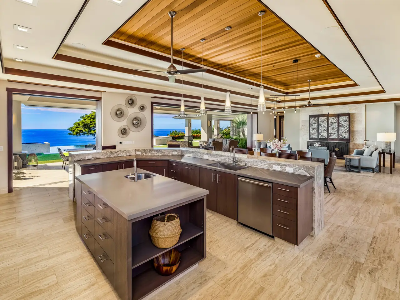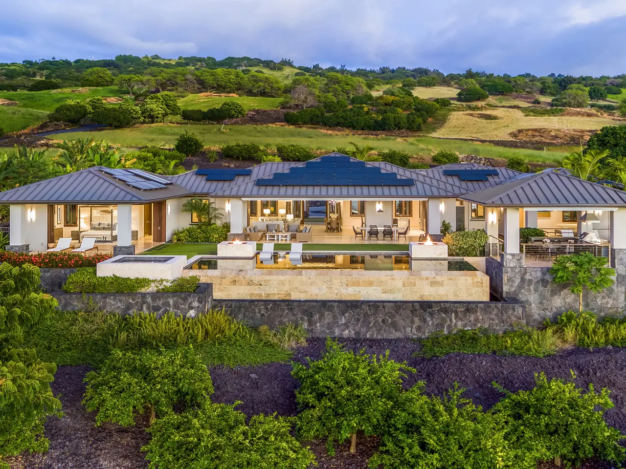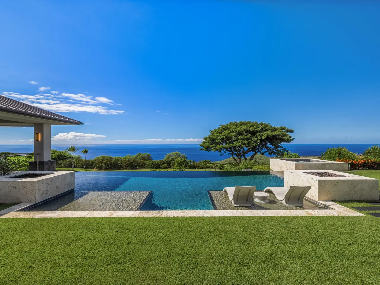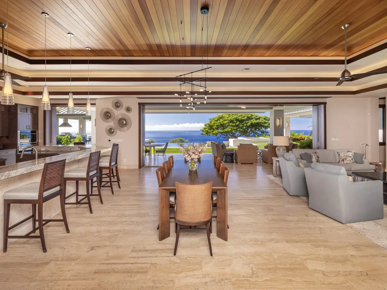 Hokuli‘a 116 stands as a truly remarkable residence along the golf course fairway within the exclusive community of Hokuli‘a. This property spans 1.15 acres and offers breathtaking views of the ocean and coastline. Designed to celebrate the natural beauty of Hawai‘i, this home combines refined architecture with an enviable location, providing the ideal setting for enjoying a peaceful and elegant island lifestyle. Refined Craftsmanship & Unique Indoor-Outdoor Living is reflected in every room and connects to lush landscaping, enhancing the indoor-outdoor flow and taking advantage of its natural environment. Pocket sliding doors open the interiors to an expansive covered lanai with stunning views. The home’s pod-style design features separate structures, or “pods,” for different functions such as bedrooms, living spaces, and the kitchen, all connected by breezeways and outdoor paths. Upon arrival, you are greeted by a roundabout that leads to a serene private courtyard, seamlessly blends into expansive social spaces that showcase stunning views. High ceilings with rich wood paneling create a warm and inviting atmosphere, while award winning built-in cabinet screens add both artistry and functionality. Fully furnished with luxurious finishes, this residence embraces open-air living, blending traditional tropical materials with modern aesthetics to create an elevated island-inspired experience, enhanced by gentle breezes and awe inspiring views from every corner. With more than 7,000 square feet under roof, the property includes a dedicated office, a spacious great room, 4 bedrooms, and 4.5 bathrooms. The private pool and spa tub provide a tranquil retreat, where you can start your mornings with a swim or end your evenings soaking in the vibrant hues of the Hawaiian sunset. A Hokulia Membership is included in the purchase price.