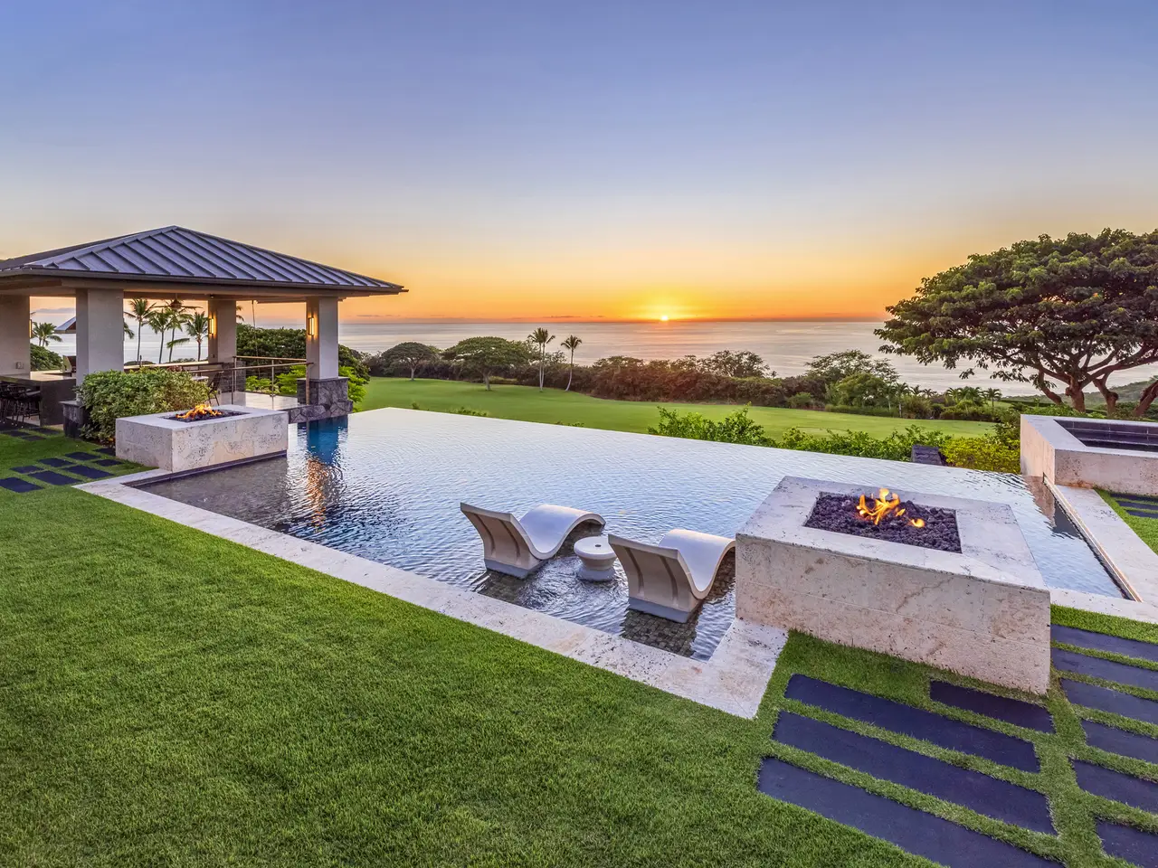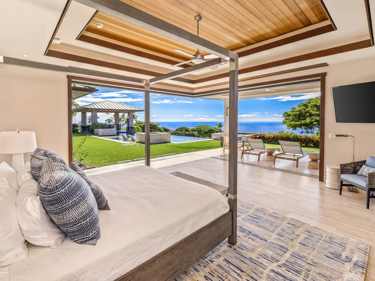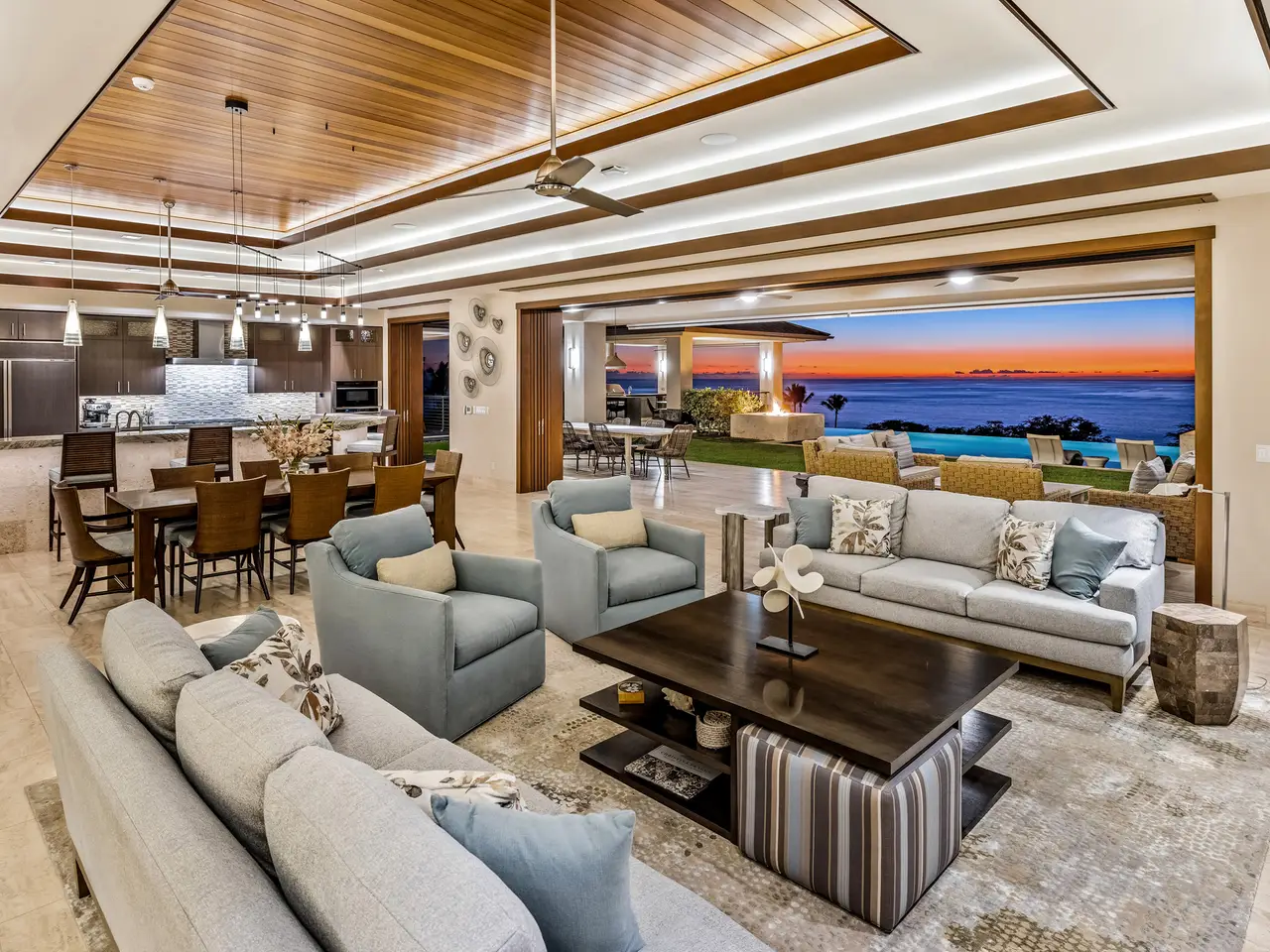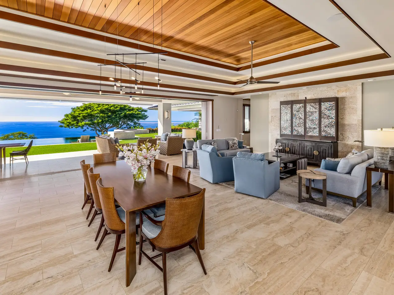Hokuli‘a 116 stands as a truly remarkable residence along the golf course fairway within the exclusive community of Hokuli‘a. This property spans 1.15 acres and offers breathtaking views of the ocean and coastline. Designed to celebrate the natural beauty of Hawai‘i, this home combines refined architecture with an enviable location, providing the ideal setting for enjoying a peaceful and elegant island lifestyle. Refined Craftsmanship & Unique Indoor-Outdoor Living is reflected in every room and connects to lush landscaping, enhancing the indoor-outdoor flow and taking advantage of its natural environment. Pocket sliding doors open the interiors to an expansive covered lanai with stunning views. The home’s pod-style design features separate structures, or “pods,” for different functions such as bedrooms, living spaces, and the kitchen, all connected by breezeways and outdoor paths. Upon arrival, you are greeted by a roundabout that leads to a serene private courtyard, seamlessly blends into expansive social spaces that showcase stunning views. High ceilings with rich wood paneling create a warm and inviting atmosphere, while award winning built-in cabinet screens add both artistry and functionality. Fully furnished with luxurious finishes, this residence embraces open-air living, blending traditional tropical materials with modern aesthetics to create an elevated island-inspired experience, enhanced by gentle breezes and awe inspiring views from every corner. With more than 7,000 square feet under roof, the property includes a dedicated office, a spacious great room, 4 bedrooms, and 4.5 bathrooms. The private pool and spa tub provide a tranquil retreat, where you can start your mornings with a swim or end your evenings soaking in the vibrant hues of the Hawaiian sunset. A Hokulia Membership is included in the purchase price.
